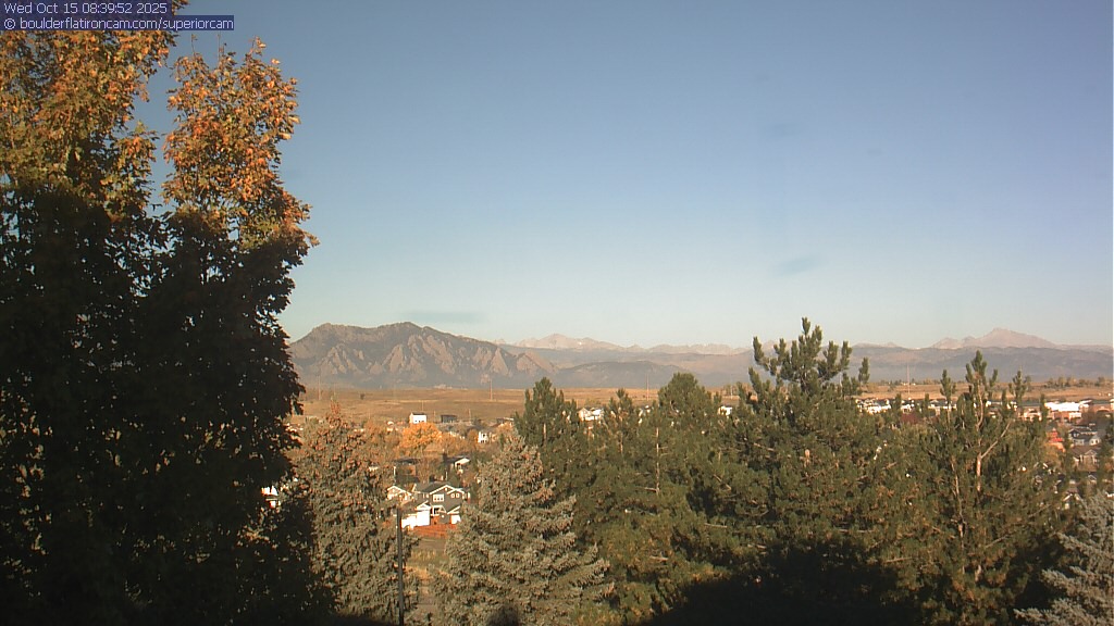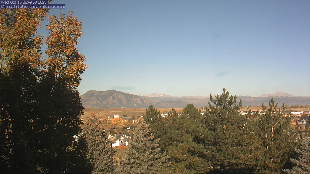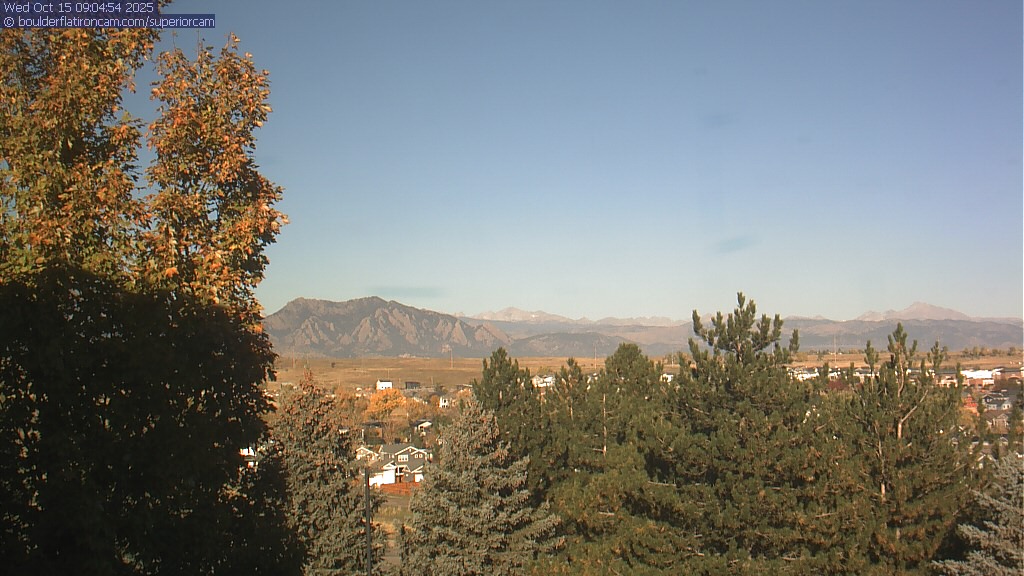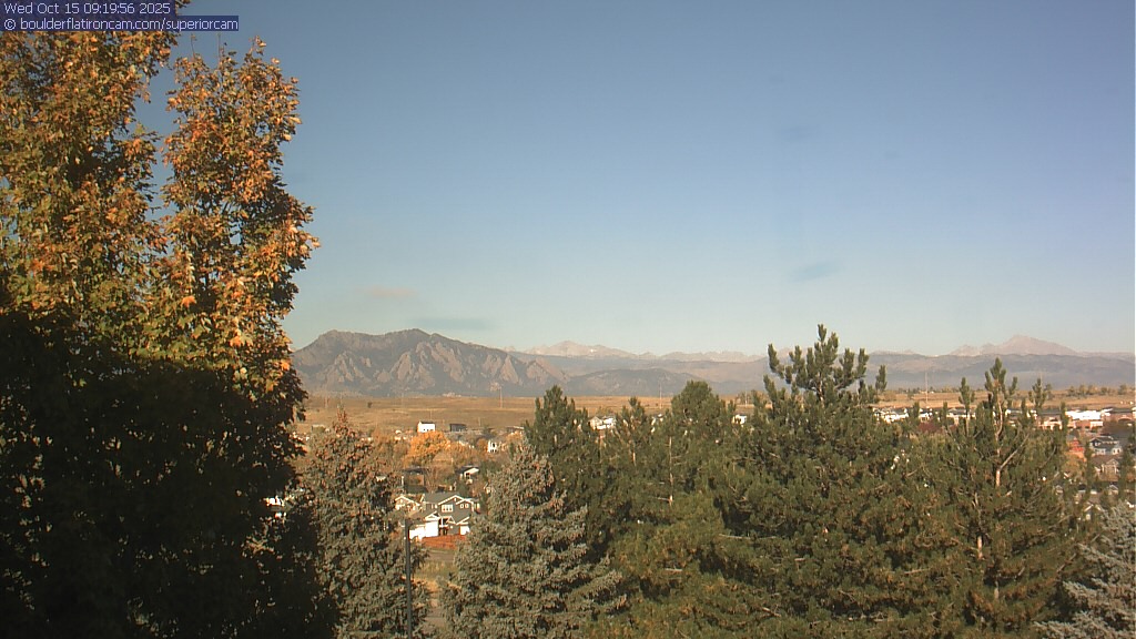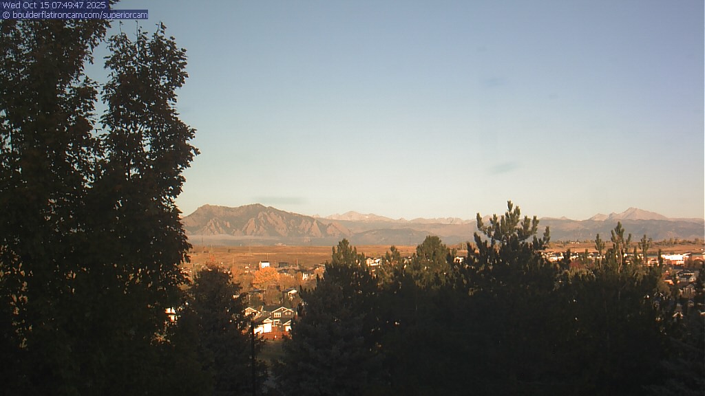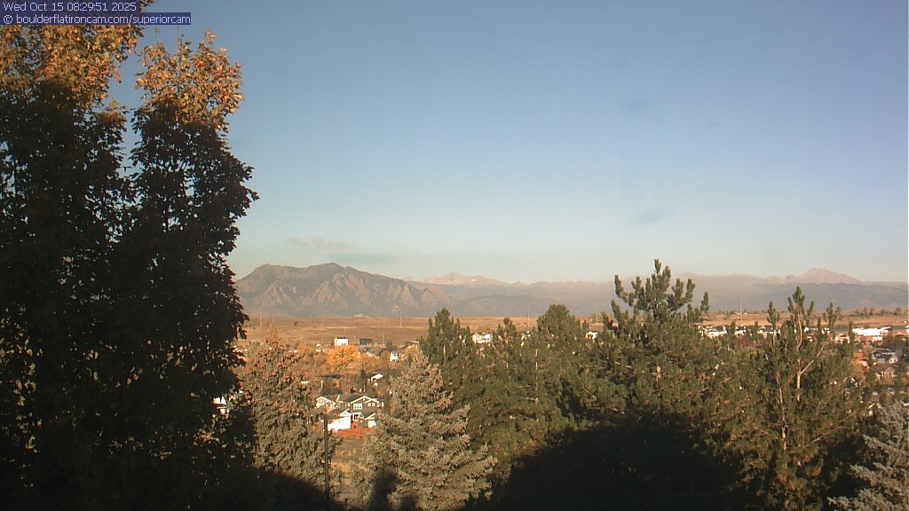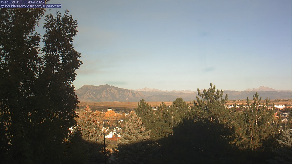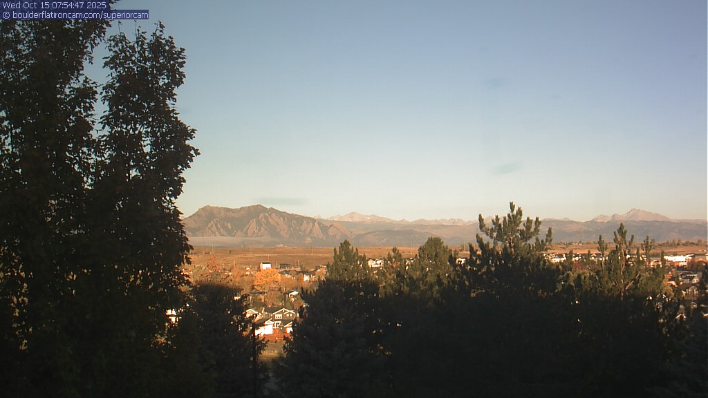 The Superior cam has a great view to the northwest over Boulder, the Flatirons, Indian Peaks and Long’s Peak.   The Coal Creek trail is visible in the foreground with old town Superior.  Thanks to Aweida Venture Partners management for the great view.
