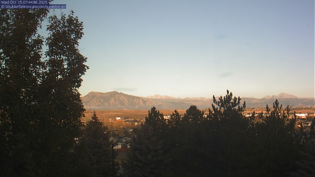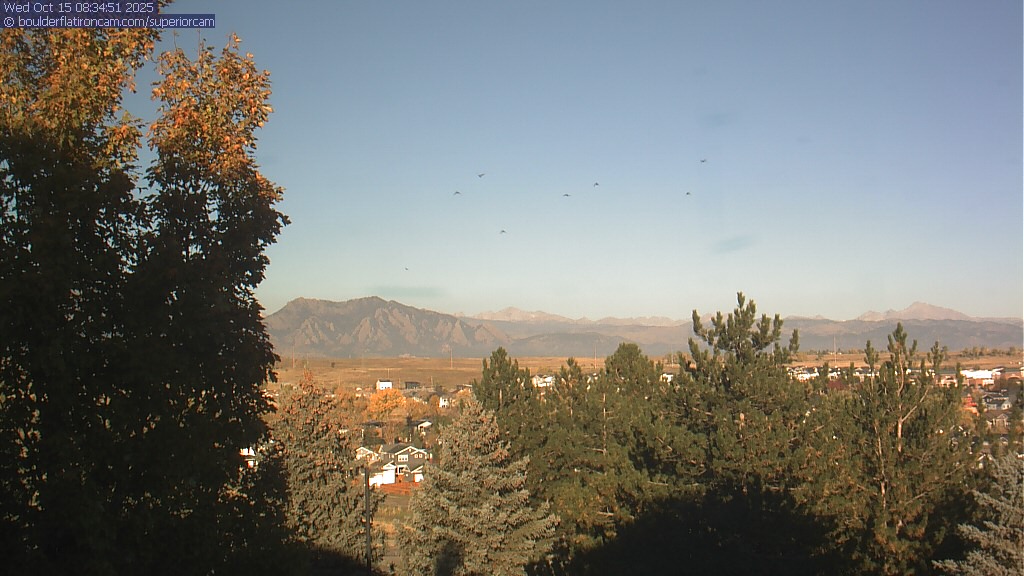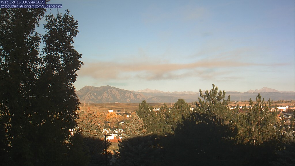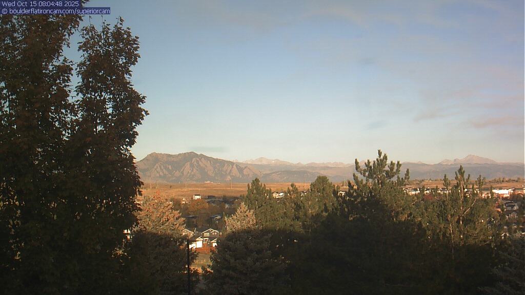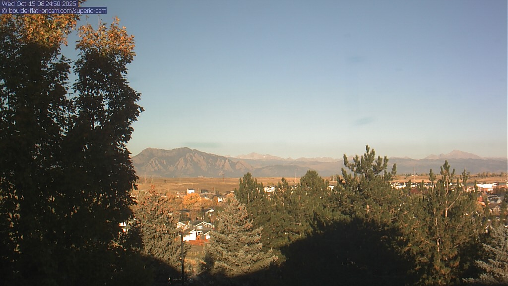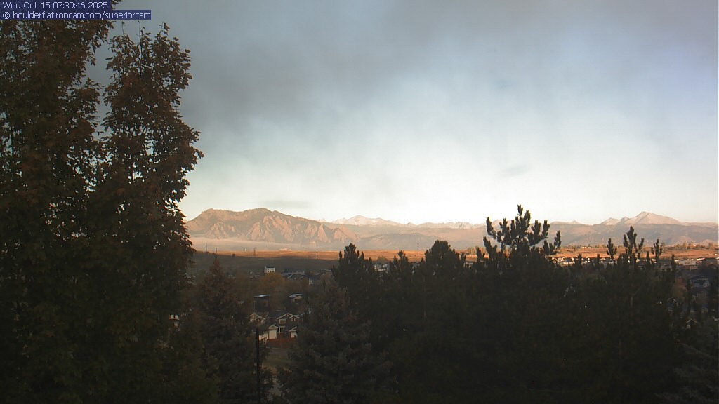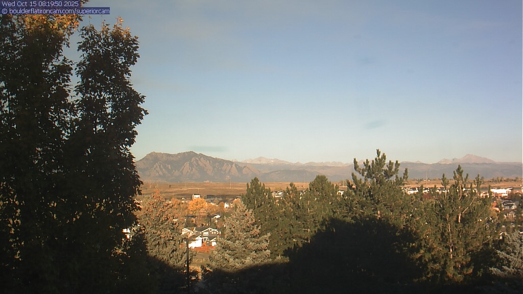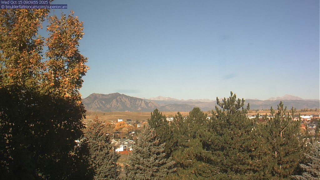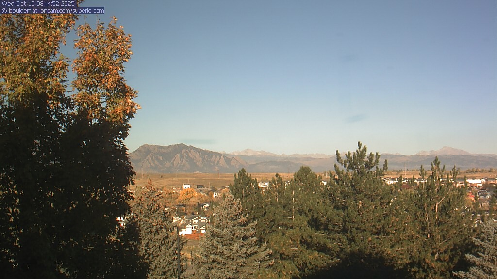 The Superior cam has a great view to the northwest over Boulder, the Flatirons, Indian Peaks and Long’s Peak.   The Coal Creek trail is visible in the foreground with old town Superior.  Thanks to Aweida Venture Partners management for the great view.