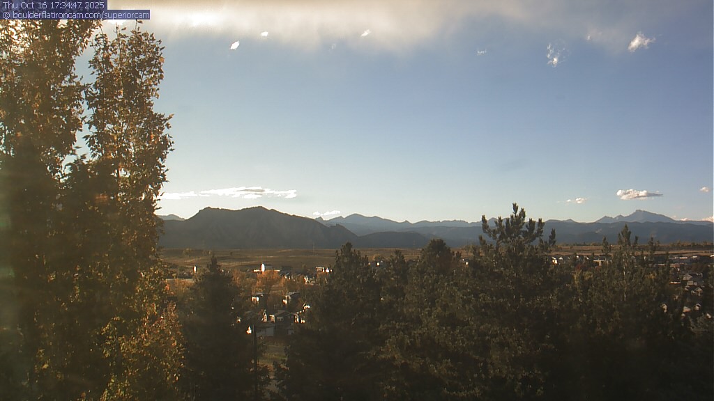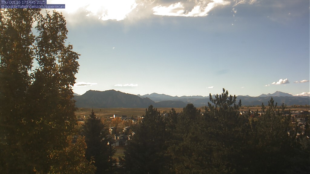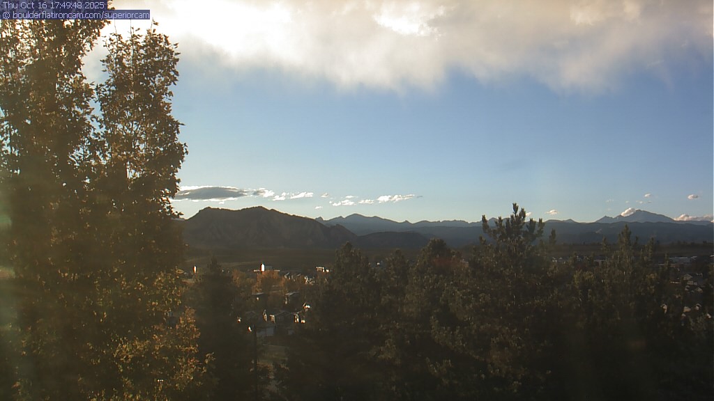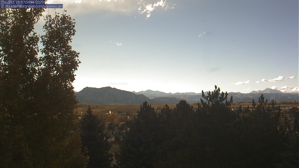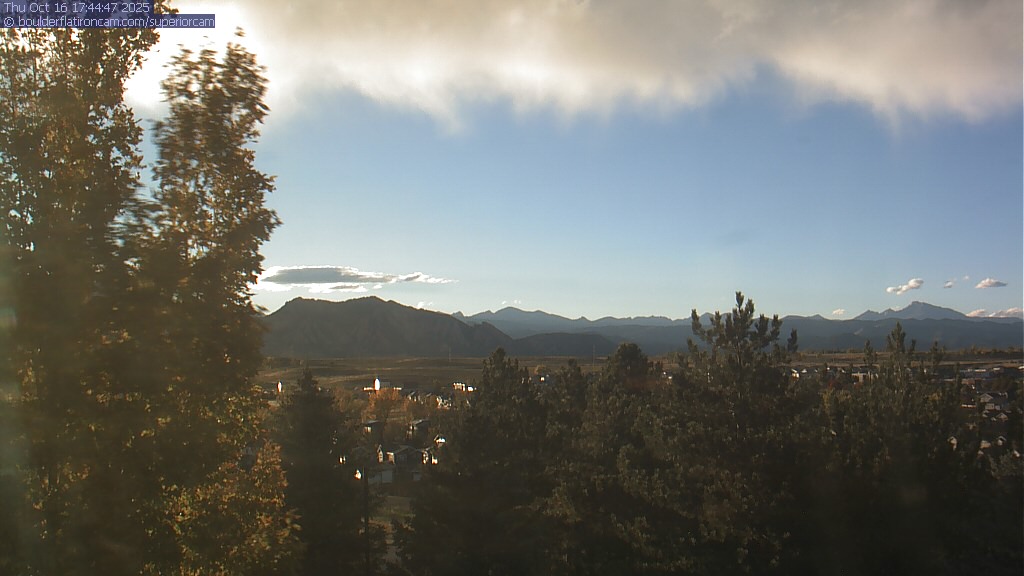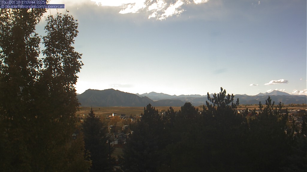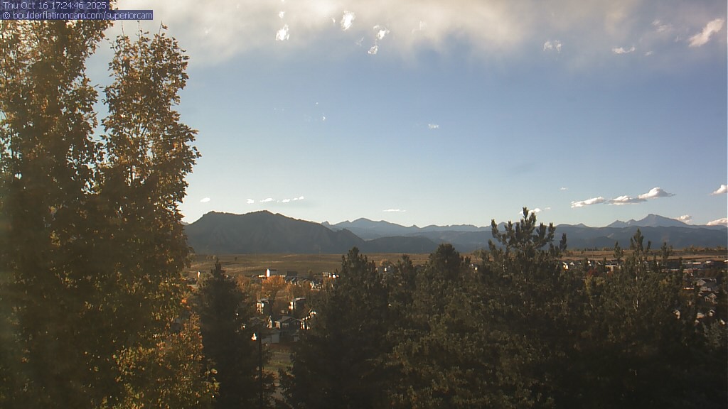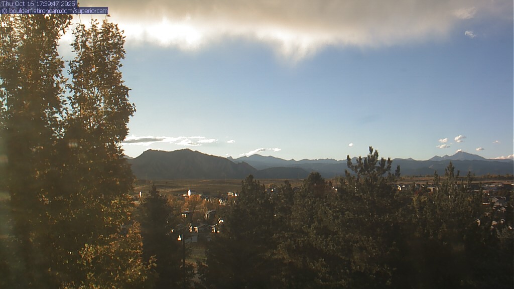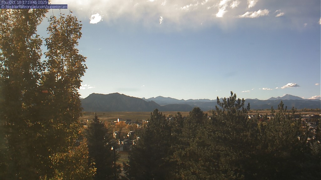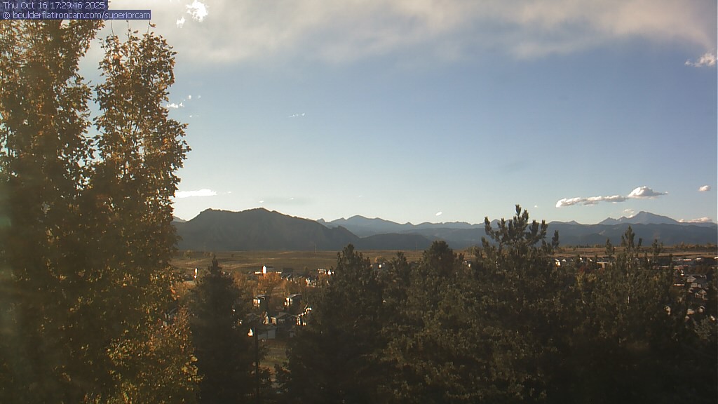 The Superior cam has a great view to the northwest over Boulder, the Flatirons, Indian Peaks and Long’s Peak.   The Coal Creek trail is visible in the foreground with old town Superior.  Thanks to Aweida Venture Partners management for the great view.