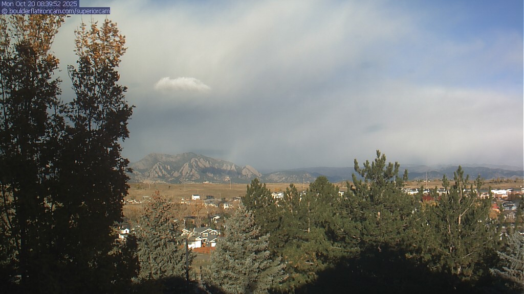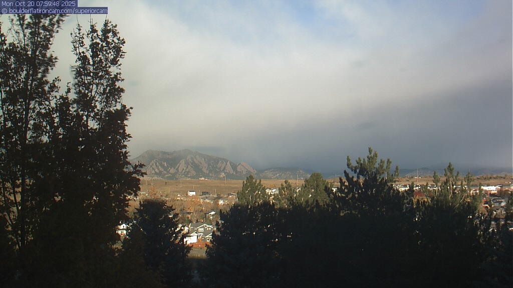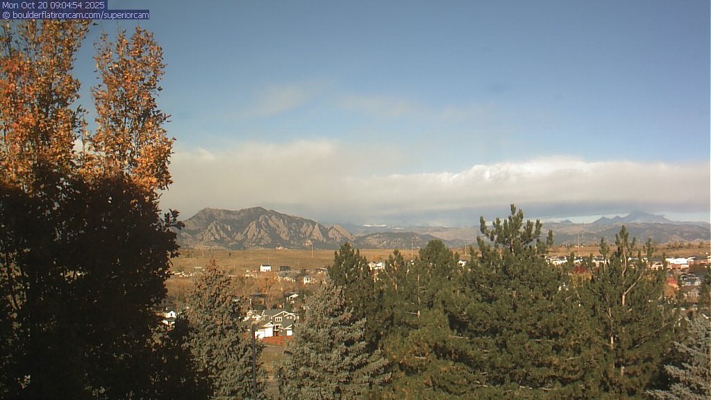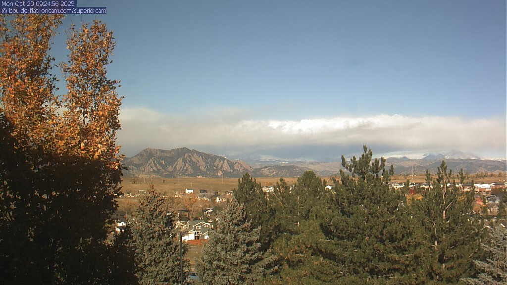 The Superior cam has a great view to the northwest over Boulder, the Flatirons, Indian Peaks and Long’s Peak.   The Coal Creek trail is visible in the foreground with old town Superior.  Thanks to Aweida Venture Partners management for the great view.