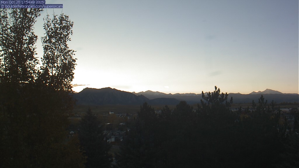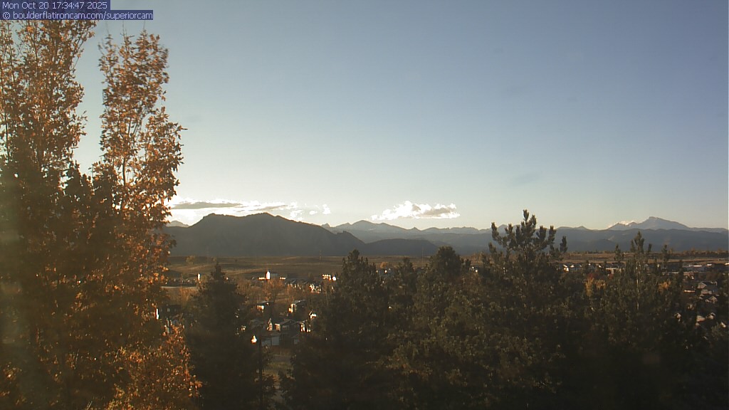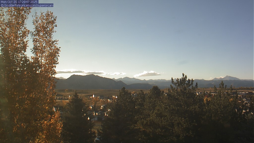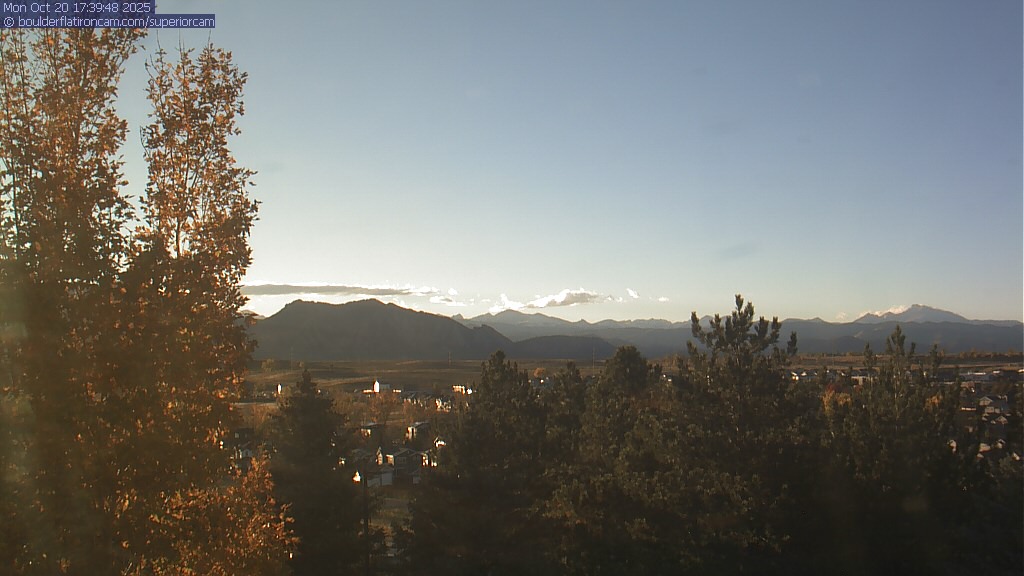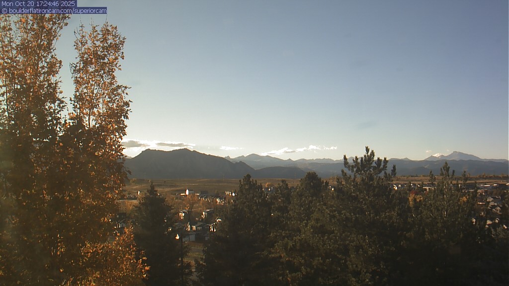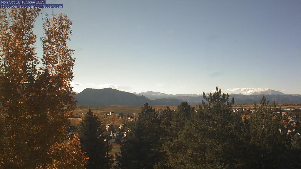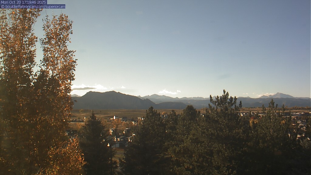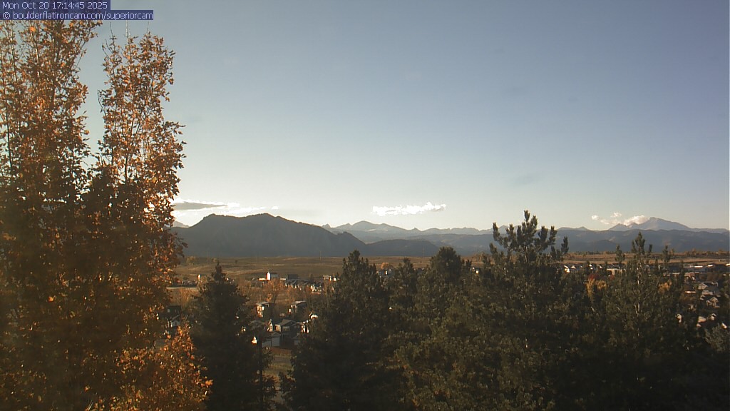 The Superior cam has a great view to the northwest over Boulder, the Flatirons, Indian Peaks and Long’s Peak.   The Coal Creek trail is visible in the foreground with old town Superior.  Thanks to Aweida Venture Partners management for the great view.