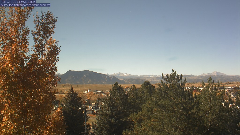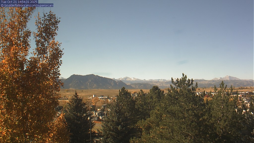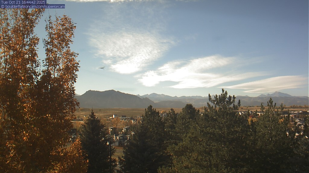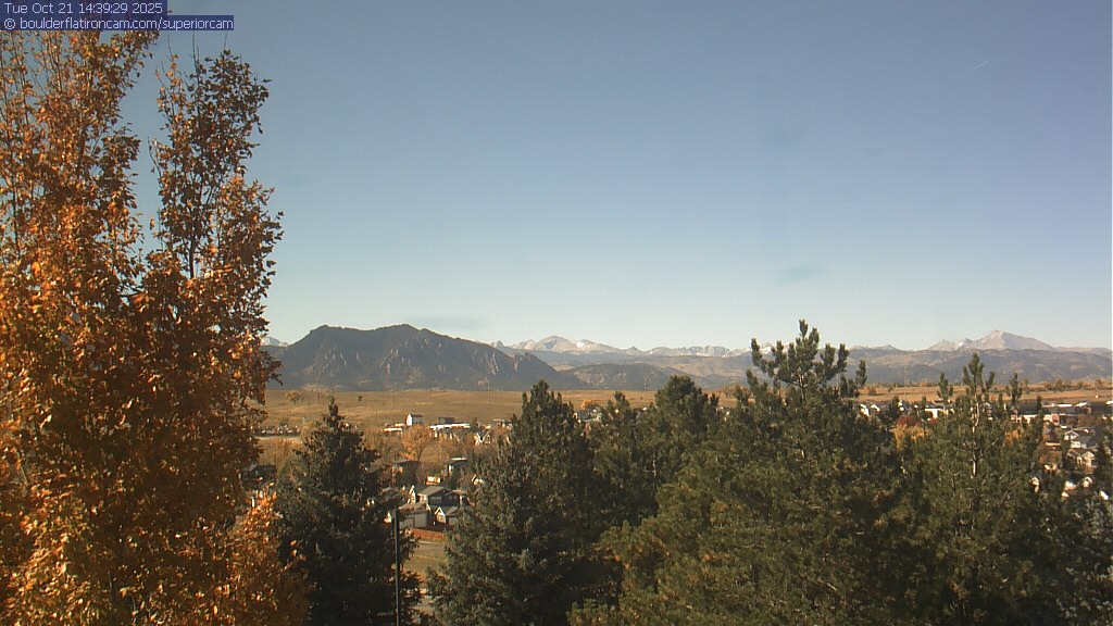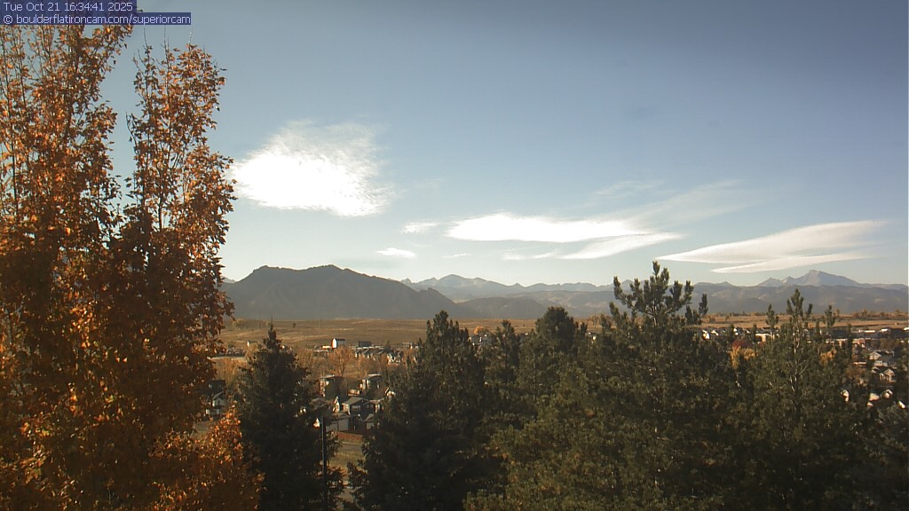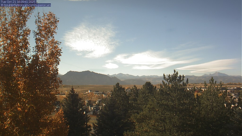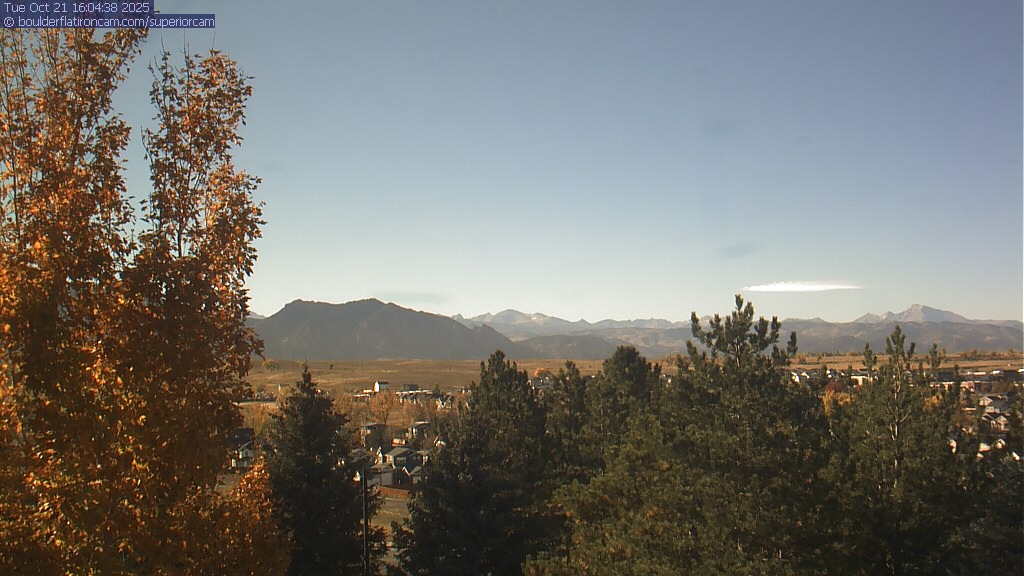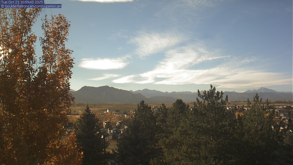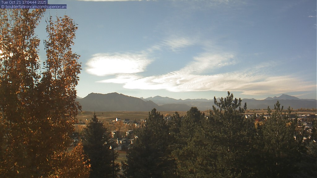 The Superior cam has a great view to the northwest over Boulder, the Flatirons, Indian Peaks and Long’s Peak.   The Coal Creek trail is visible in the foreground with old town Superior.  Thanks to Aweida Venture Partners management for the great view.