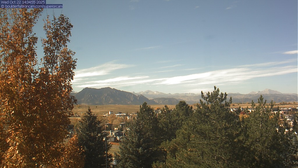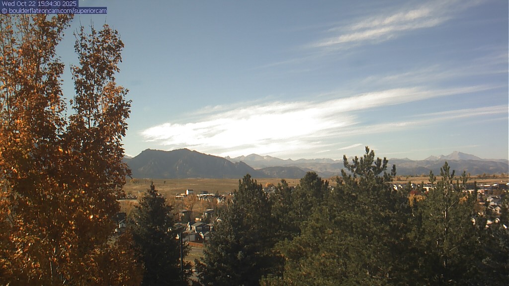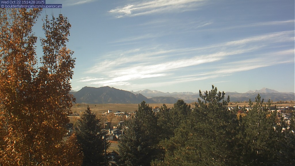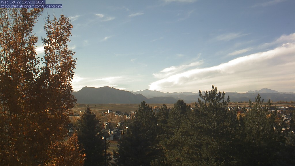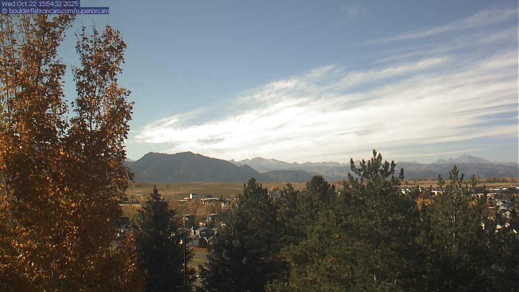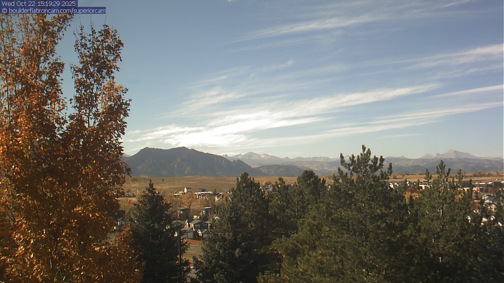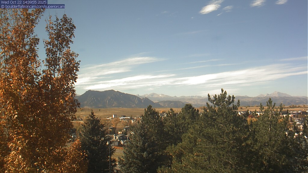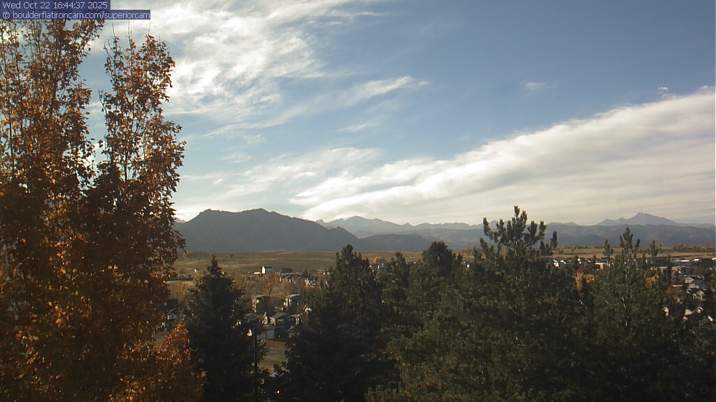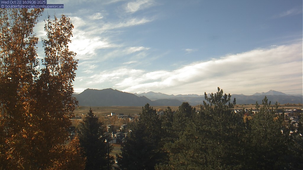 The Superior cam has a great view to the northwest over Boulder, the Flatirons, Indian Peaks and Long’s Peak.   The Coal Creek trail is visible in the foreground with old town Superior.  Thanks to Aweida Venture Partners management for the great view.