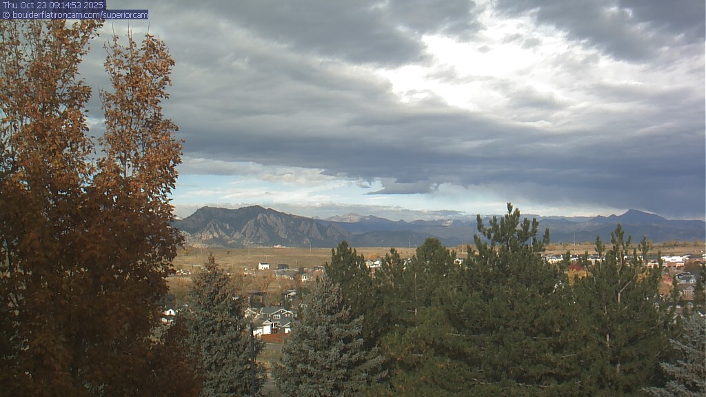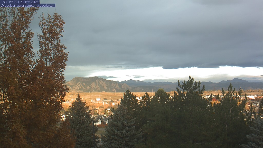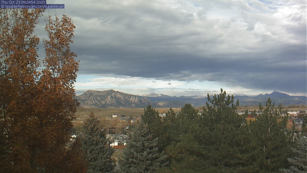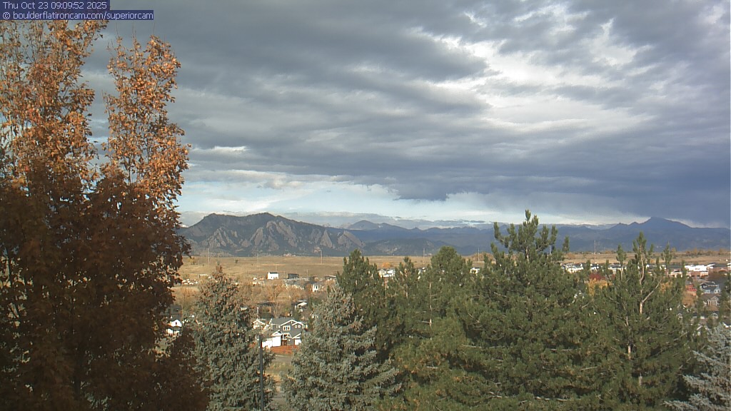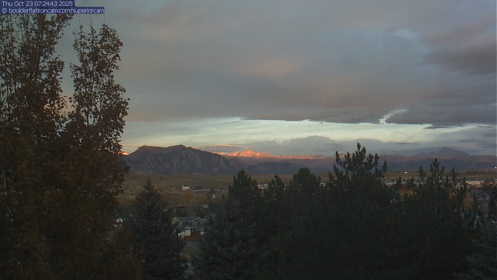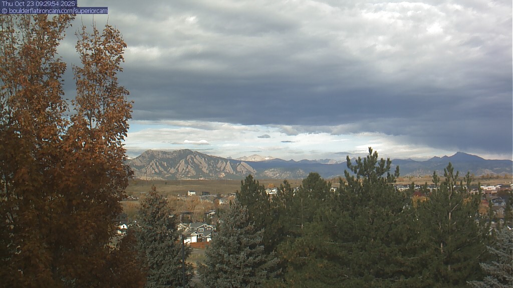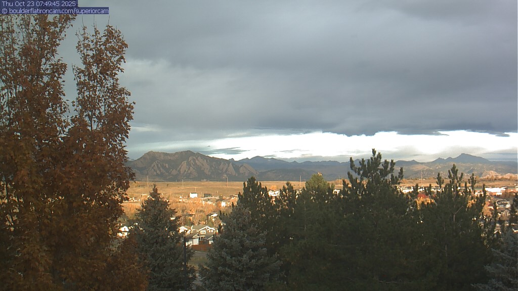 The Superior cam has a great view to the northwest over Boulder, the Flatirons, Indian Peaks and Long’s Peak.   The Coal Creek trail is visible in the foreground with old town Superior.  Thanks to Aweida Venture Partners management for the great view.