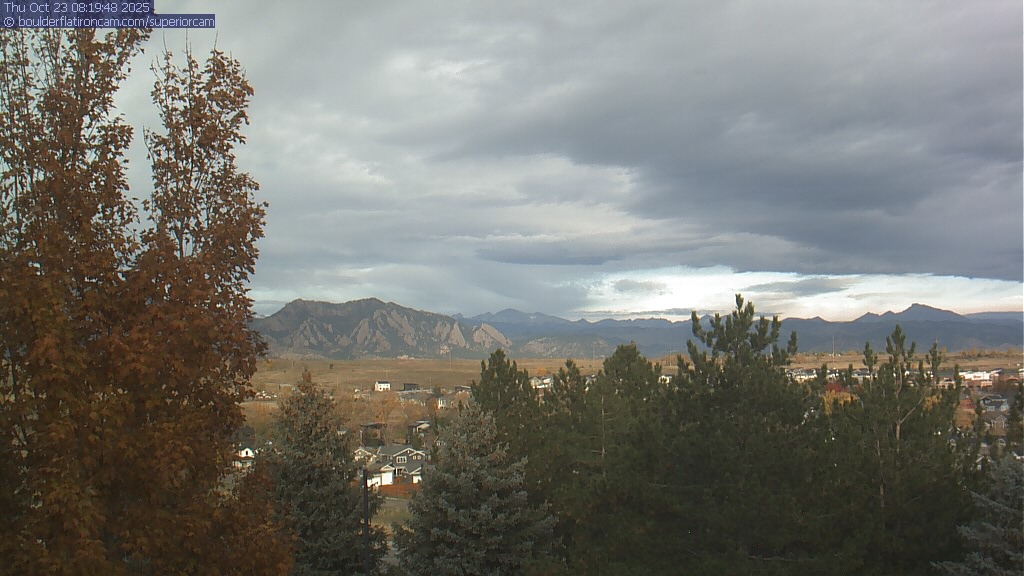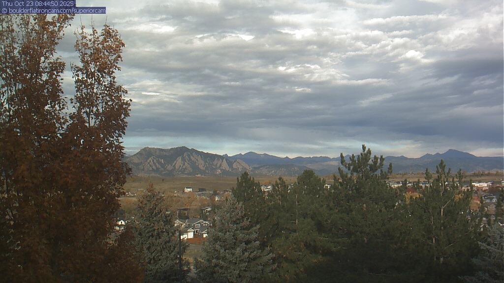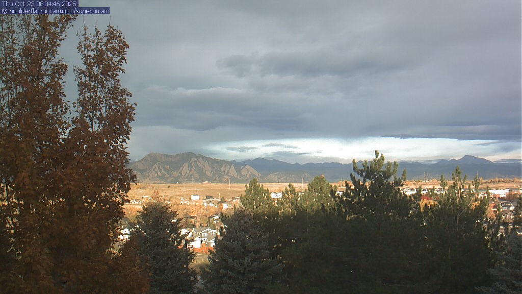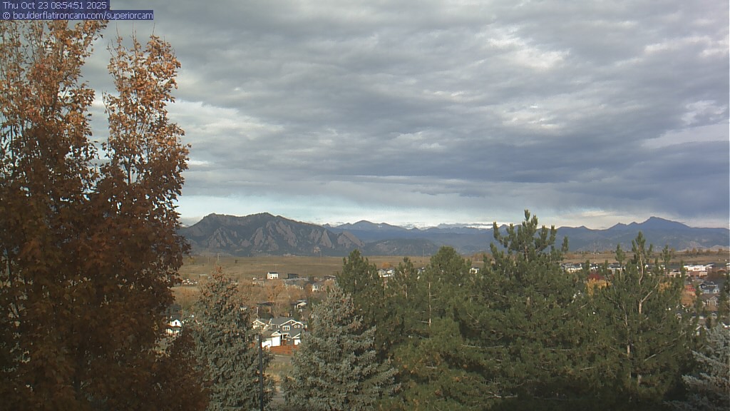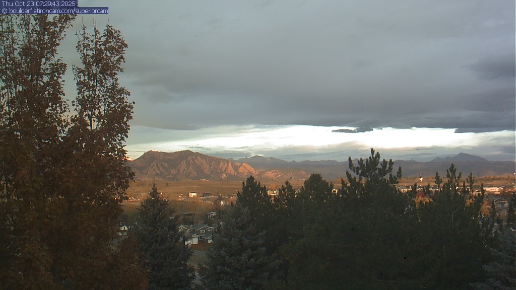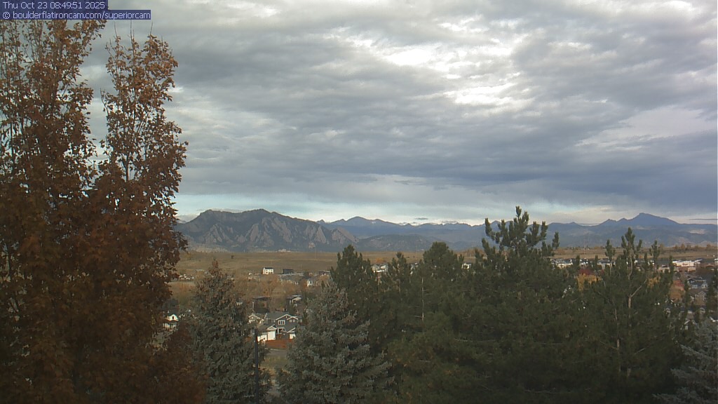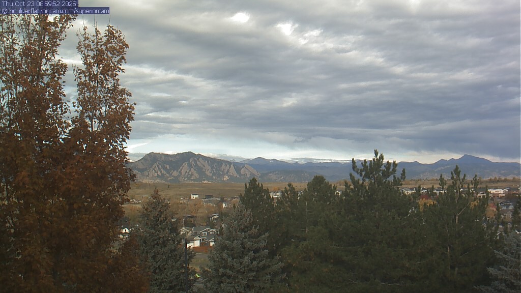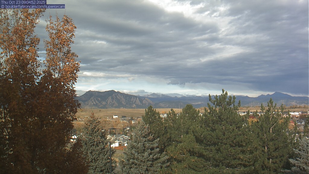 The Superior cam has a great view to the northwest over Boulder, the Flatirons, Indian Peaks and Long’s Peak.   The Coal Creek trail is visible in the foreground with old town Superior.  Thanks to Aweida Venture Partners management for the great view.