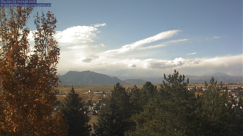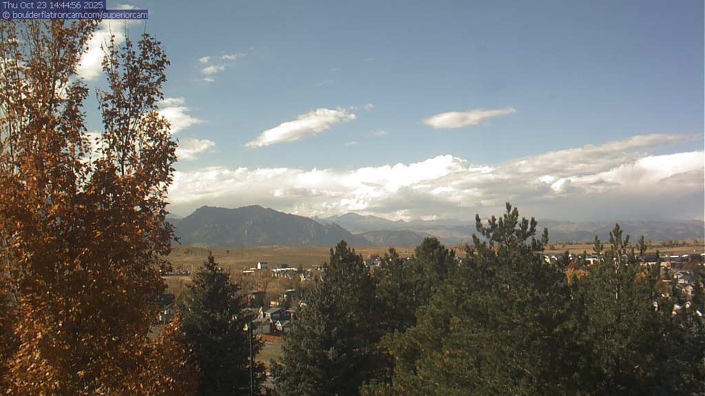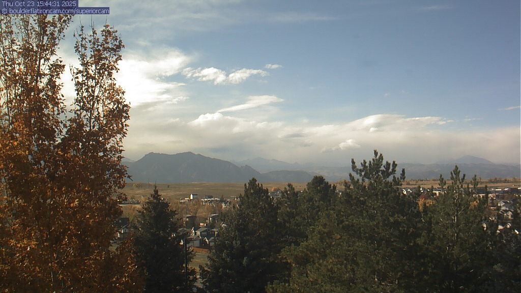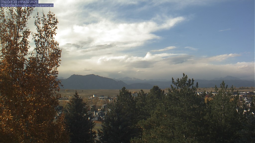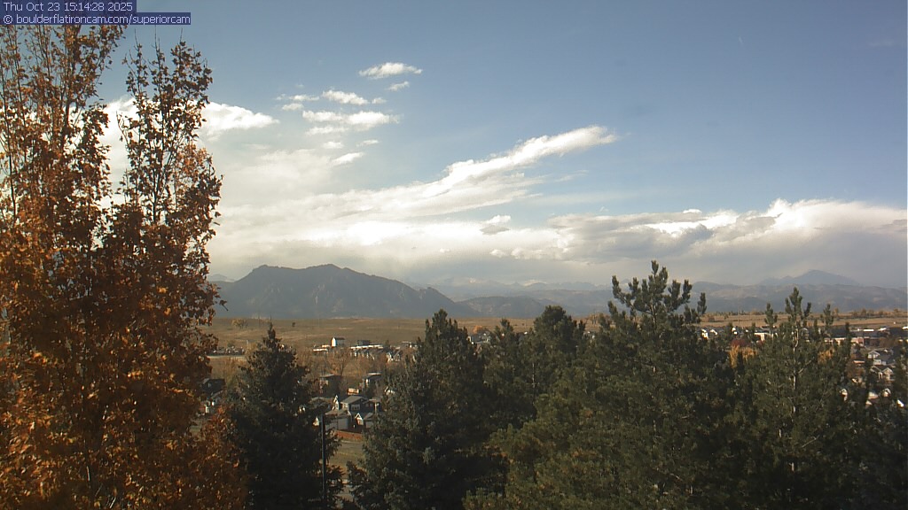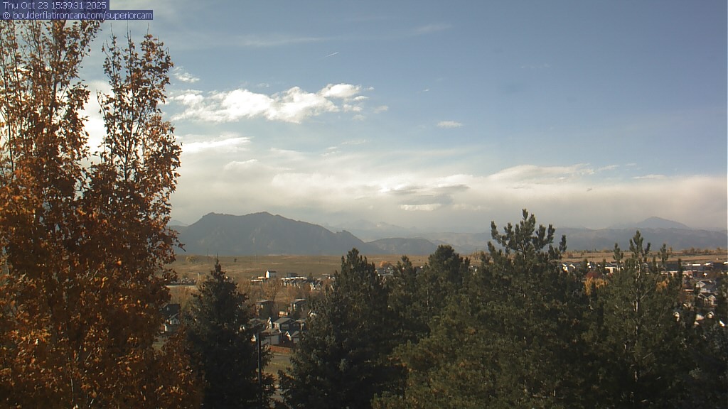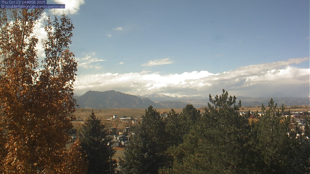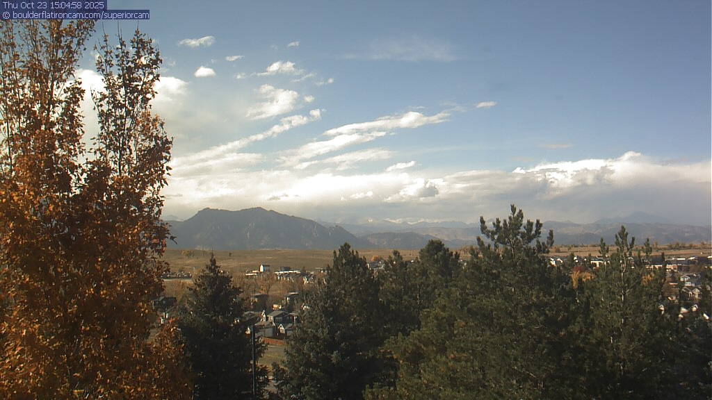 The Superior cam has a great view to the northwest over Boulder, the Flatirons, Indian Peaks and Long’s Peak.   The Coal Creek trail is visible in the foreground with old town Superior.  Thanks to Aweida Venture Partners management for the great view.
