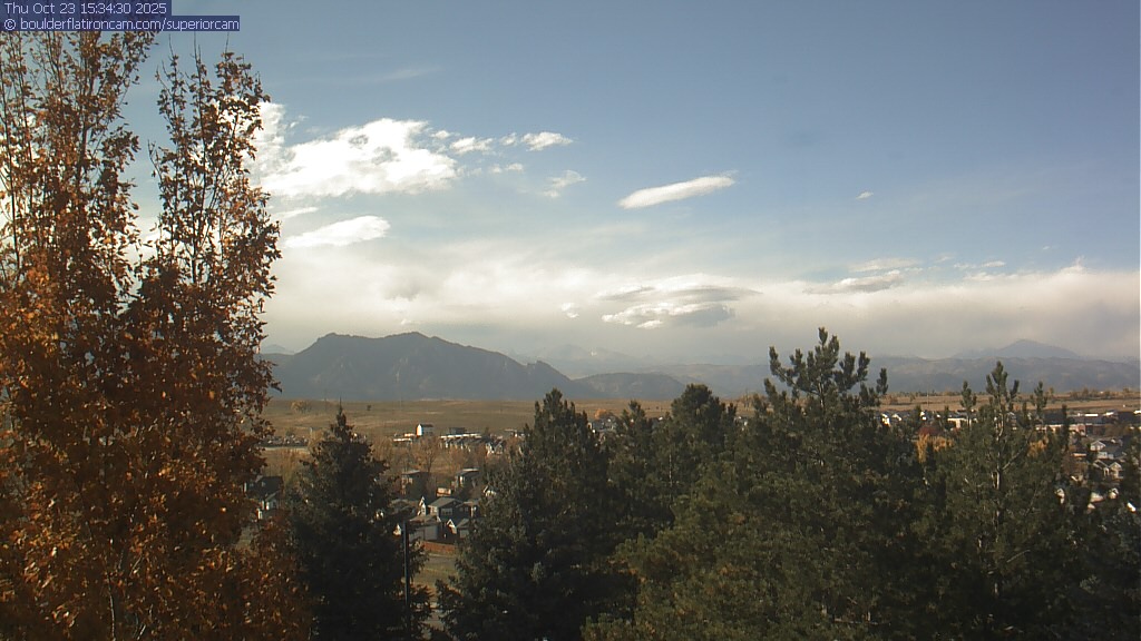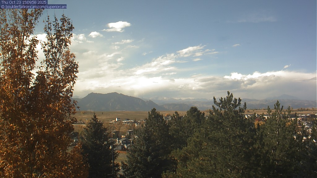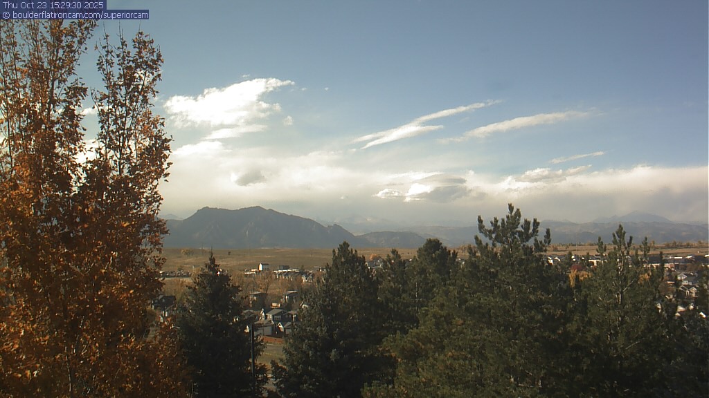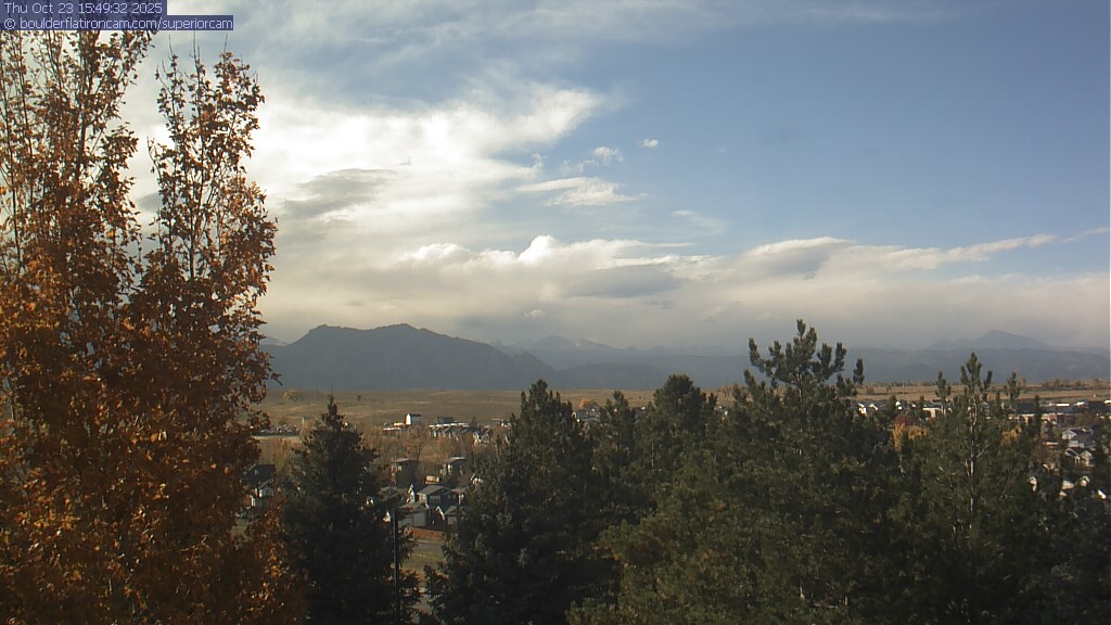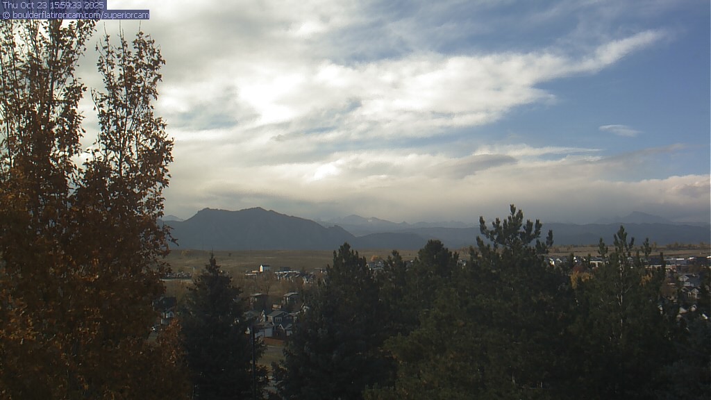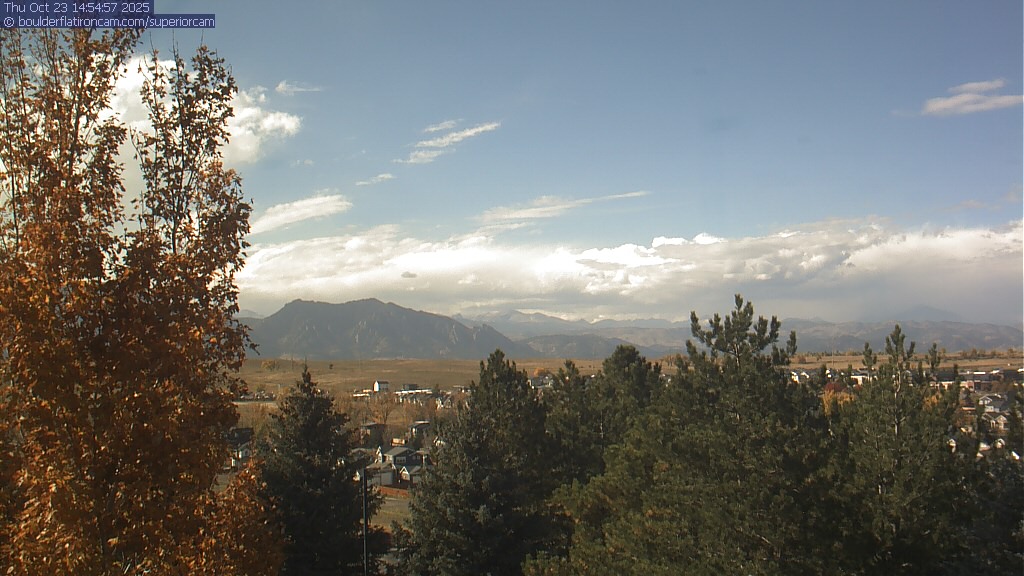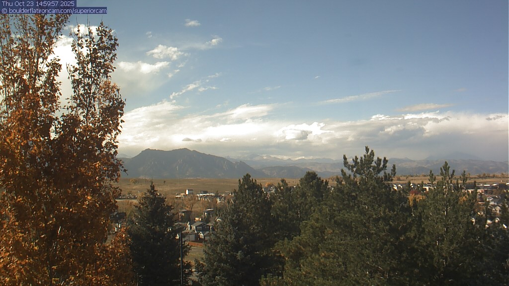 The Superior cam has a great view to the northwest over Boulder, the Flatirons, Indian Peaks and Long’s Peak.   The Coal Creek trail is visible in the foreground with old town Superior.  Thanks to Aweida Venture Partners management for the great view.