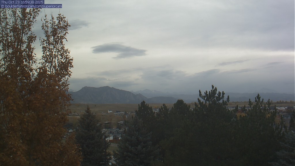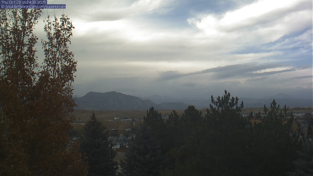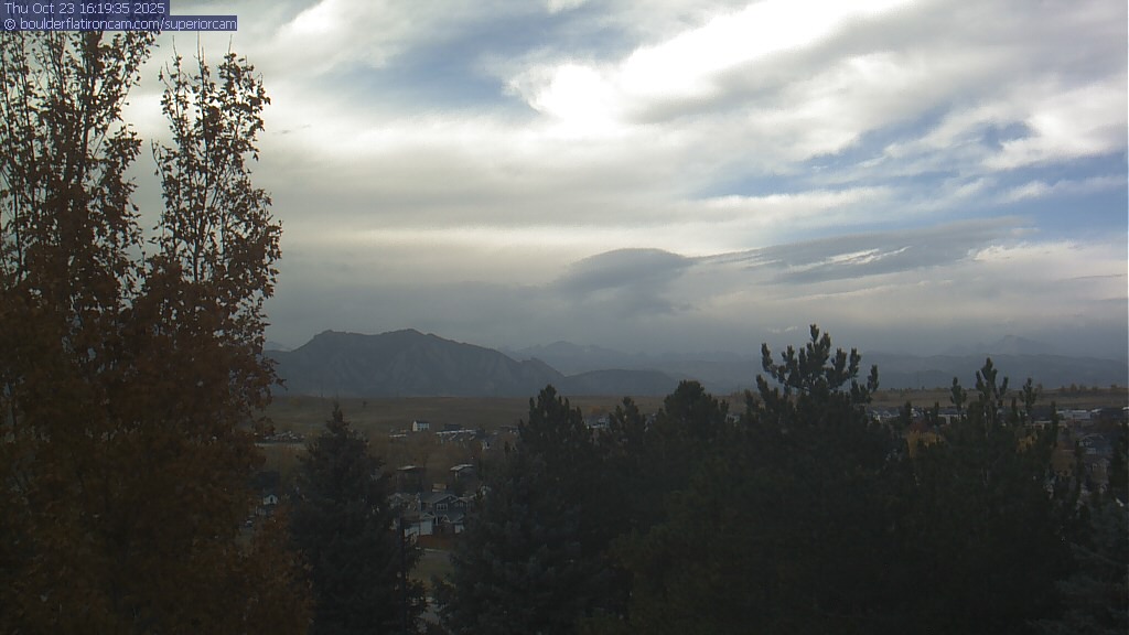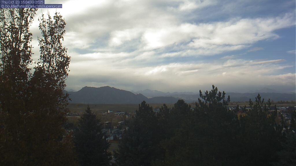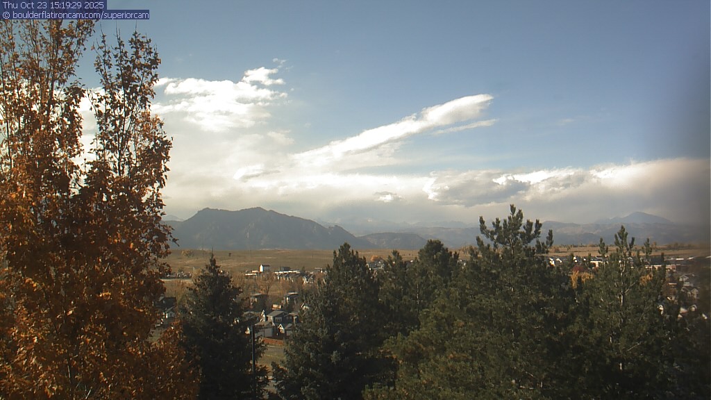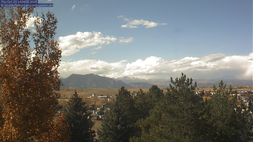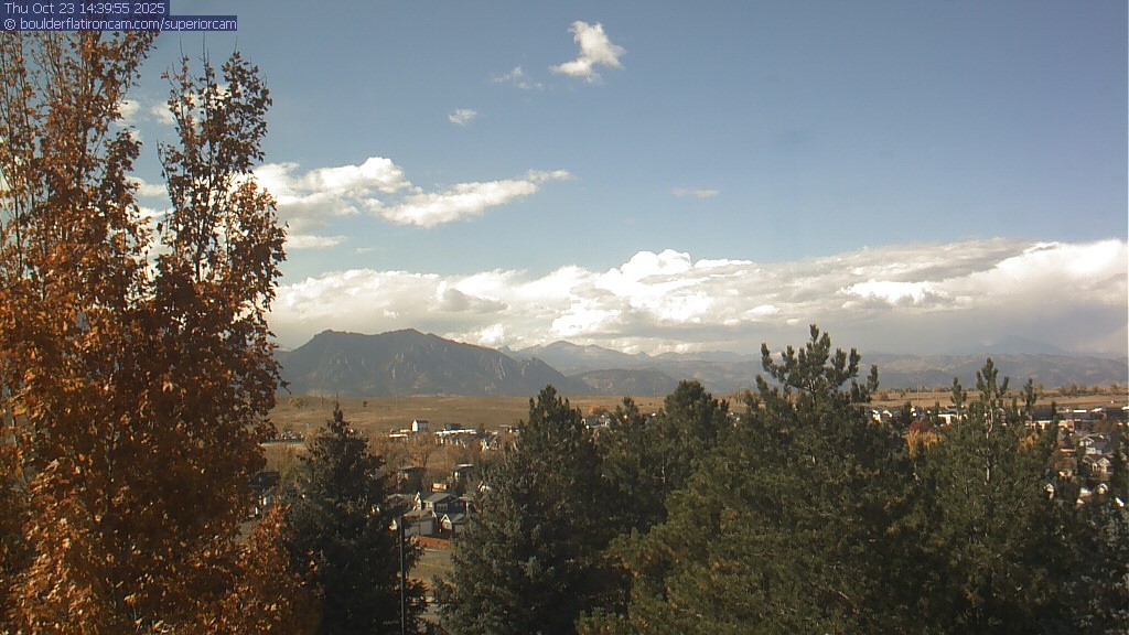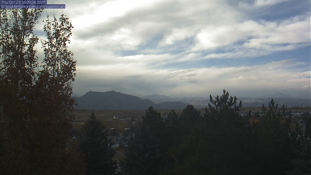 The Superior cam has a great view to the northwest over Boulder, the Flatirons, Indian Peaks and Long’s Peak.   The Coal Creek trail is visible in the foreground with old town Superior.  Thanks to Aweida Venture Partners management for the great view.