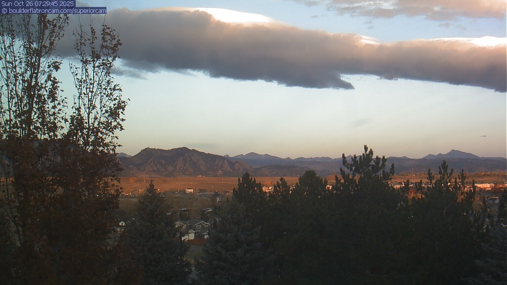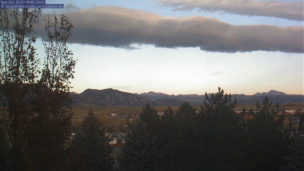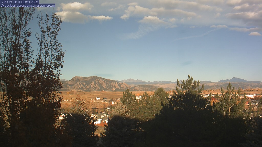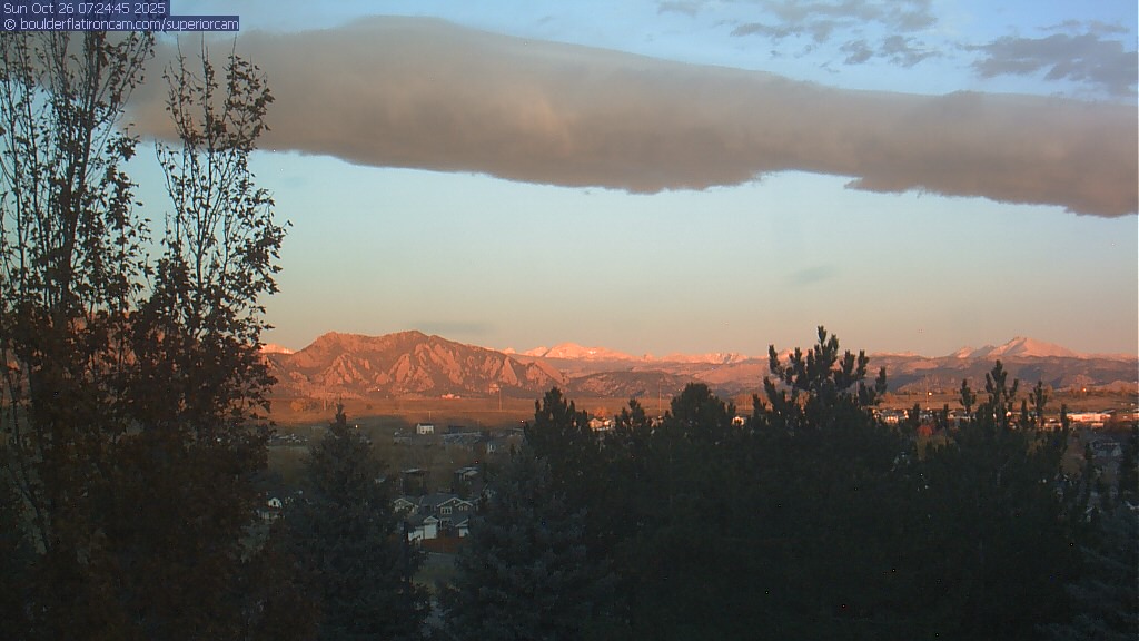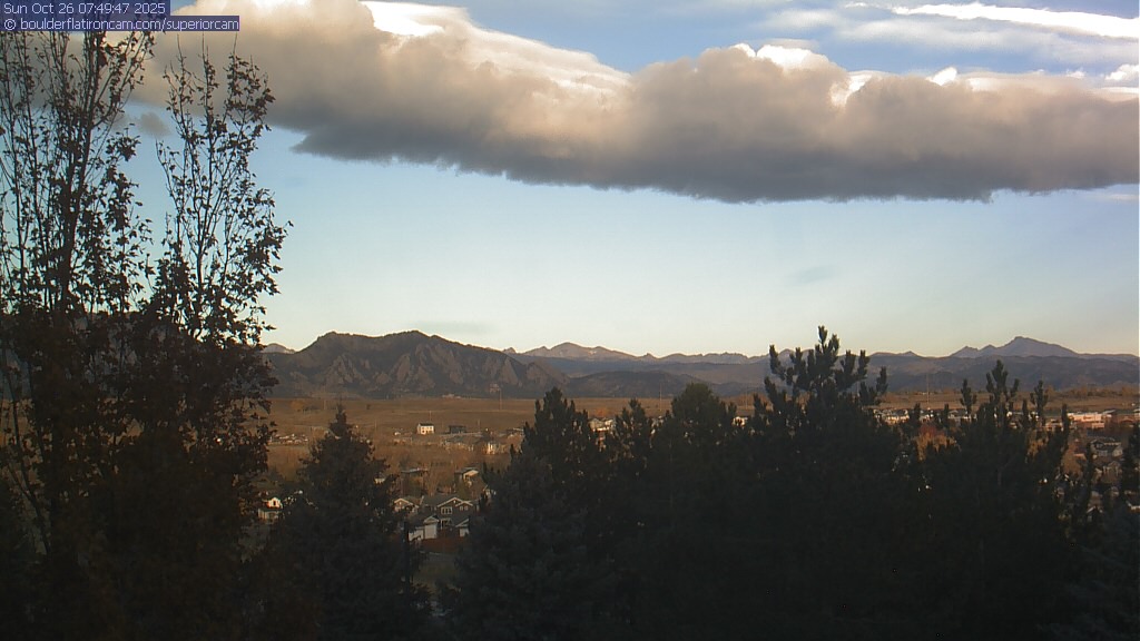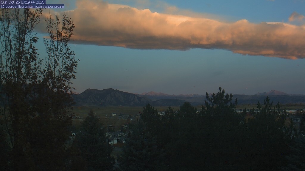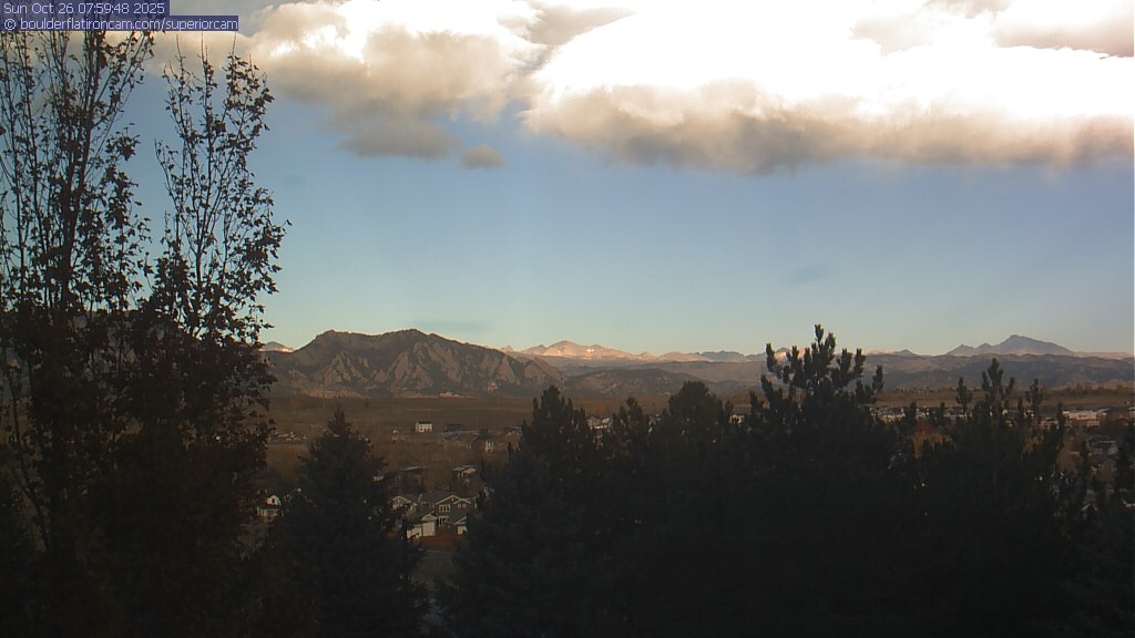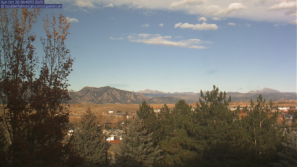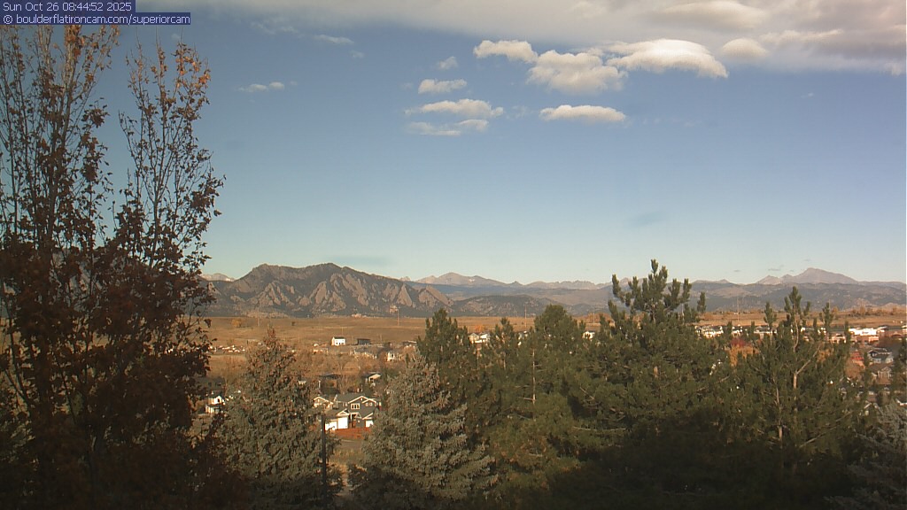 The Superior cam has a great view to the northwest over Boulder, the Flatirons, Indian Peaks and Long’s Peak.   The Coal Creek trail is visible in the foreground with old town Superior.  Thanks to Aweida Venture Partners management for the great view.