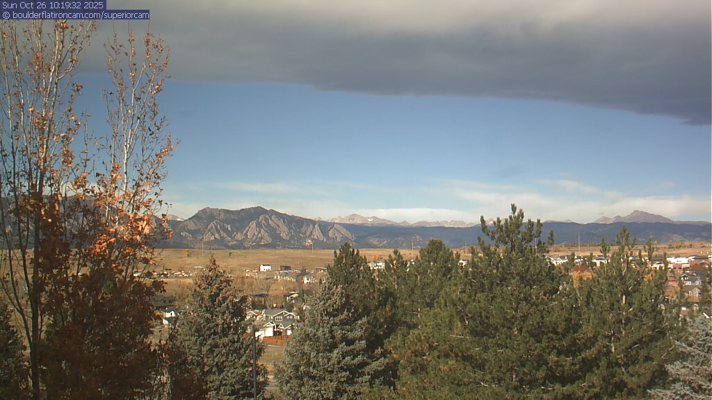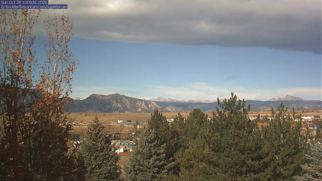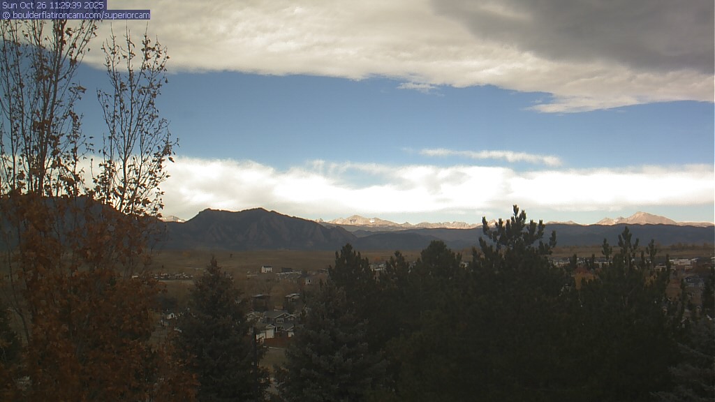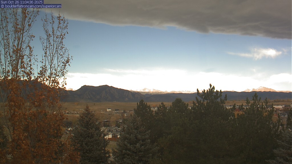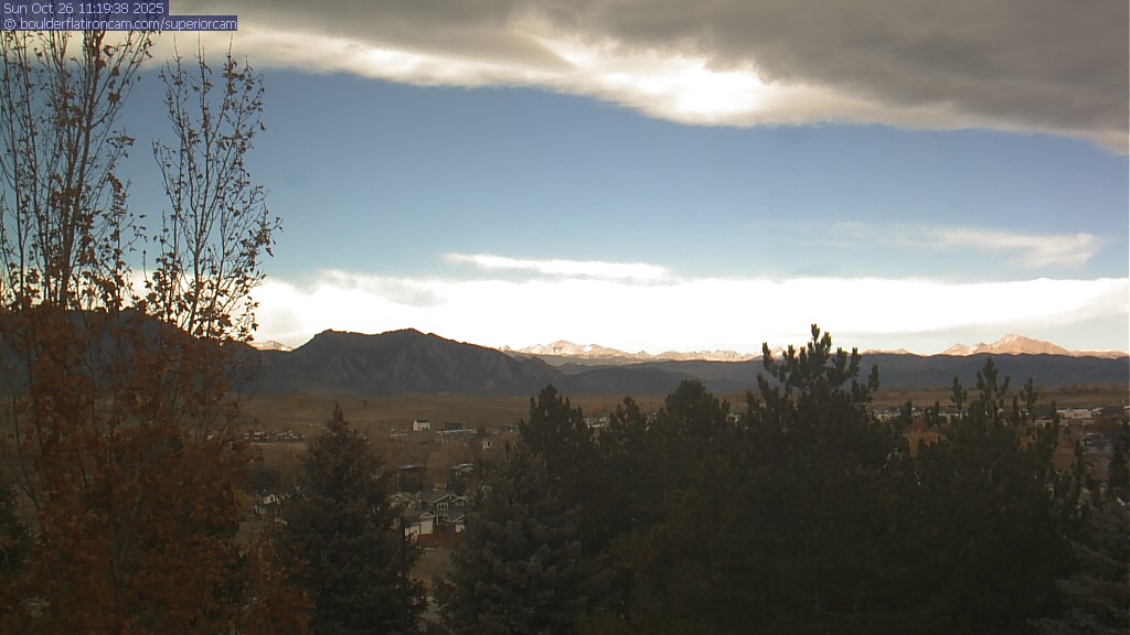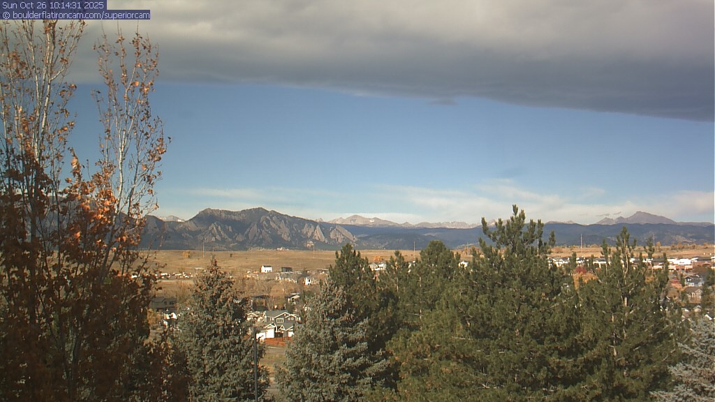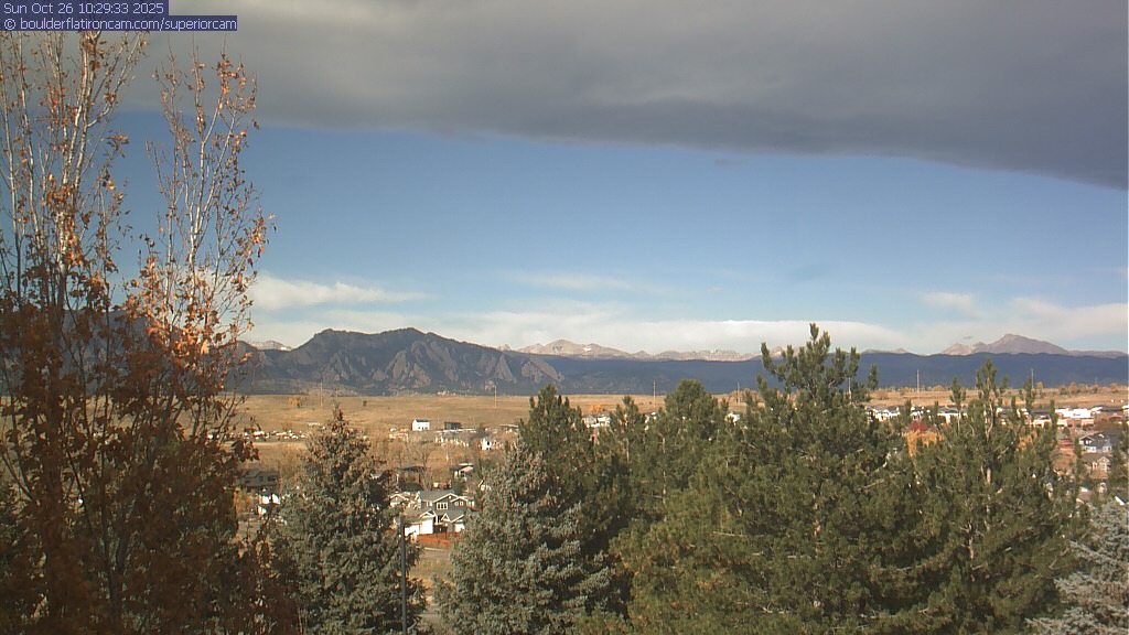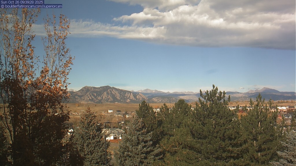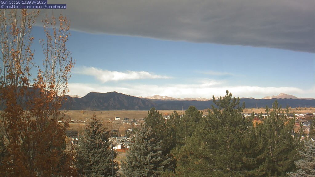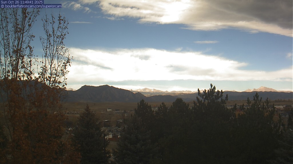 The Superior cam has a great view to the northwest over Boulder, the Flatirons, Indian Peaks and Long’s Peak.   The Coal Creek trail is visible in the foreground with old town Superior.  Thanks to Aweida Venture Partners management for the great view.