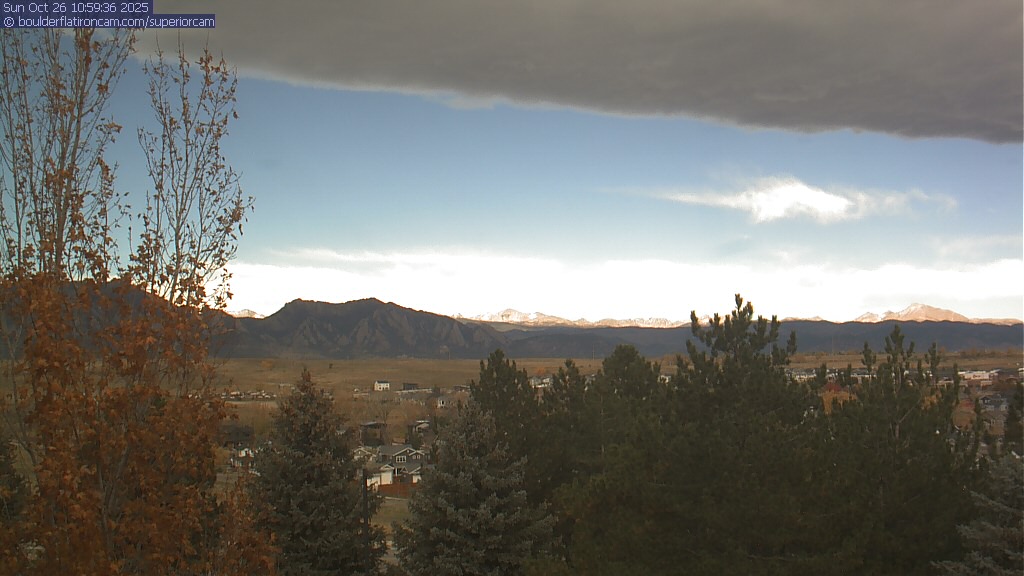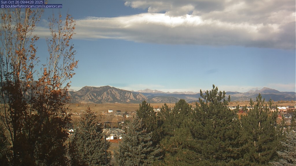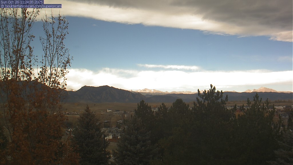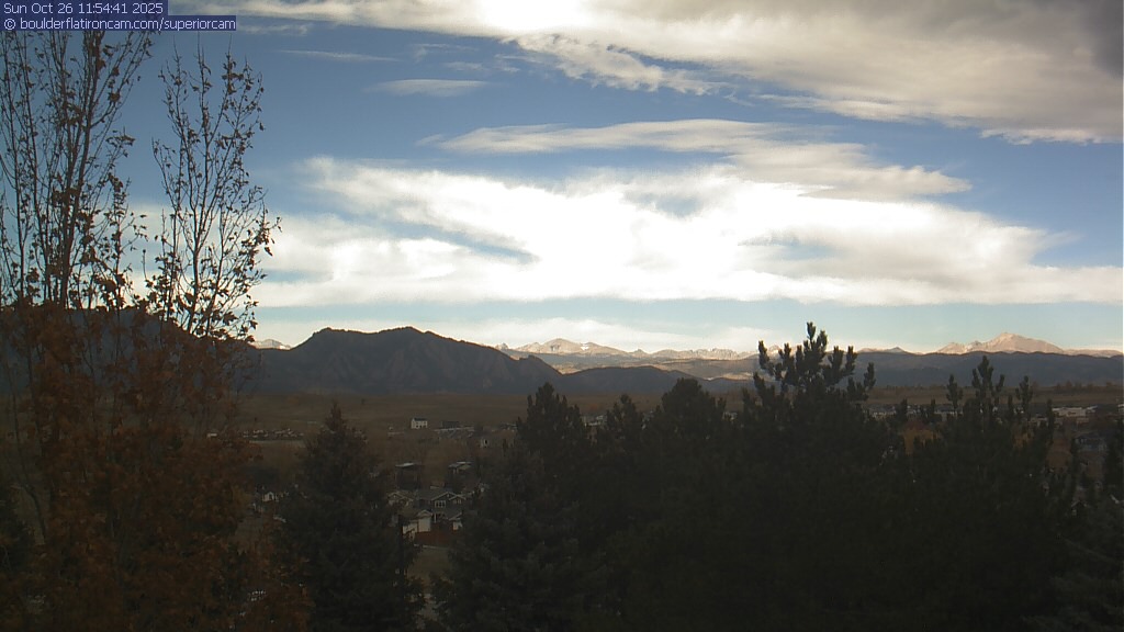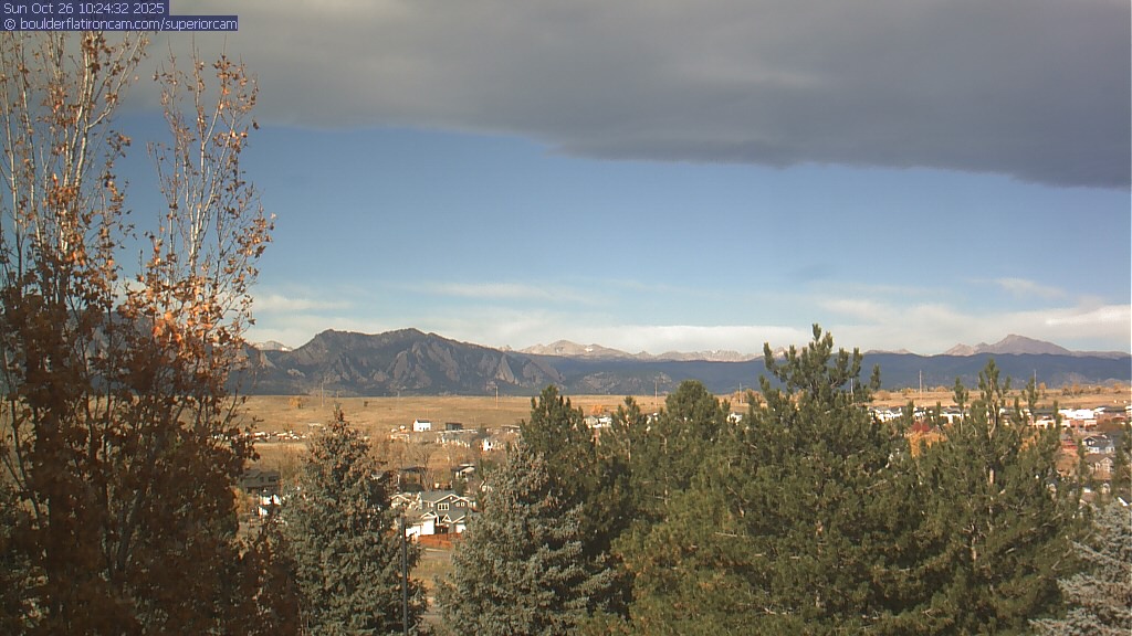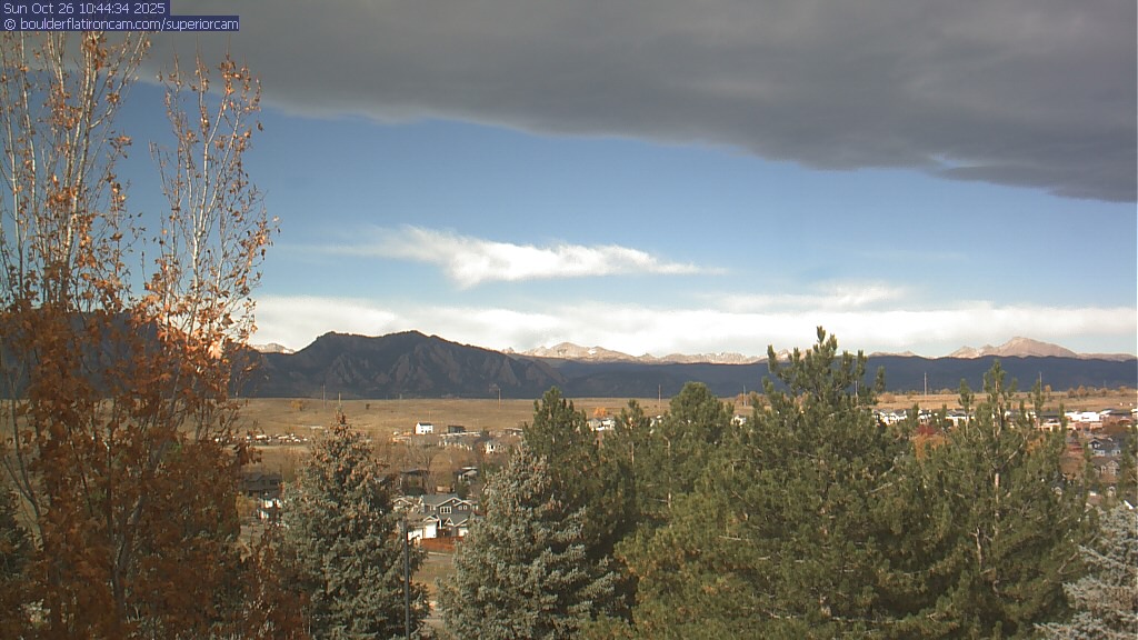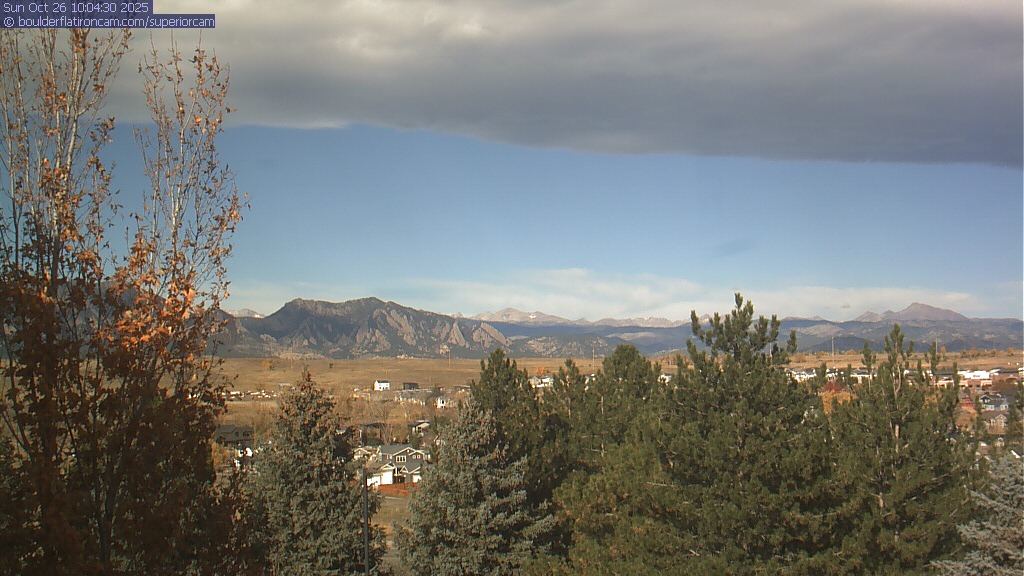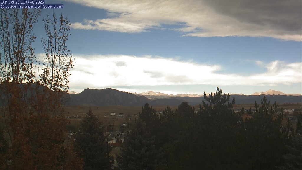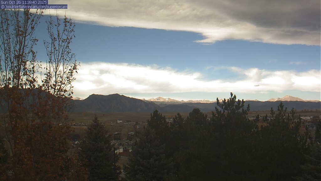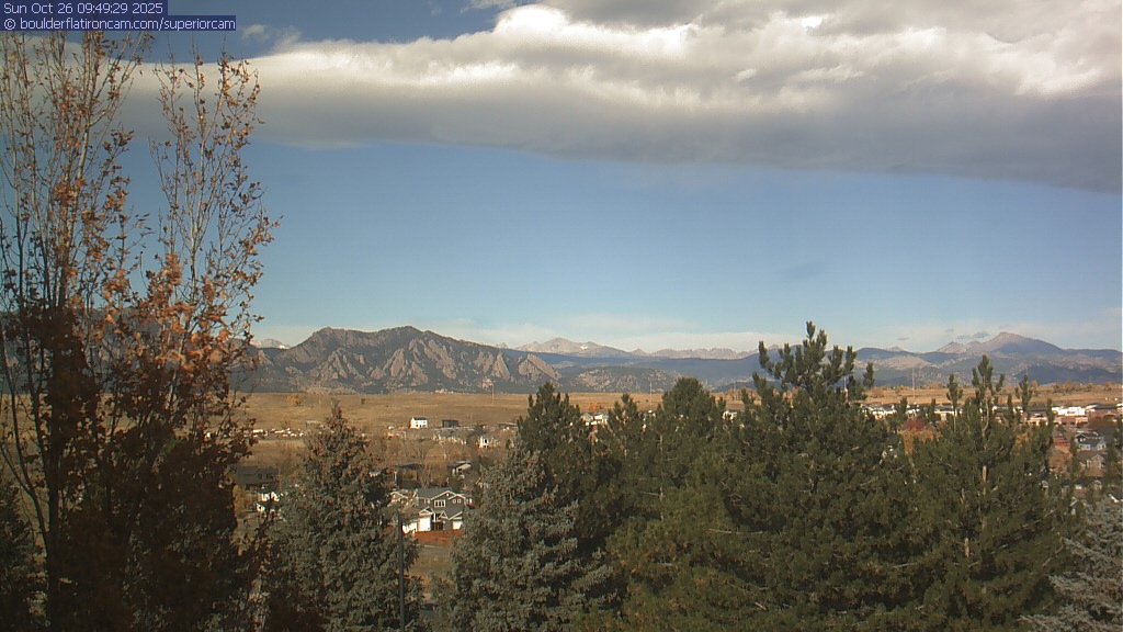 The Superior cam has a great view to the northwest over Boulder, the Flatirons, Indian Peaks and Long’s Peak.   The Coal Creek trail is visible in the foreground with old town Superior.  Thanks to Aweida Venture Partners management for the great view.