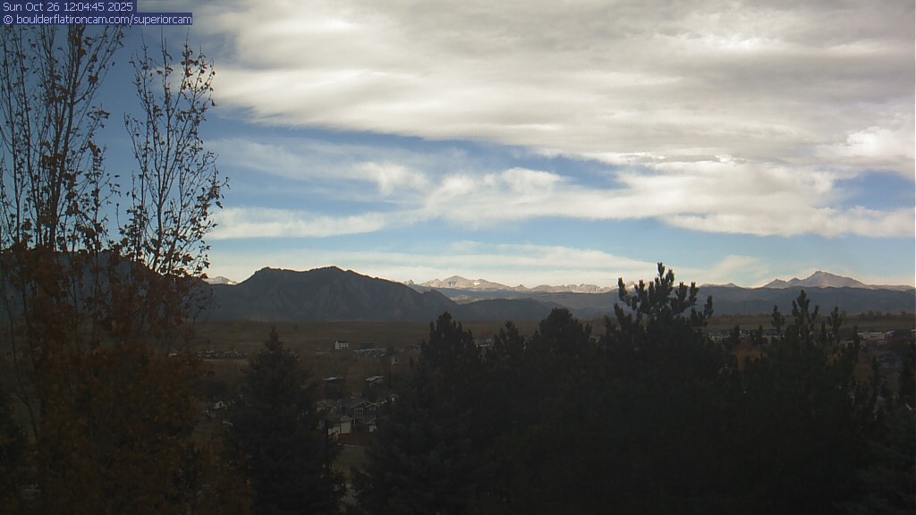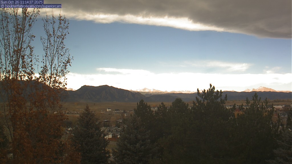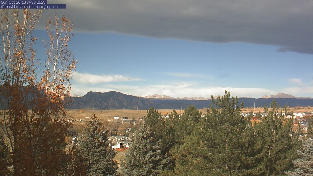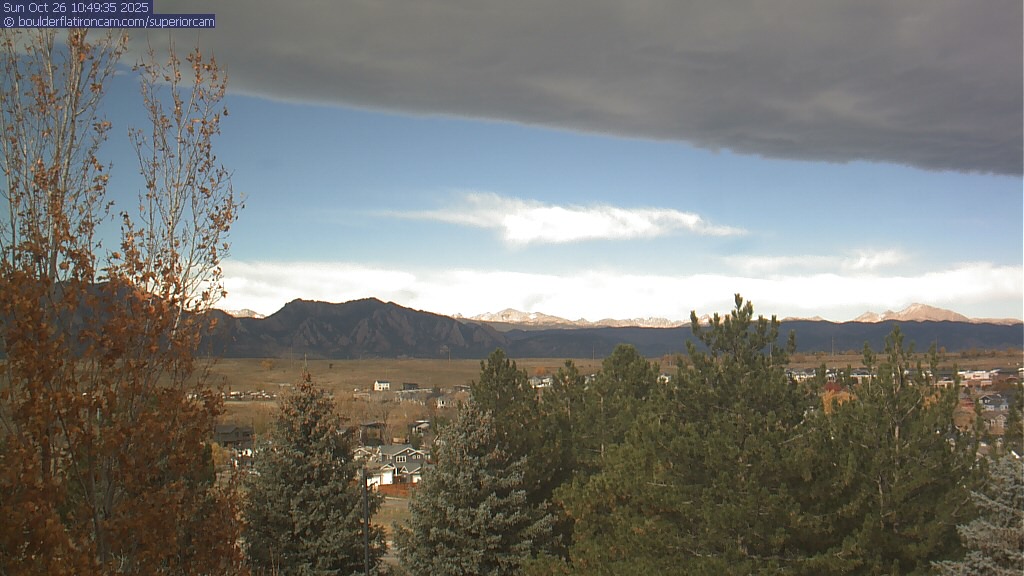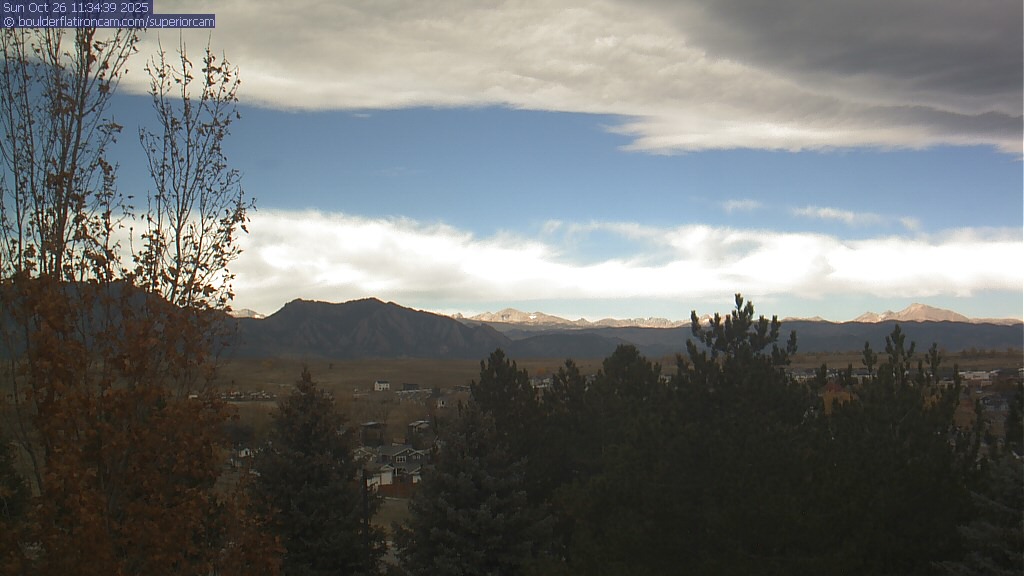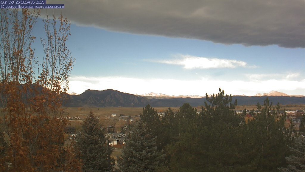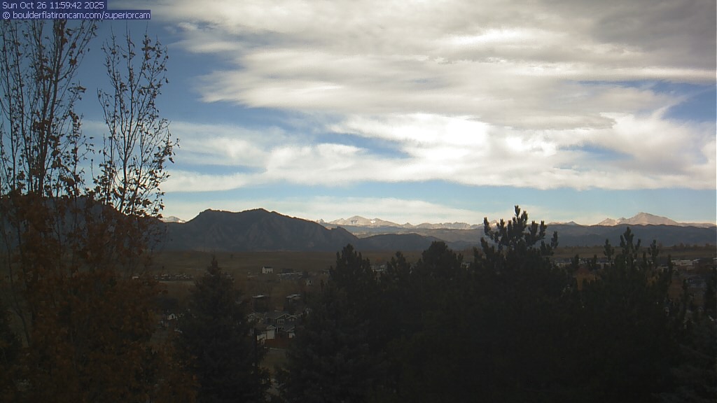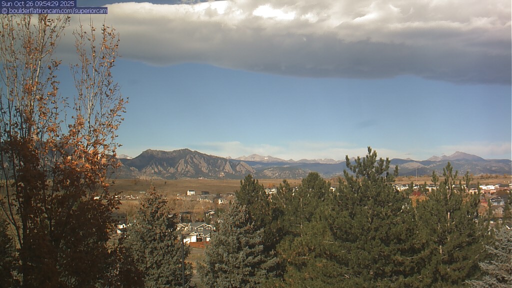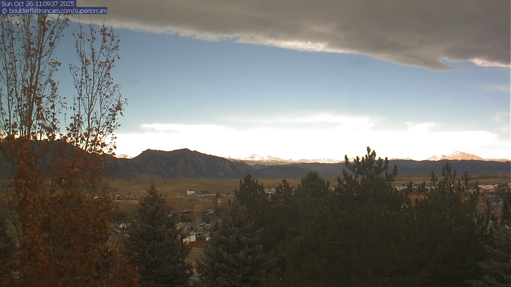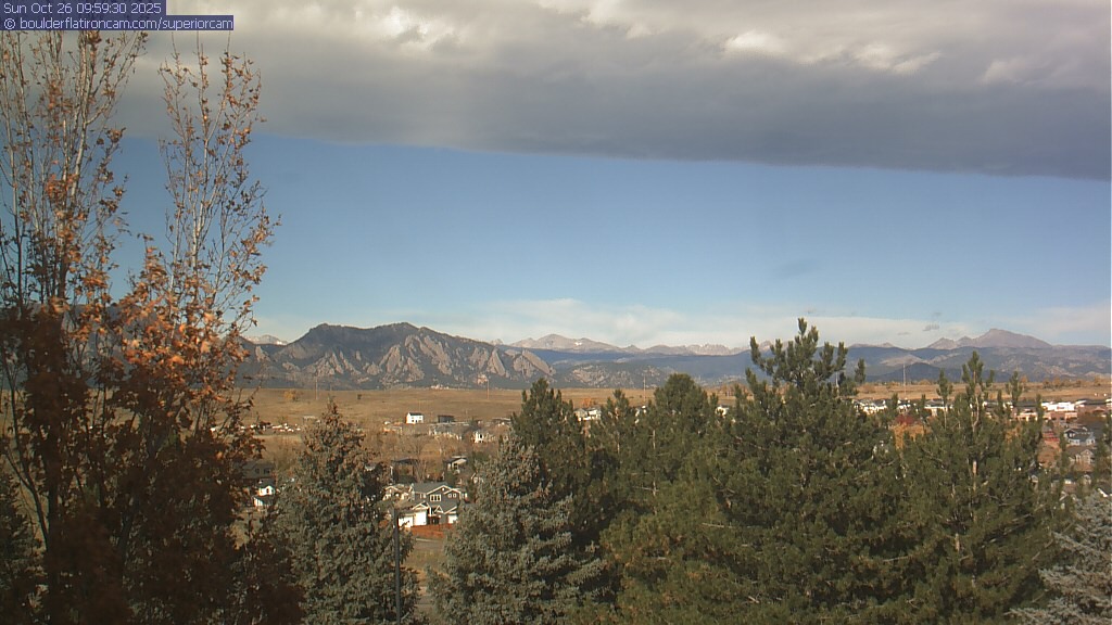 The Superior cam has a great view to the northwest over Boulder, the Flatirons, Indian Peaks and Long’s Peak.   The Coal Creek trail is visible in the foreground with old town Superior.  Thanks to Aweida Venture Partners management for the great view.