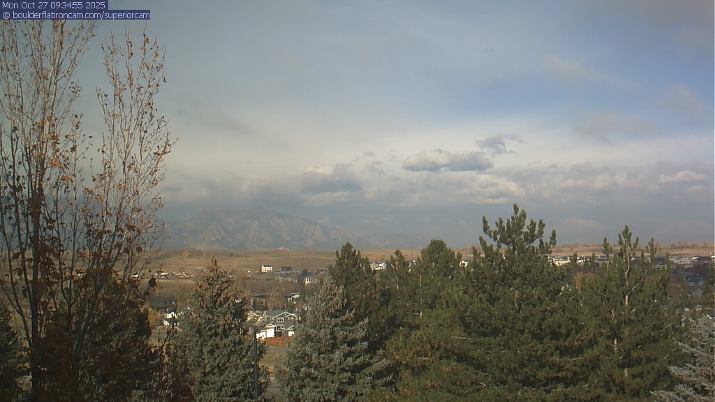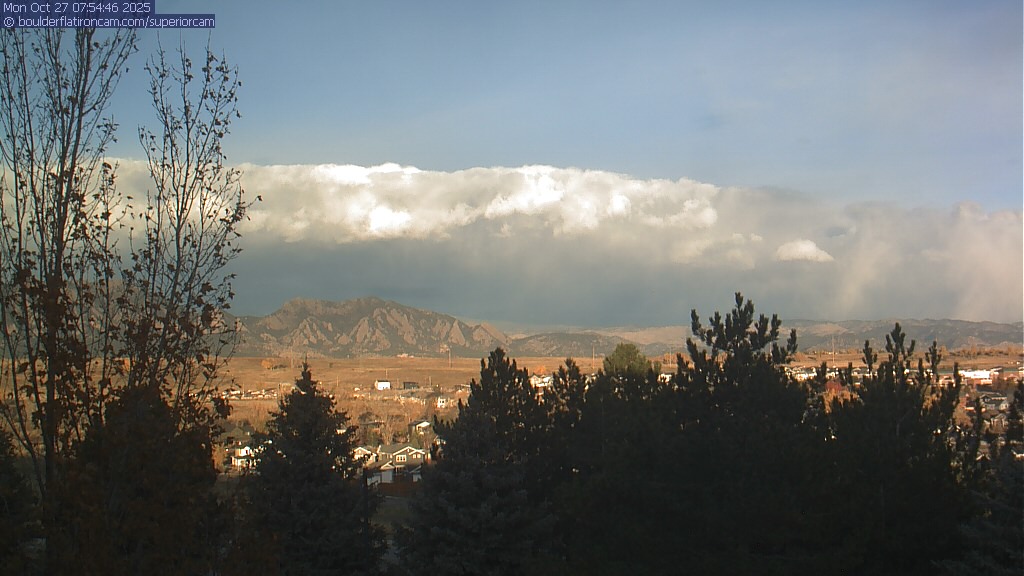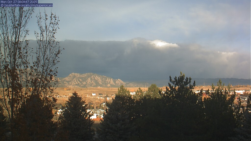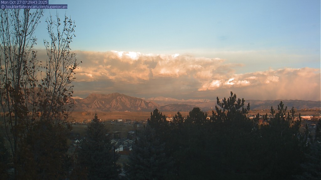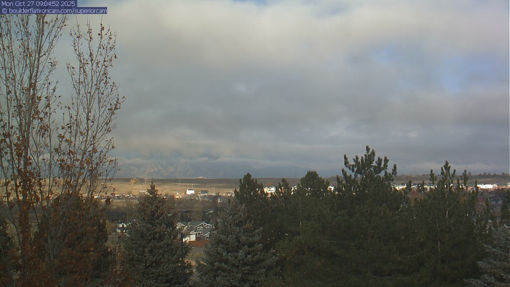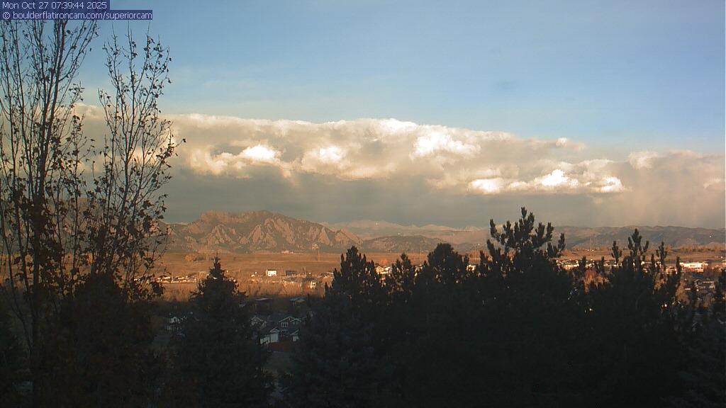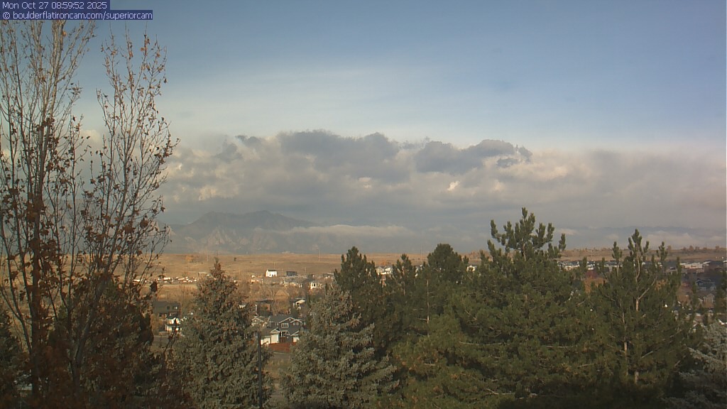 The Superior cam has a great view to the northwest over Boulder, the Flatirons, Indian Peaks and Long’s Peak.   The Coal Creek trail is visible in the foreground with old town Superior.  Thanks to Aweida Venture Partners management for the great view.