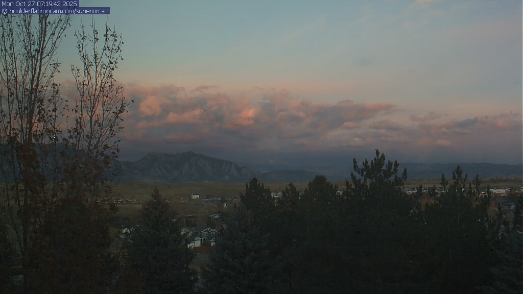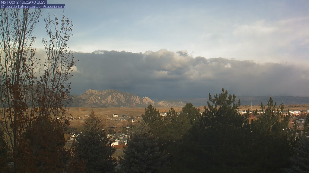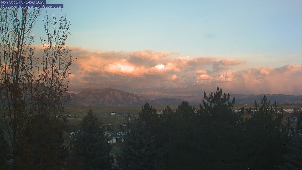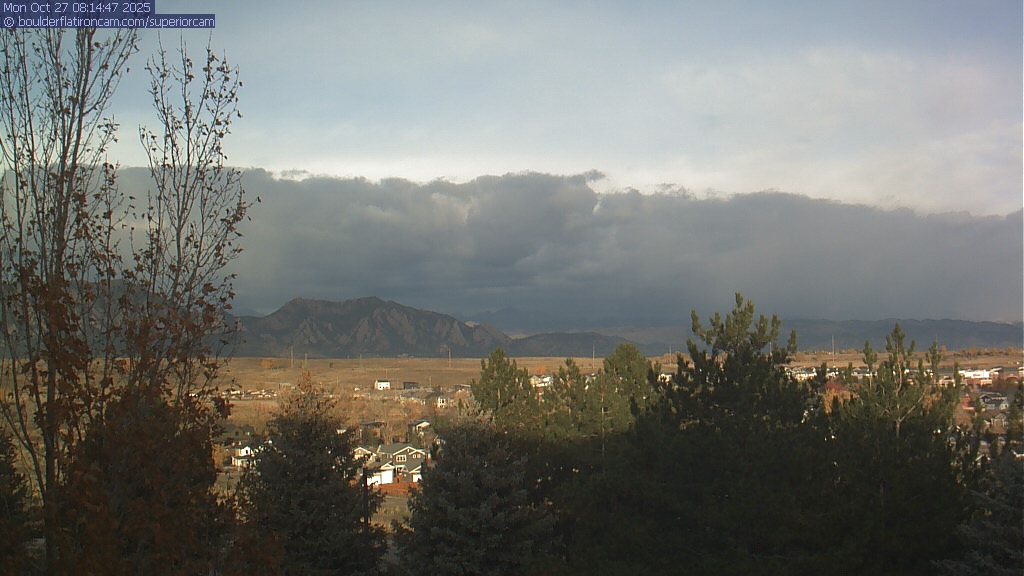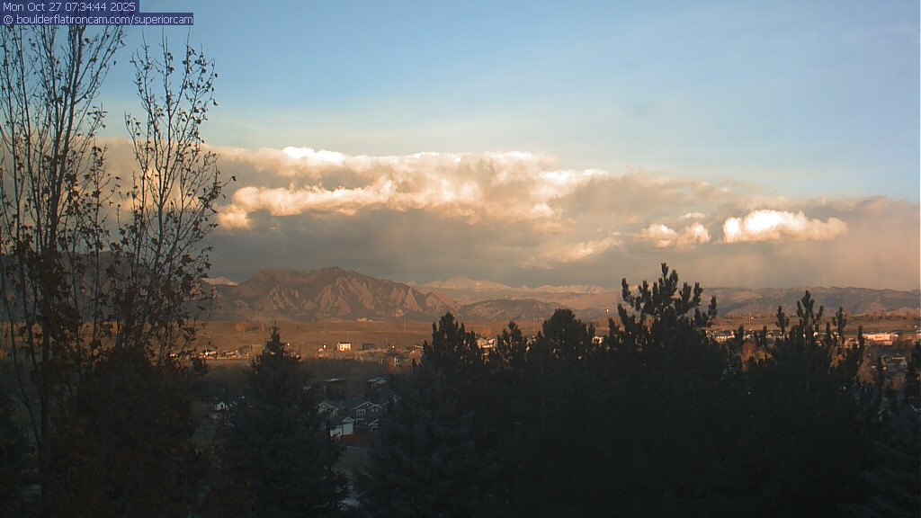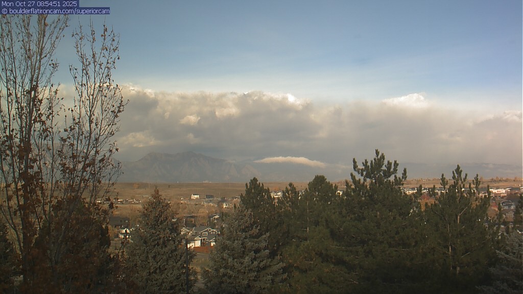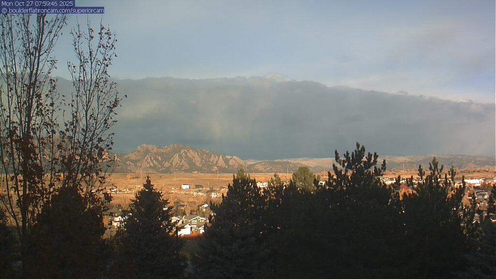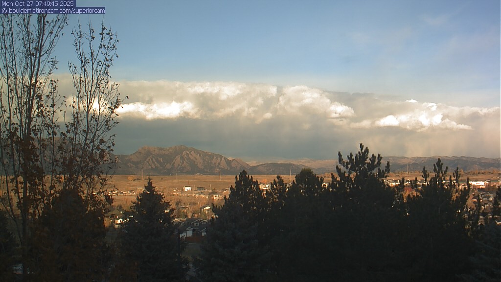 The Superior cam has a great view to the northwest over Boulder, the Flatirons, Indian Peaks and Long’s Peak.   The Coal Creek trail is visible in the foreground with old town Superior.  Thanks to Aweida Venture Partners management for the great view.