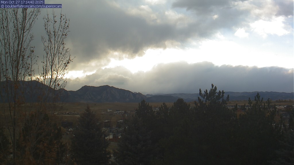 The Superior cam has a great view to the northwest over Boulder, the Flatirons, Indian Peaks and Long’s Peak.   The Coal Creek trail is visible in the foreground with old town Superior.  Thanks to Aweida Venture Partners management for the great view.