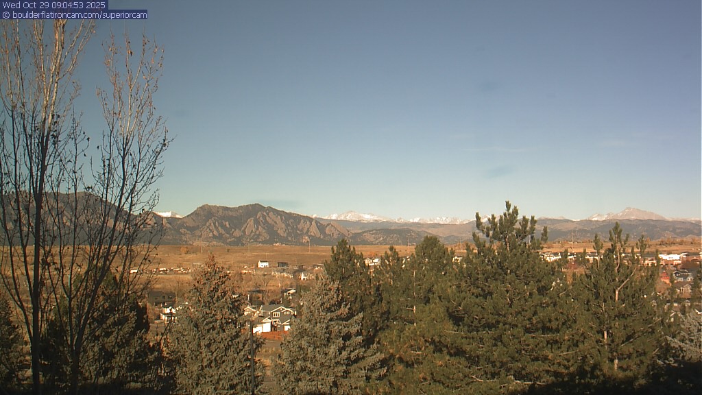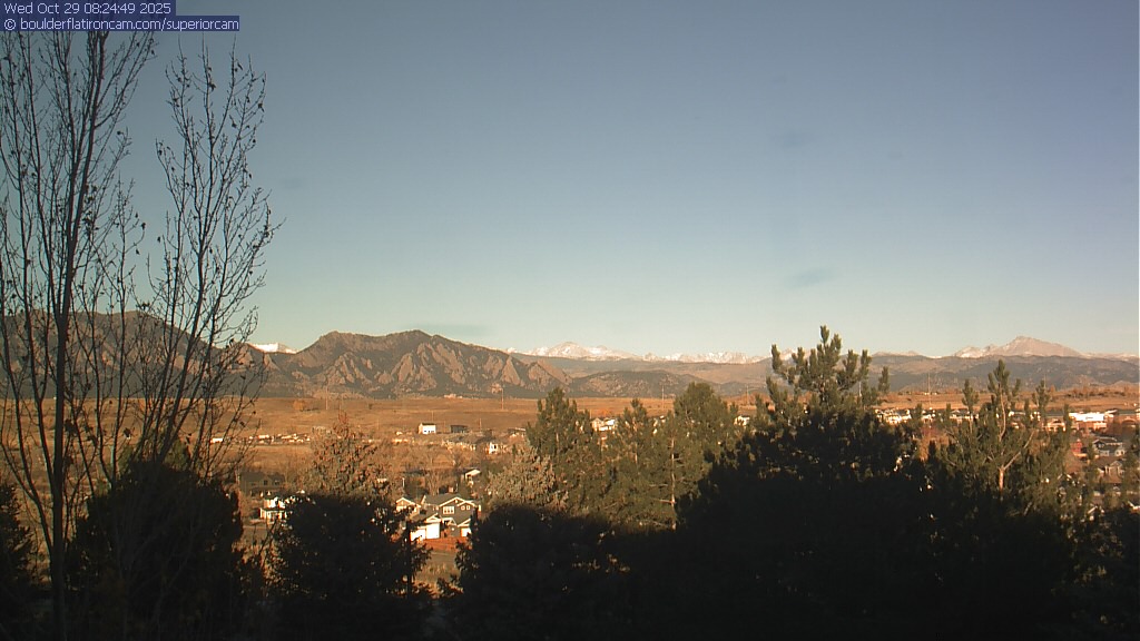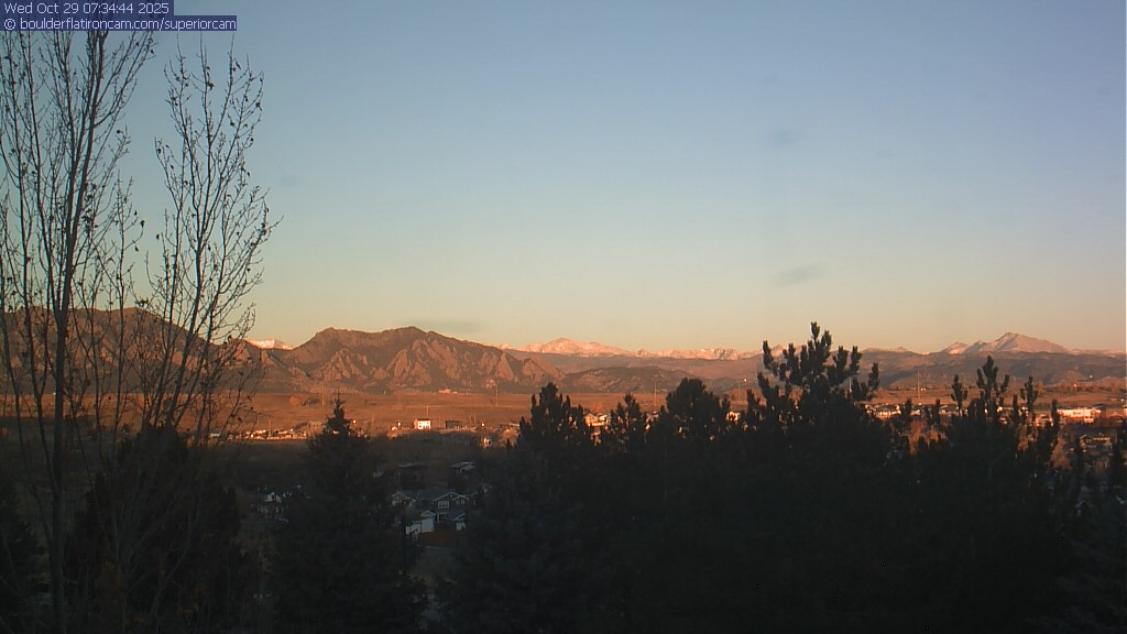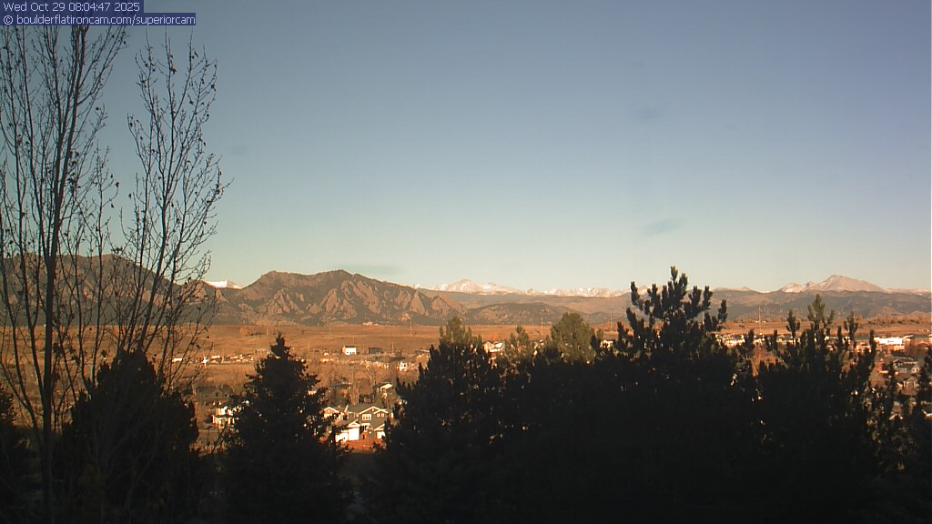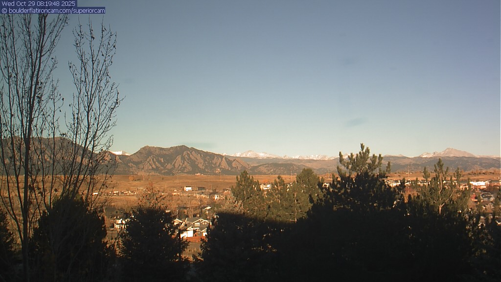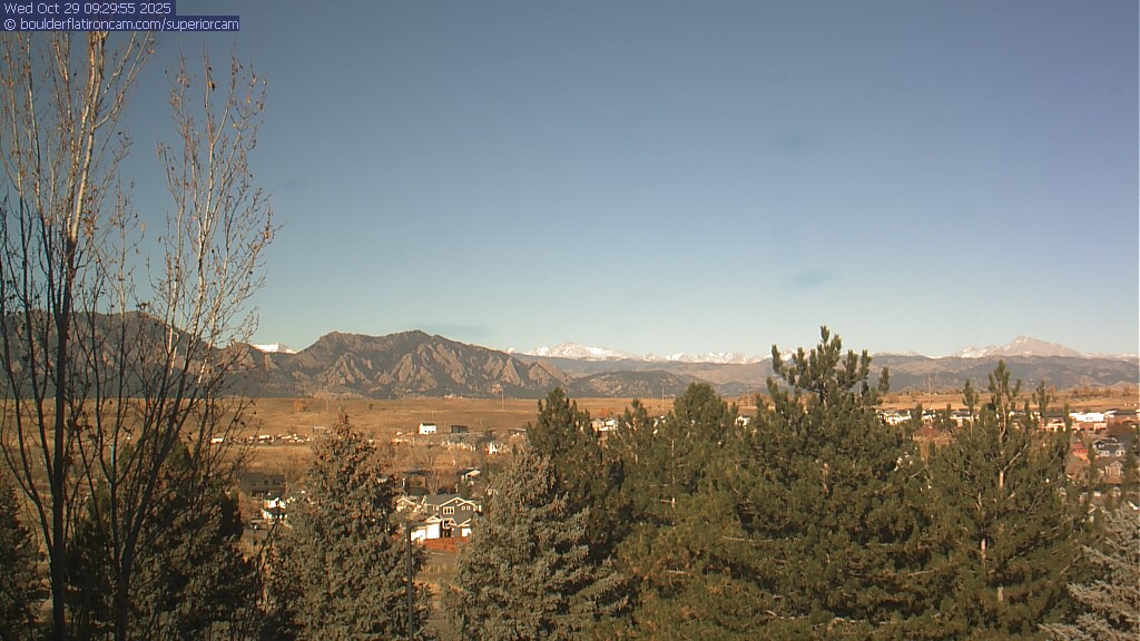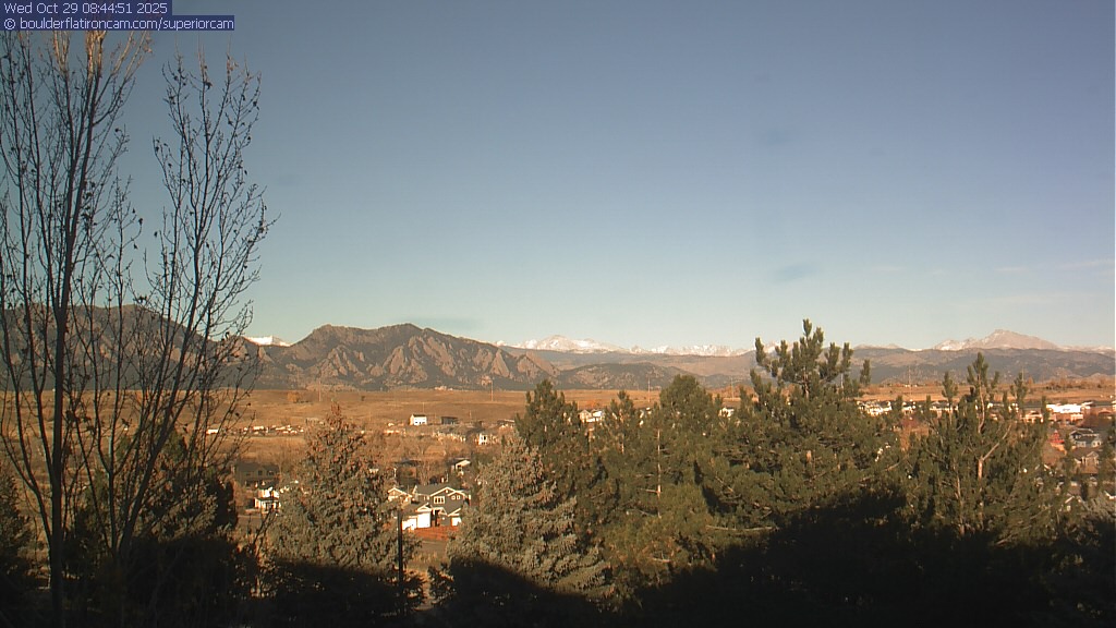 The Superior cam has a great view to the northwest over Boulder, the Flatirons, Indian Peaks and Long’s Peak.   The Coal Creek trail is visible in the foreground with old town Superior.  Thanks to Aweida Venture Partners management for the great view.
