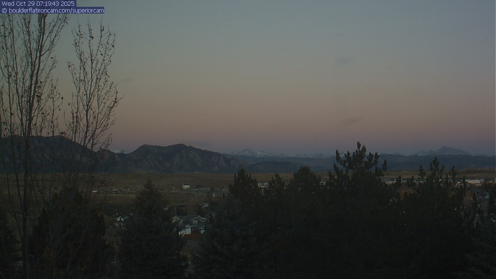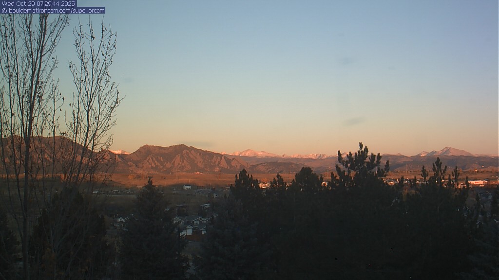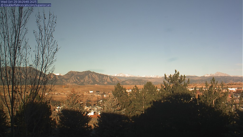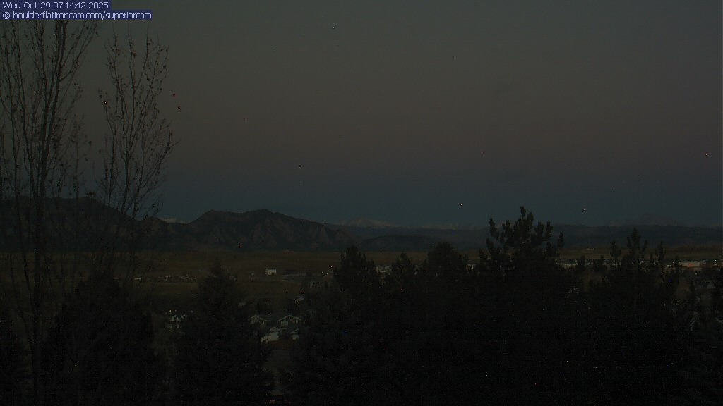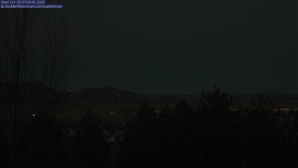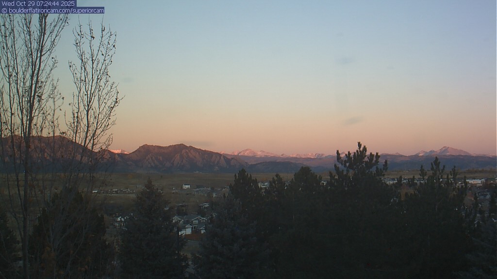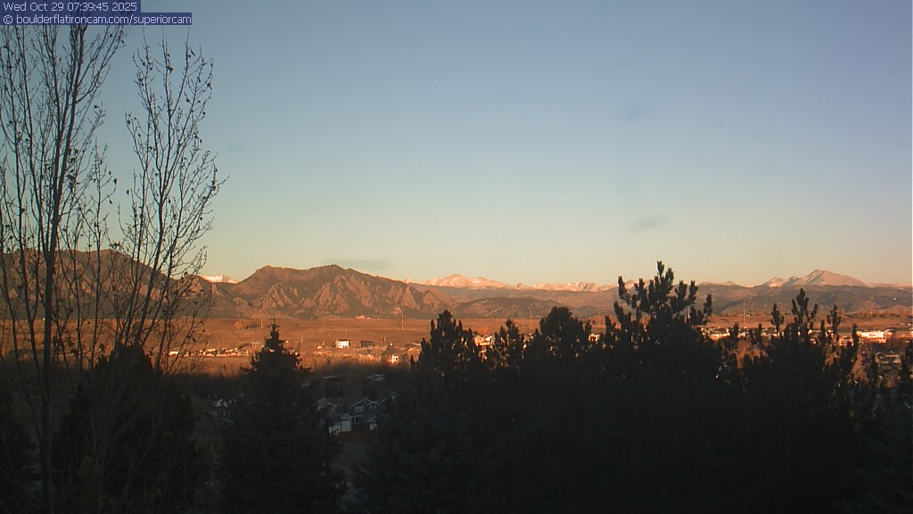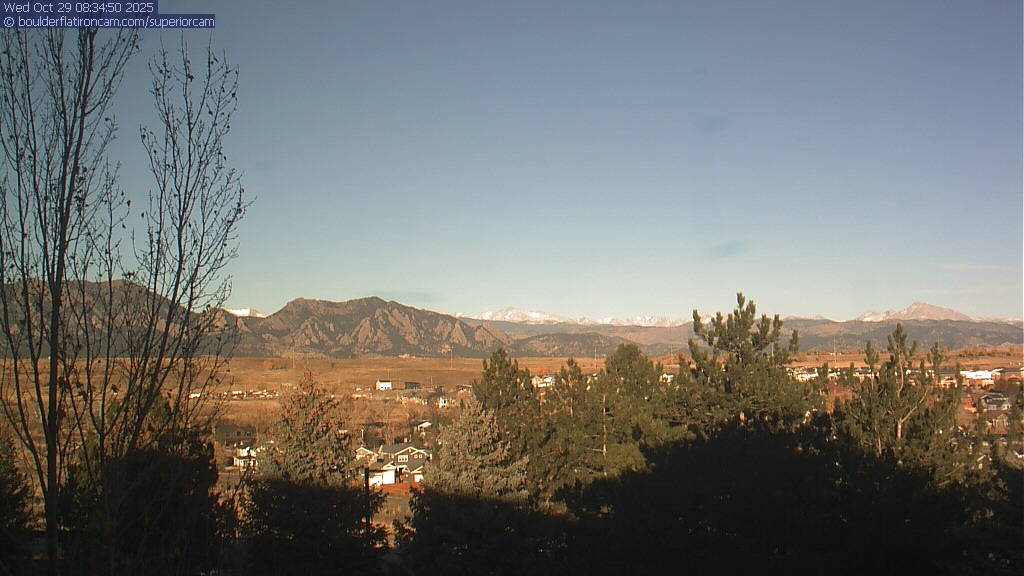 The Superior cam has a great view to the northwest over Boulder, the Flatirons, Indian Peaks and Long’s Peak.   The Coal Creek trail is visible in the foreground with old town Superior.  Thanks to Aweida Venture Partners management for the great view.