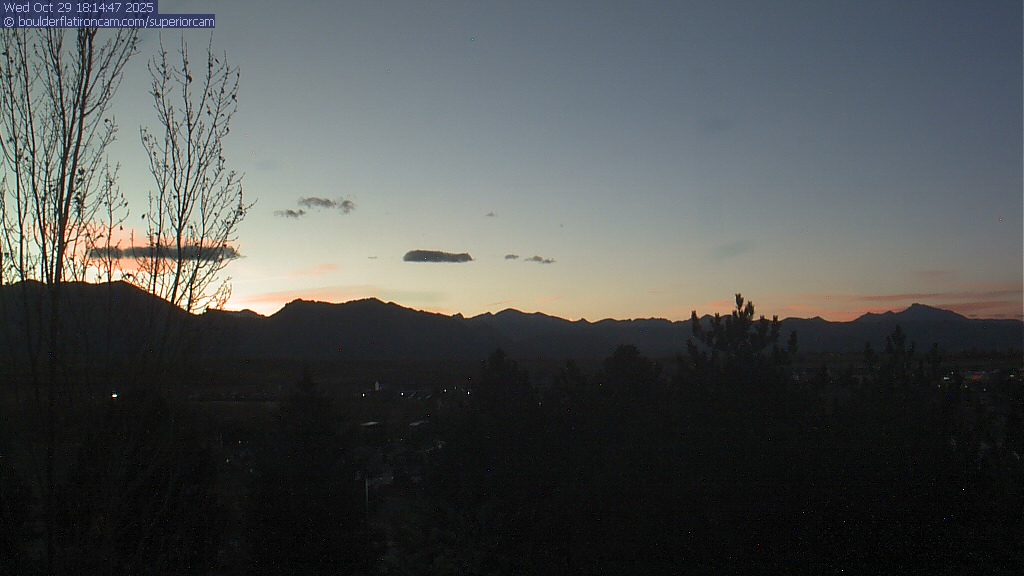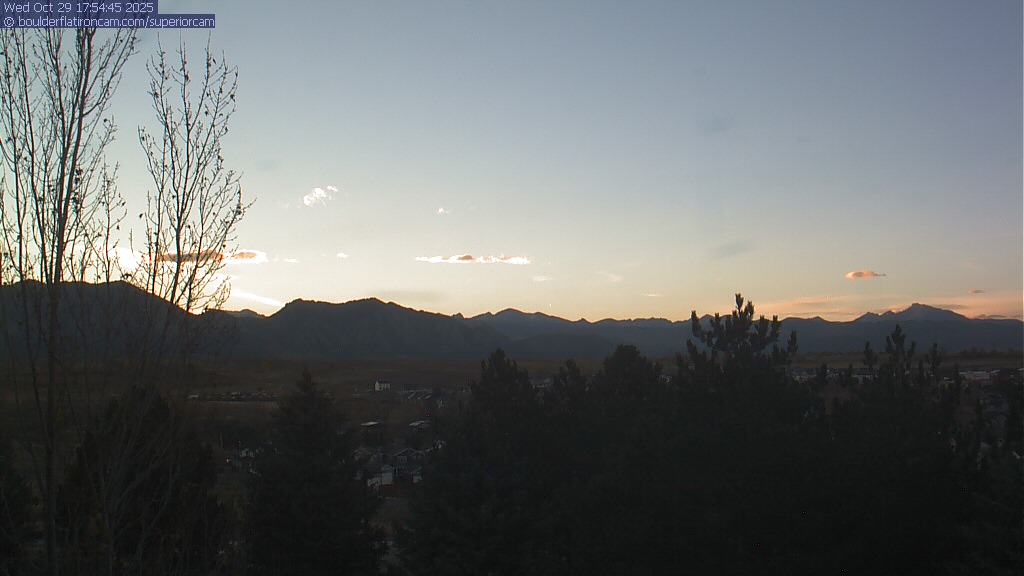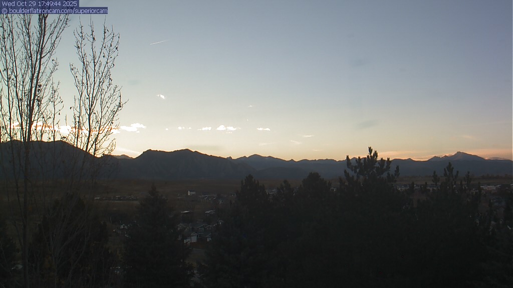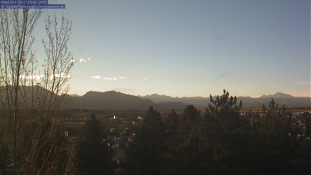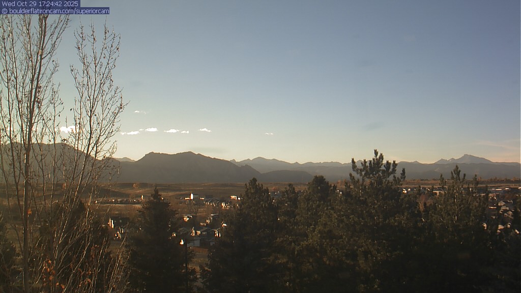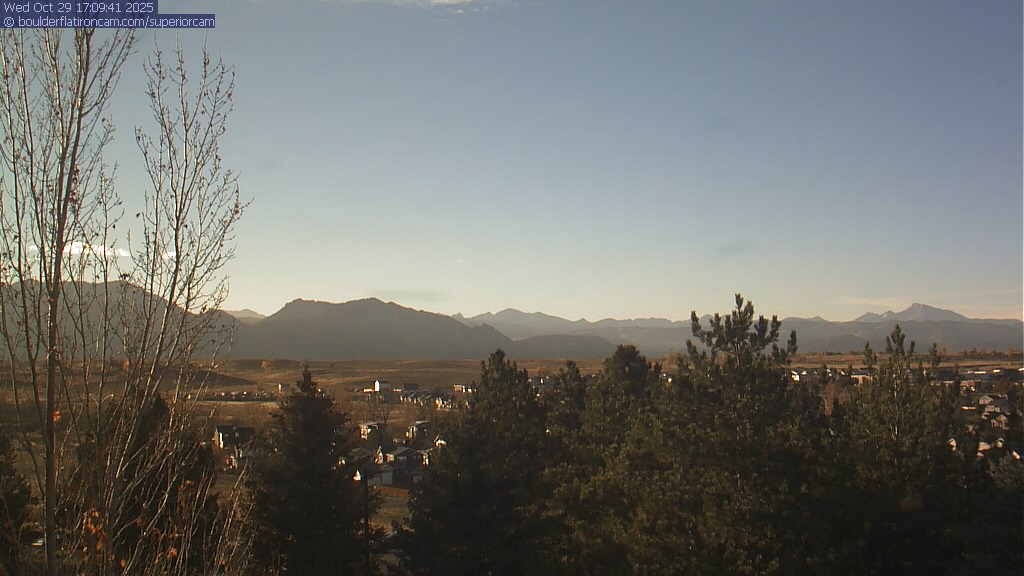 The Superior cam has a great view to the northwest over Boulder, the Flatirons, Indian Peaks and Long’s Peak.   The Coal Creek trail is visible in the foreground with old town Superior.  Thanks to Aweida Venture Partners management for the great view.
