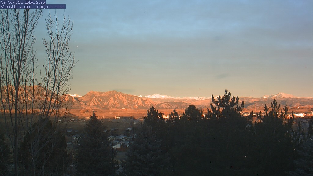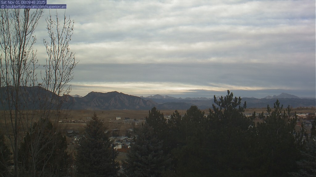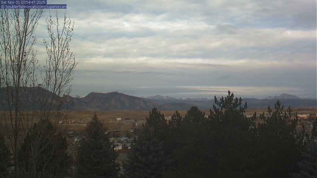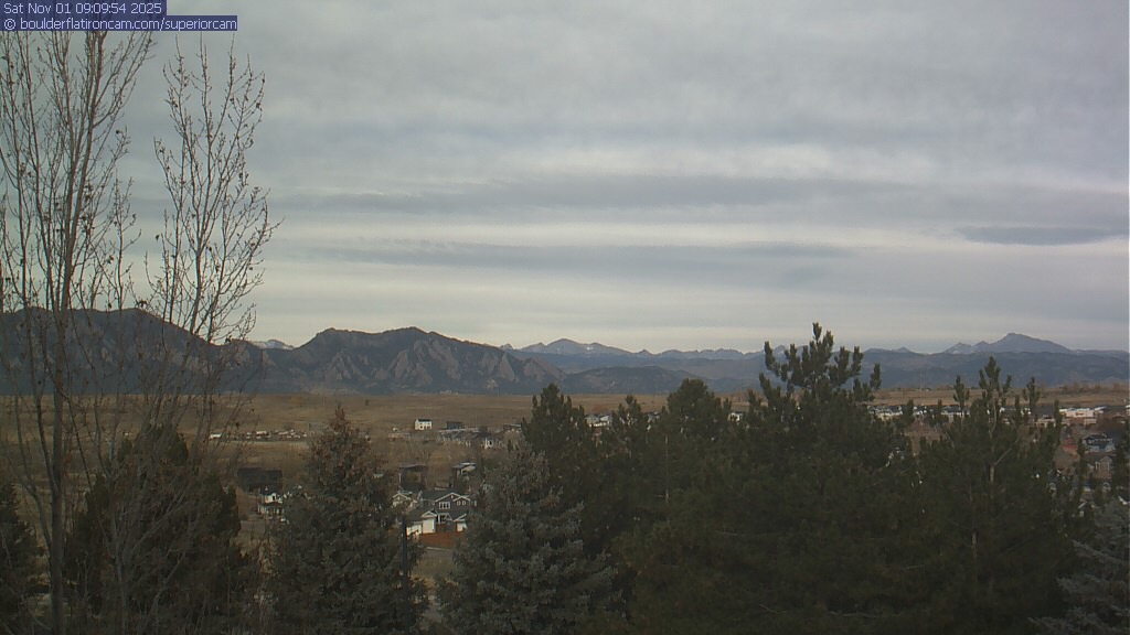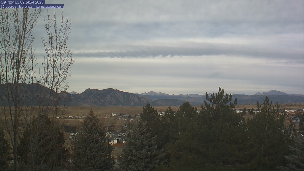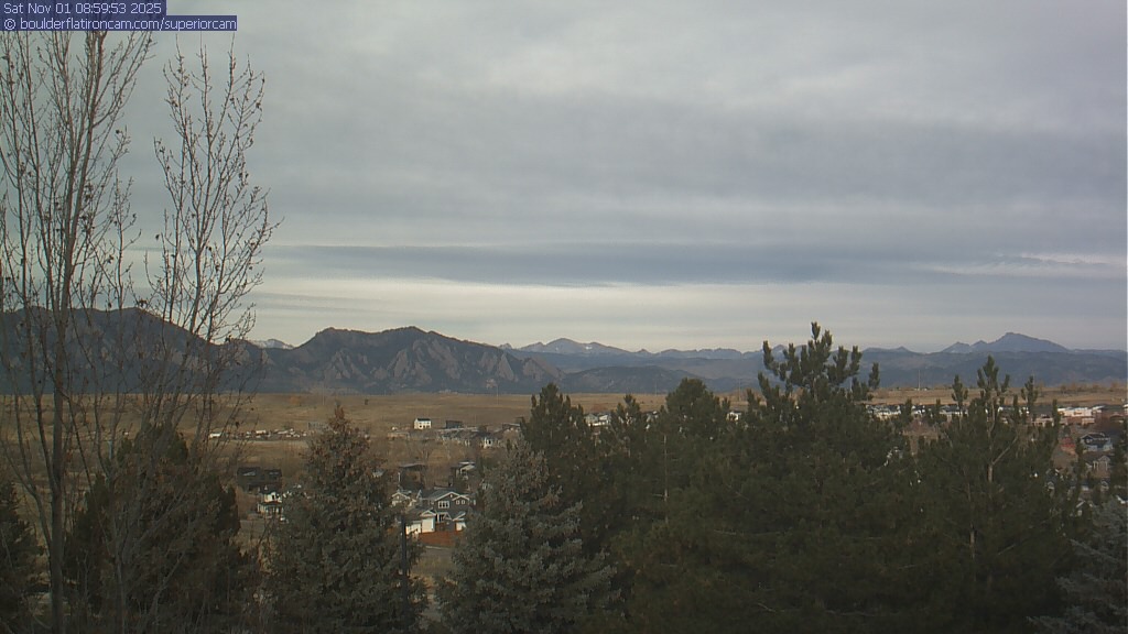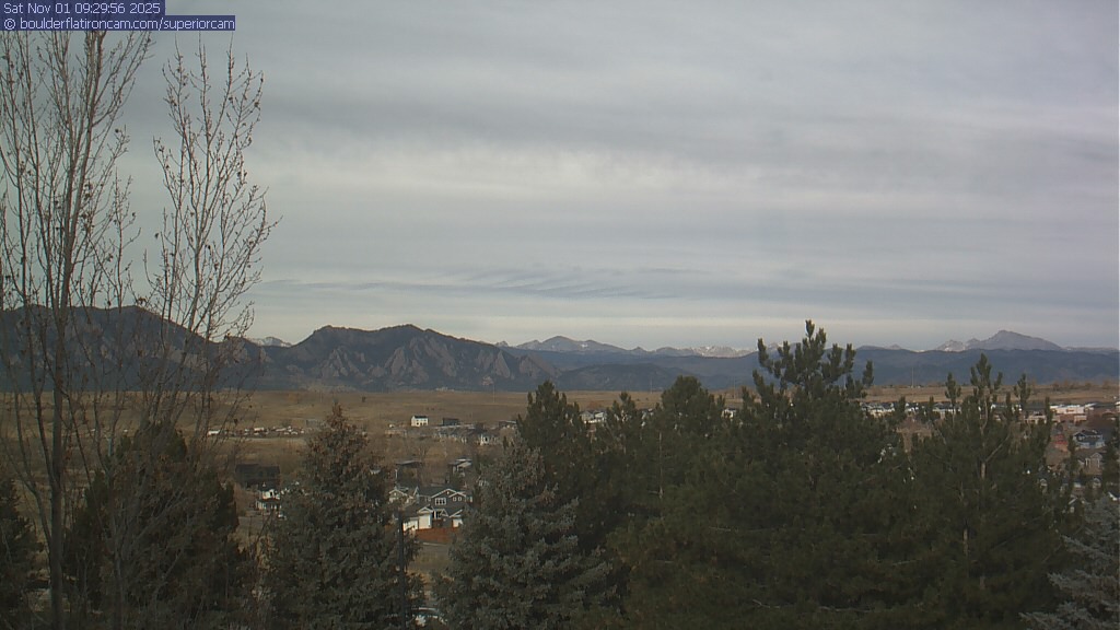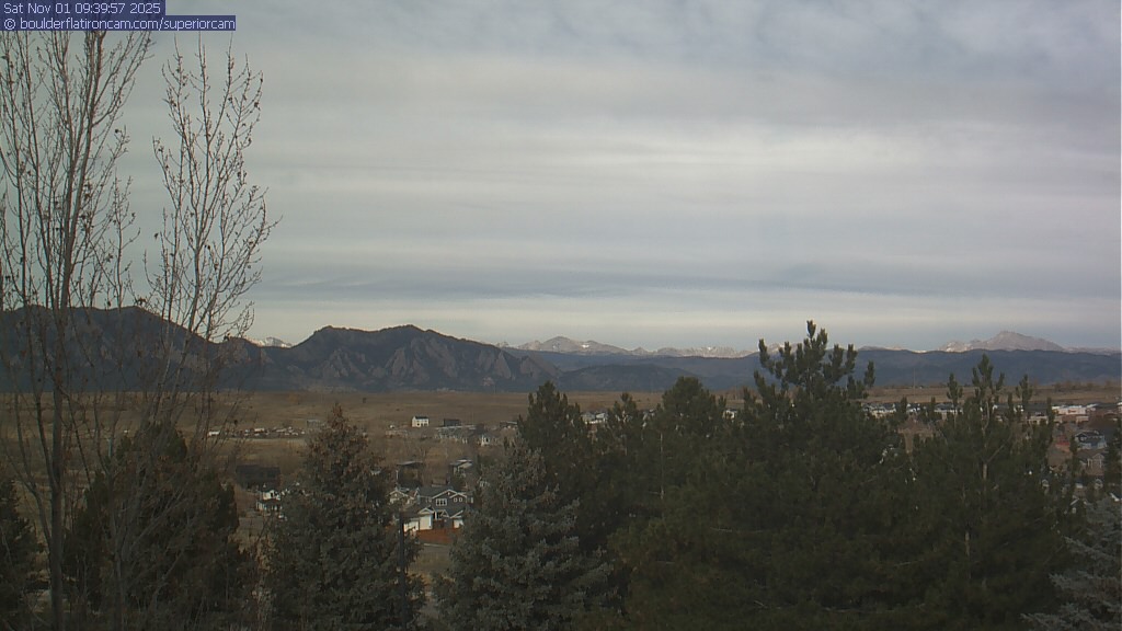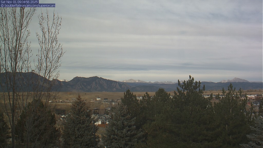 The Superior cam has a great view to the northwest over Boulder, the Flatirons, Indian Peaks and Long’s Peak.   The Coal Creek trail is visible in the foreground with old town Superior.  Thanks to Aweida Venture Partners management for the great view.