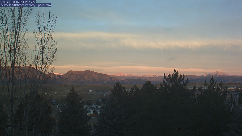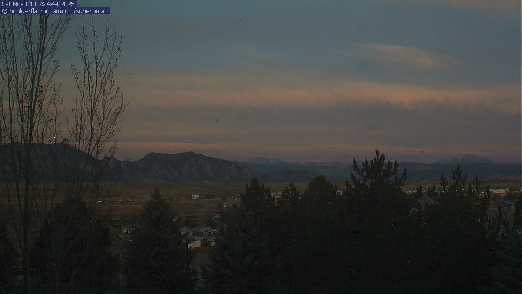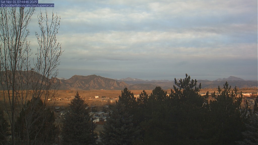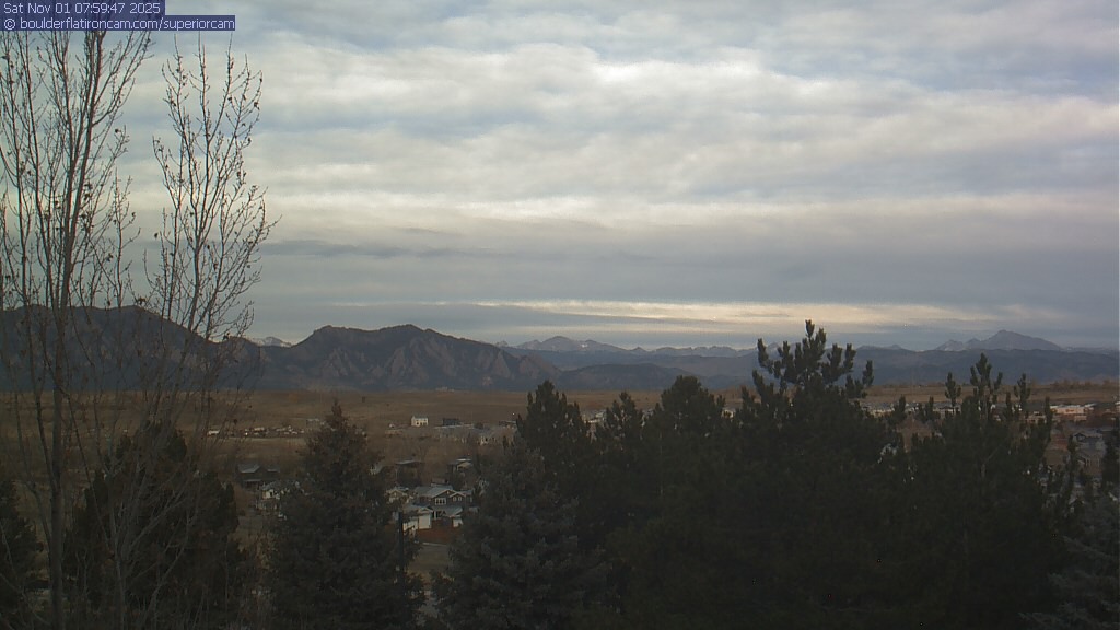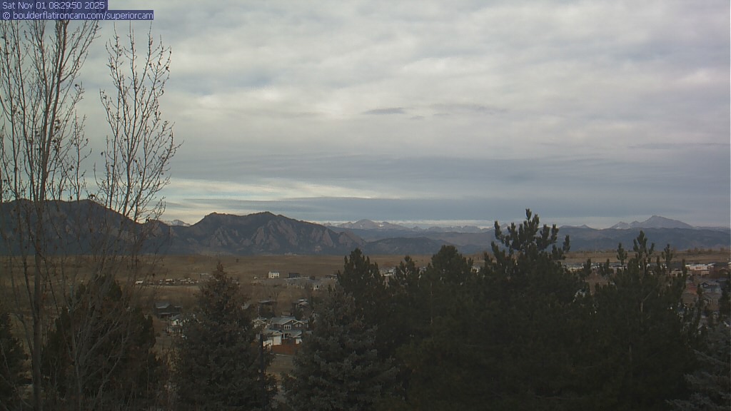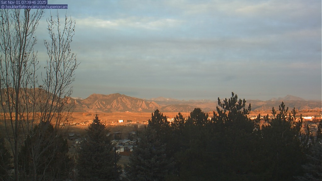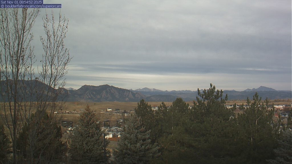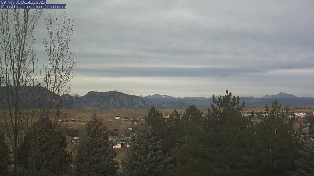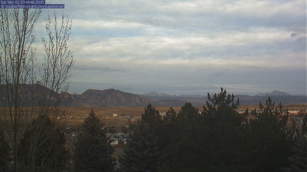 The Superior cam has a great view to the northwest over Boulder, the Flatirons, Indian Peaks and Long’s Peak.   The Coal Creek trail is visible in the foreground with old town Superior.  Thanks to Aweida Venture Partners management for the great view.
