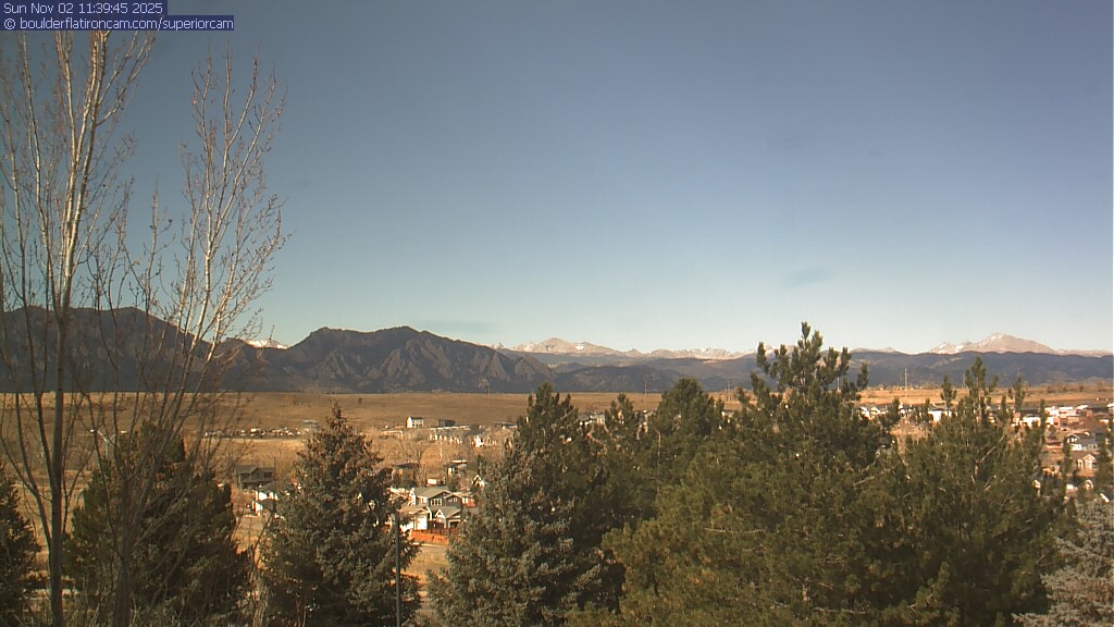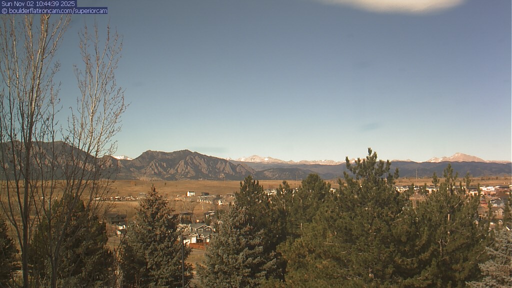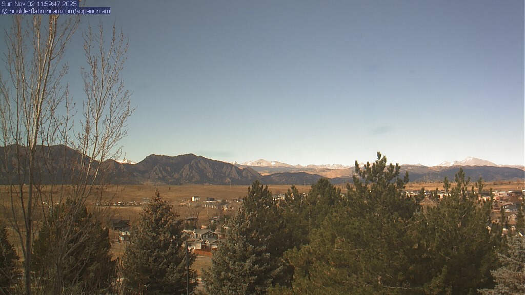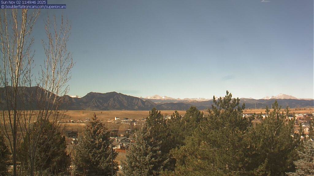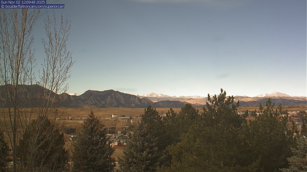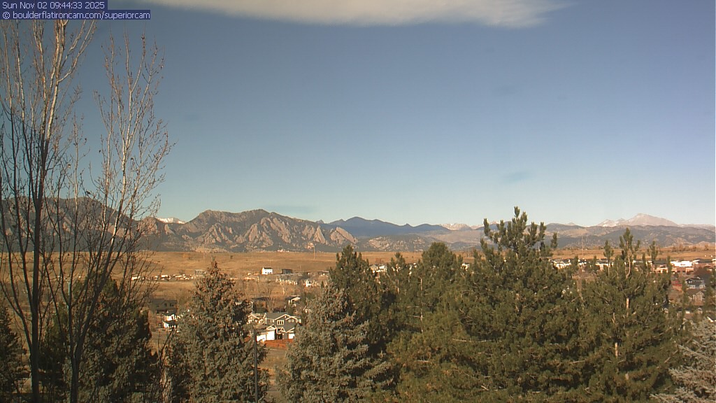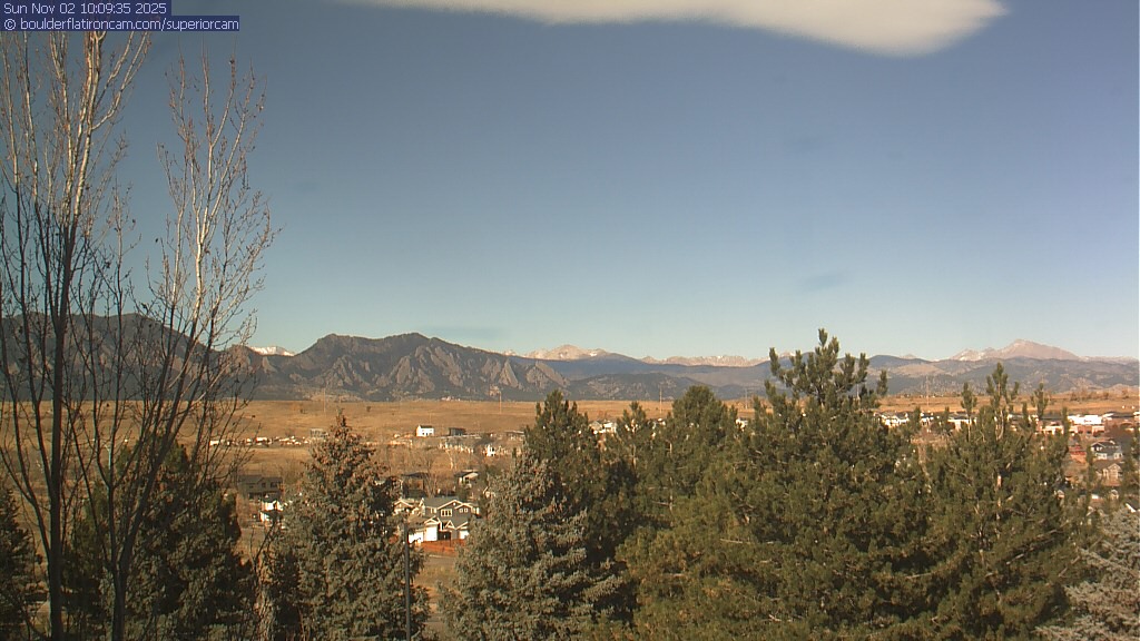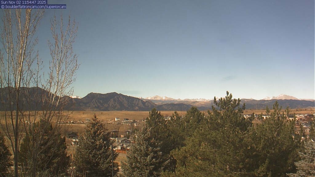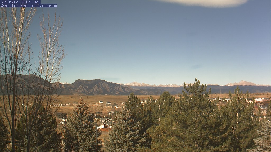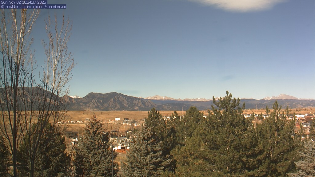 The Superior cam has a great view to the northwest over Boulder, the Flatirons, Indian Peaks and Long’s Peak.   The Coal Creek trail is visible in the foreground with old town Superior.  Thanks to Aweida Venture Partners management for the great view.