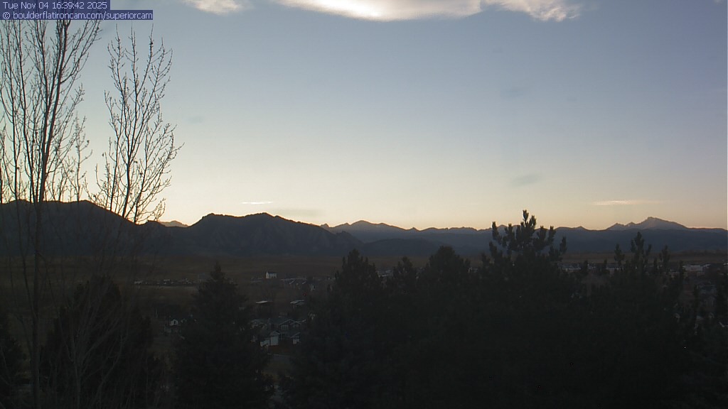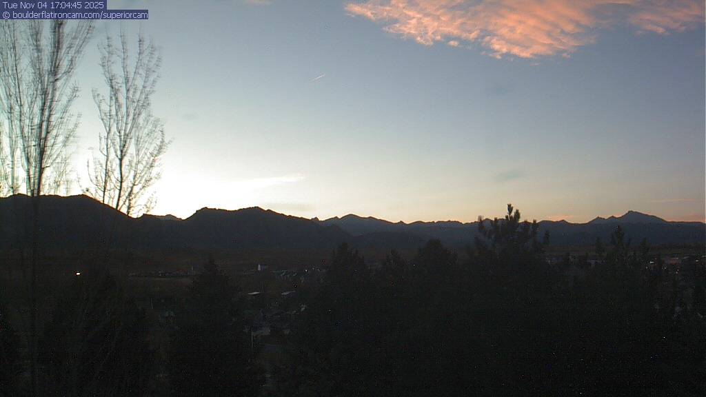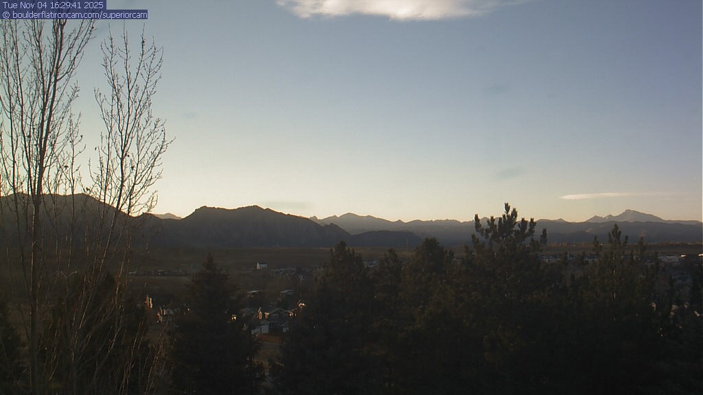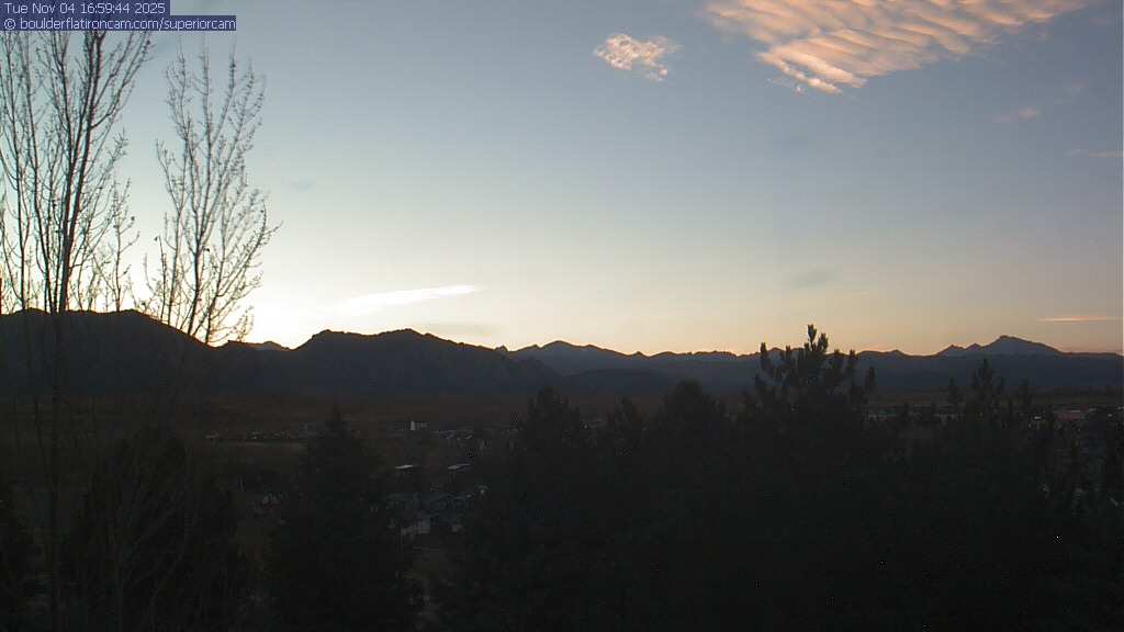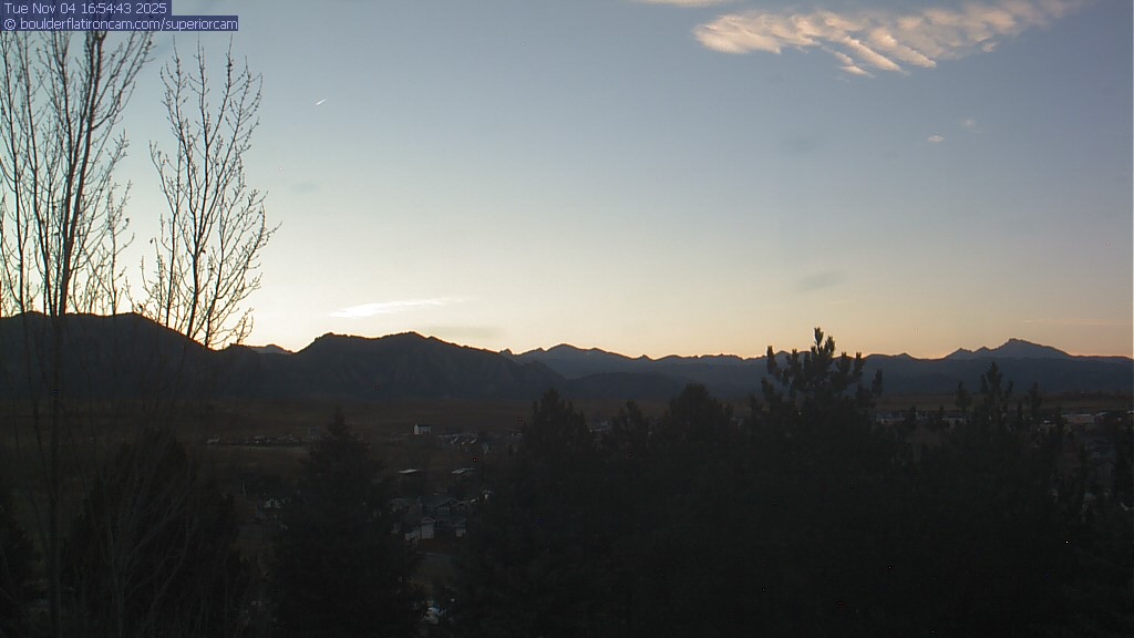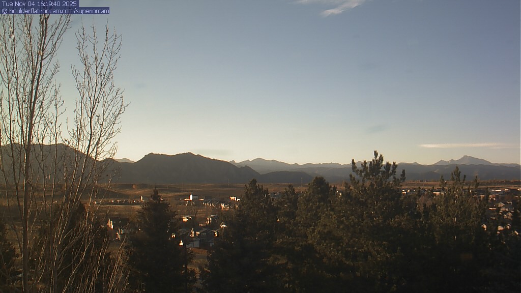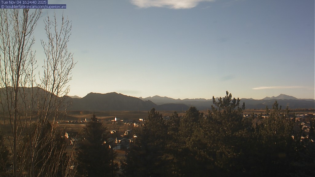 The Superior cam has a great view to the northwest over Boulder, the Flatirons, Indian Peaks and Long’s Peak.   The Coal Creek trail is visible in the foreground with old town Superior.  Thanks to Aweida Venture Partners management for the great view.