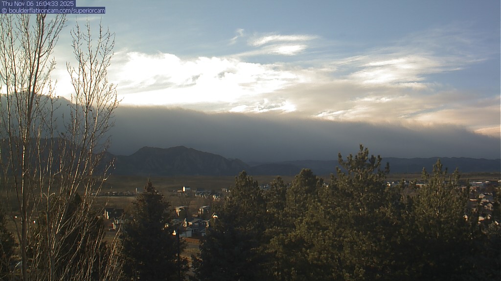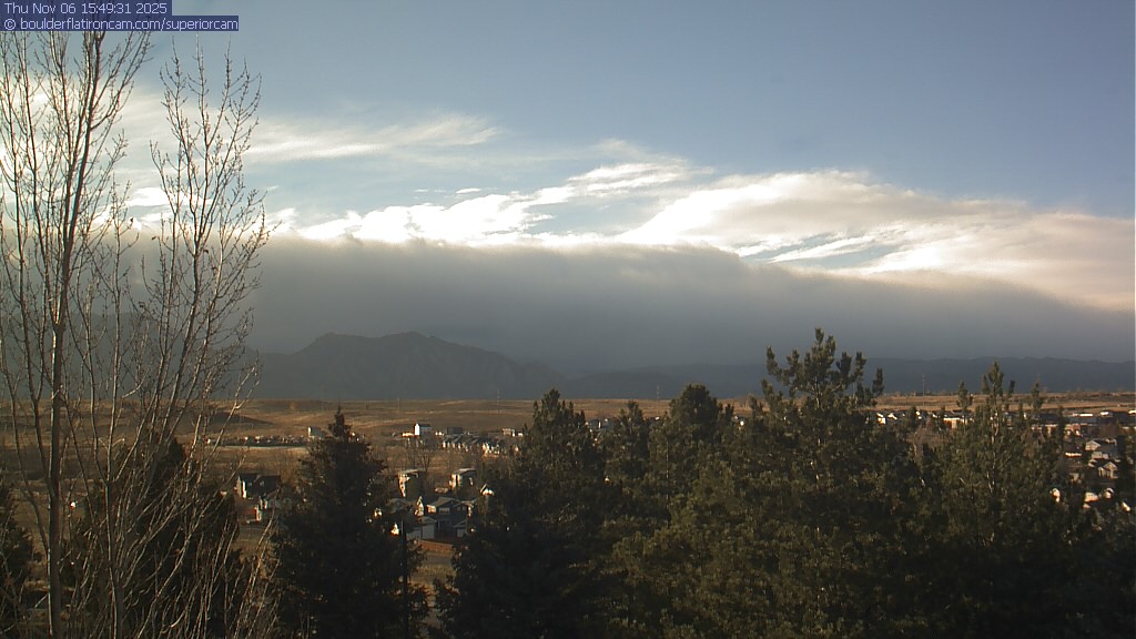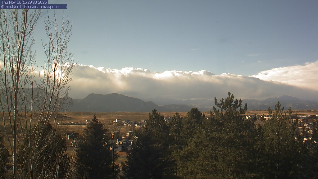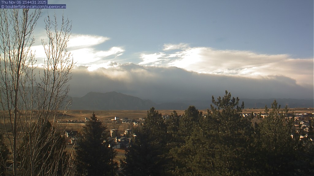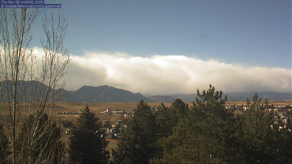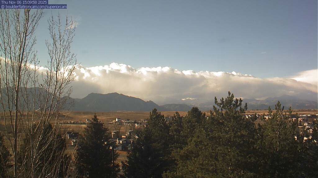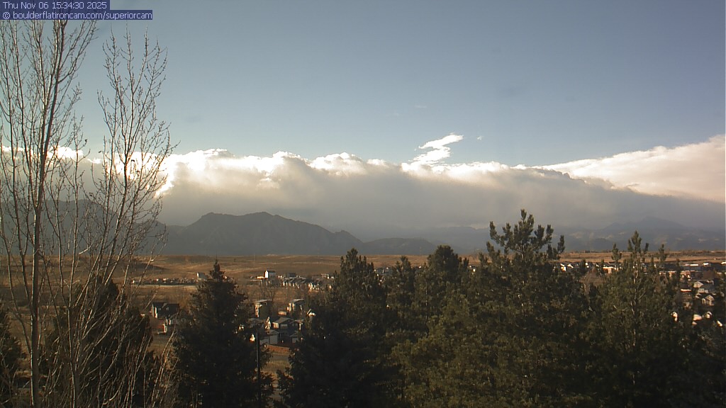 The Superior cam has a great view to the northwest over Boulder, the Flatirons, Indian Peaks and Long’s Peak.   The Coal Creek trail is visible in the foreground with old town Superior.  Thanks to Aweida Venture Partners management for the great view.
