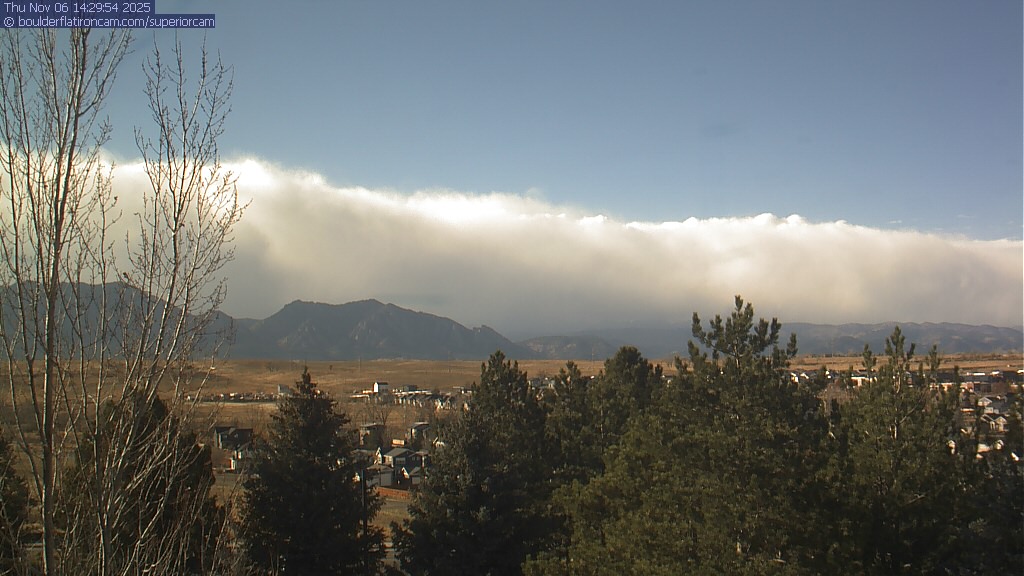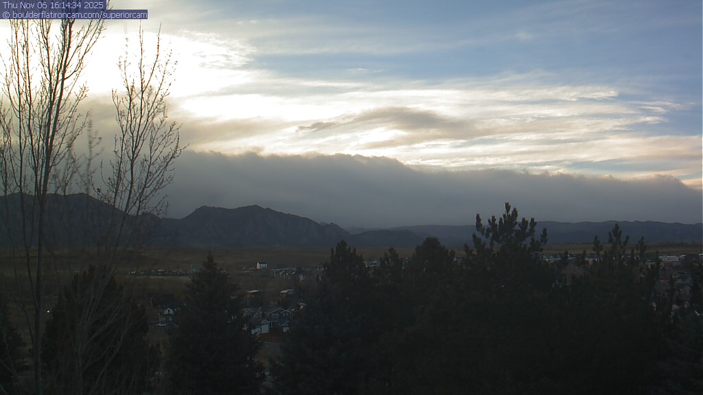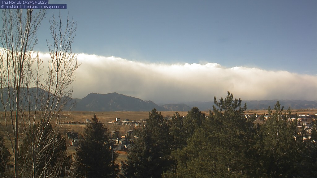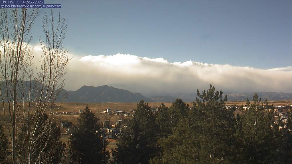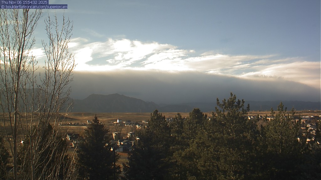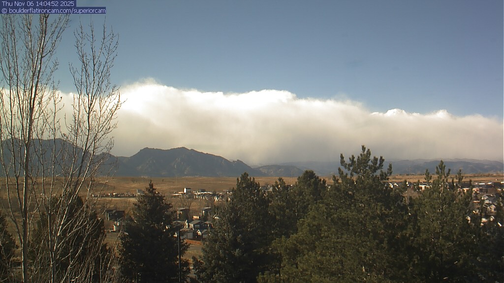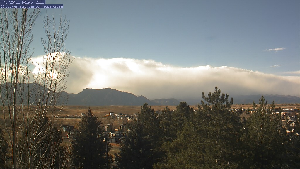 The Superior cam has a great view to the northwest over Boulder, the Flatirons, Indian Peaks and Long’s Peak.   The Coal Creek trail is visible in the foreground with old town Superior.  Thanks to Aweida Venture Partners management for the great view.