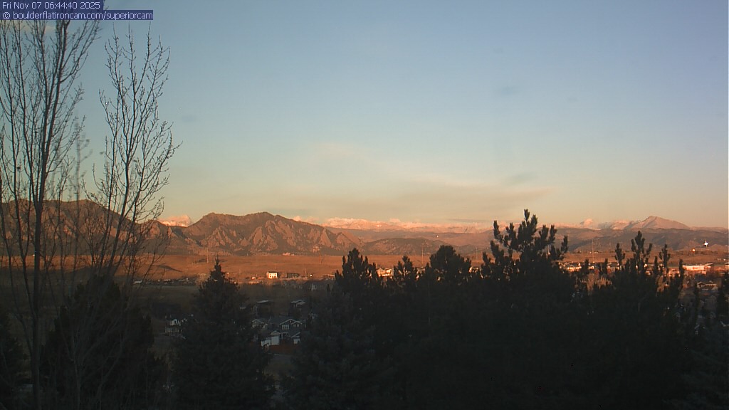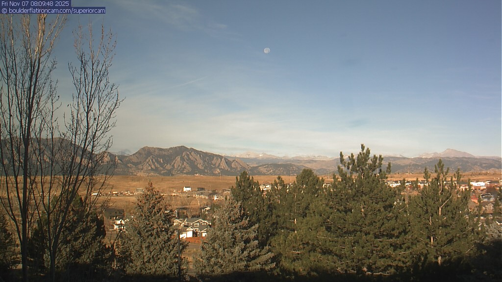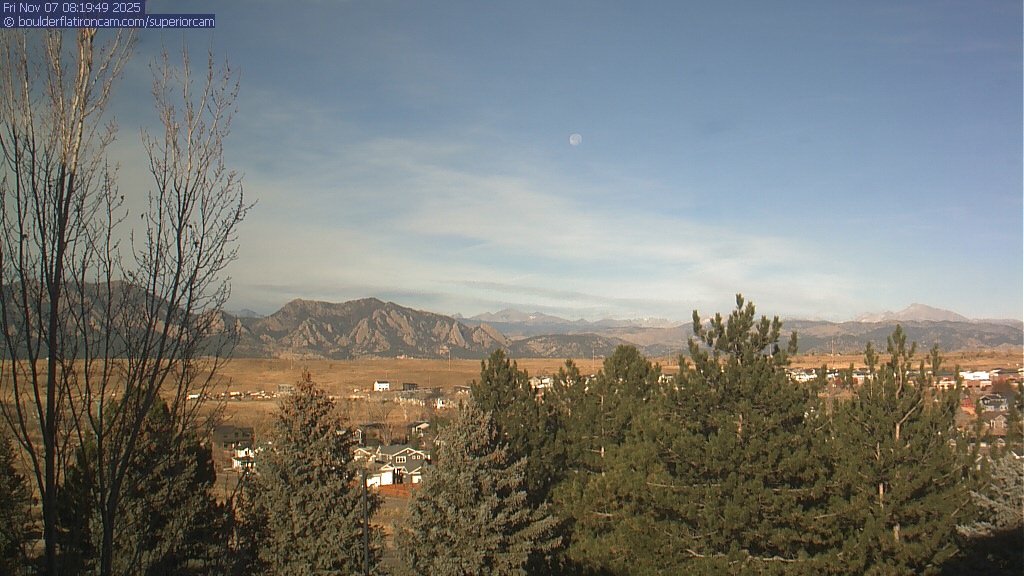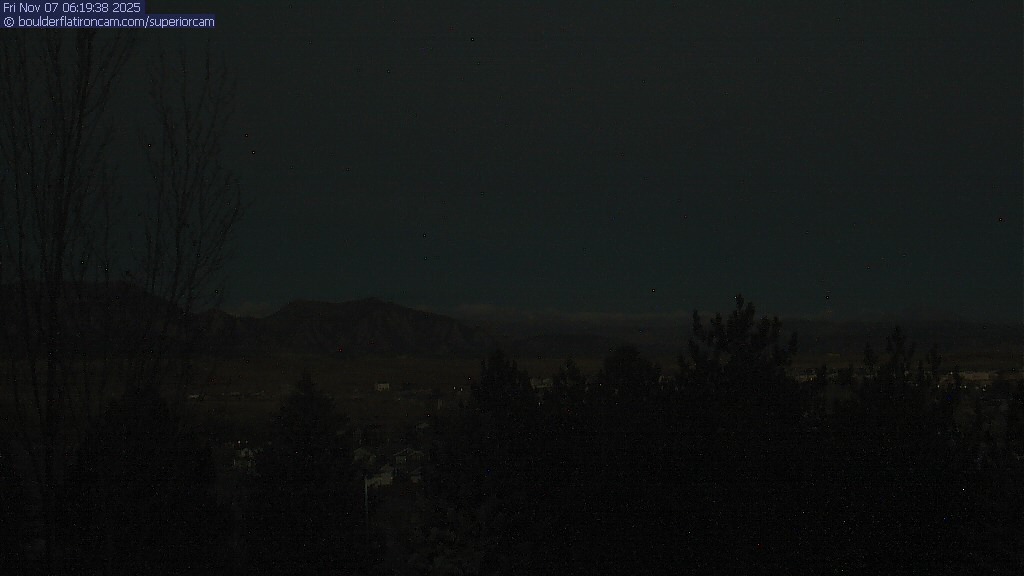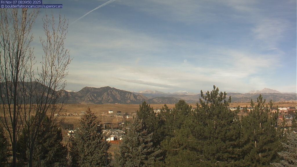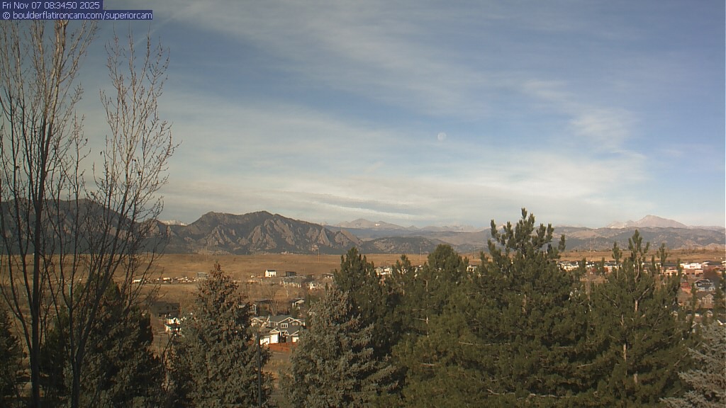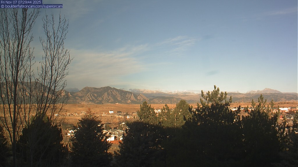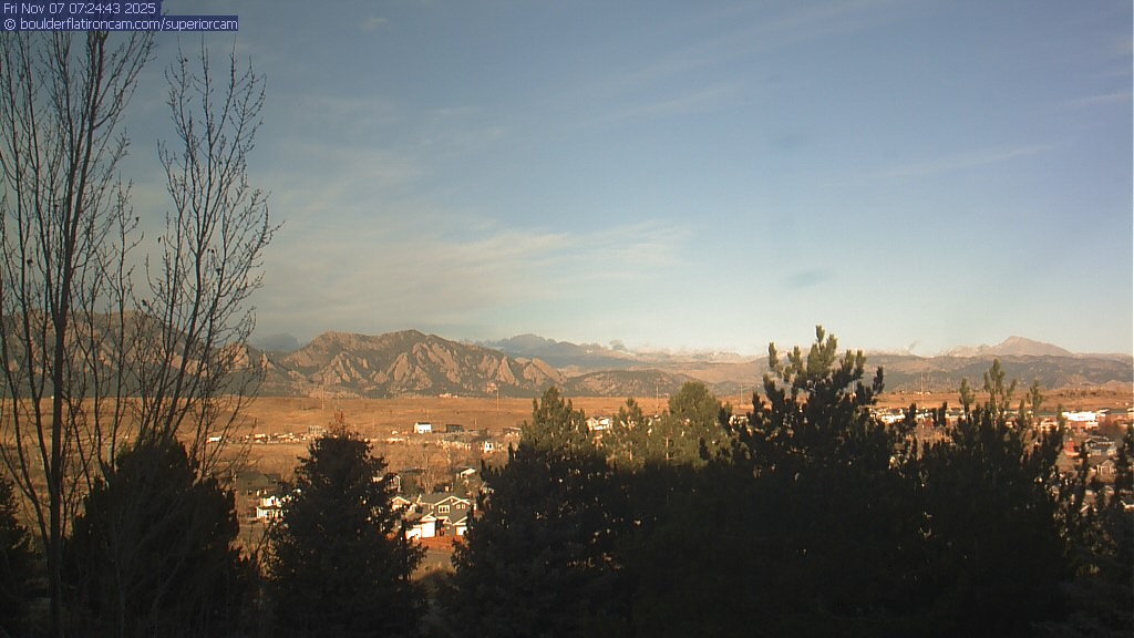 The Superior cam has a great view to the northwest over Boulder, the Flatirons, Indian Peaks and Long’s Peak.   The Coal Creek trail is visible in the foreground with old town Superior.  Thanks to Aweida Venture Partners management for the great view.
