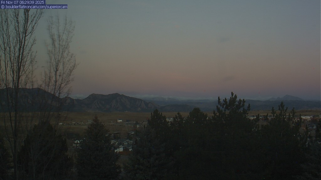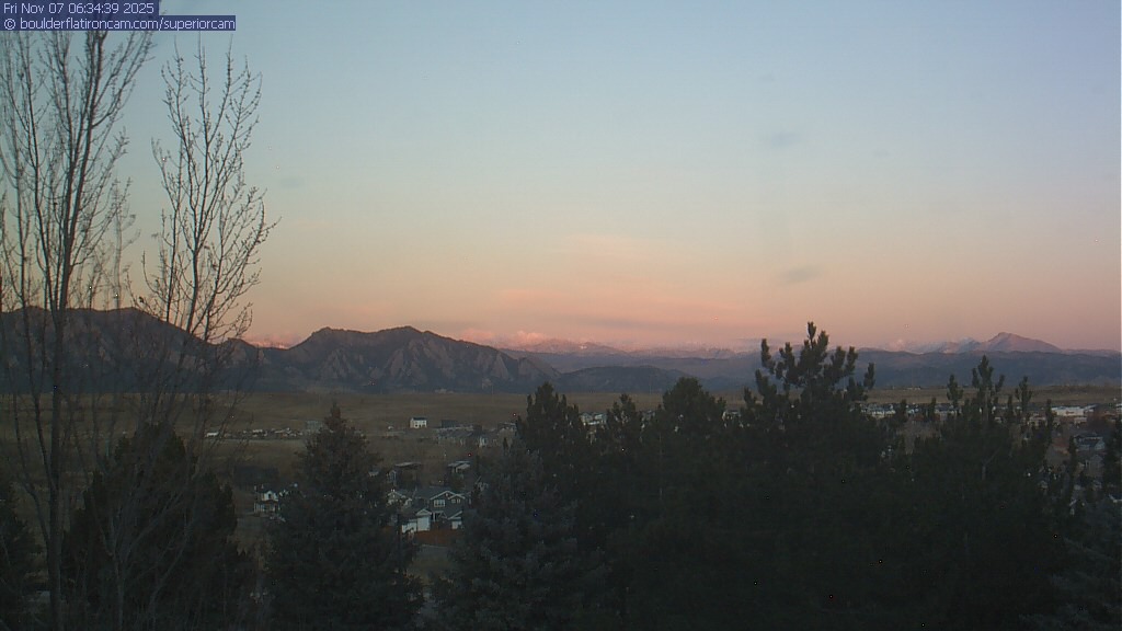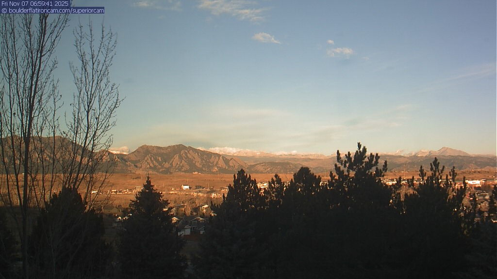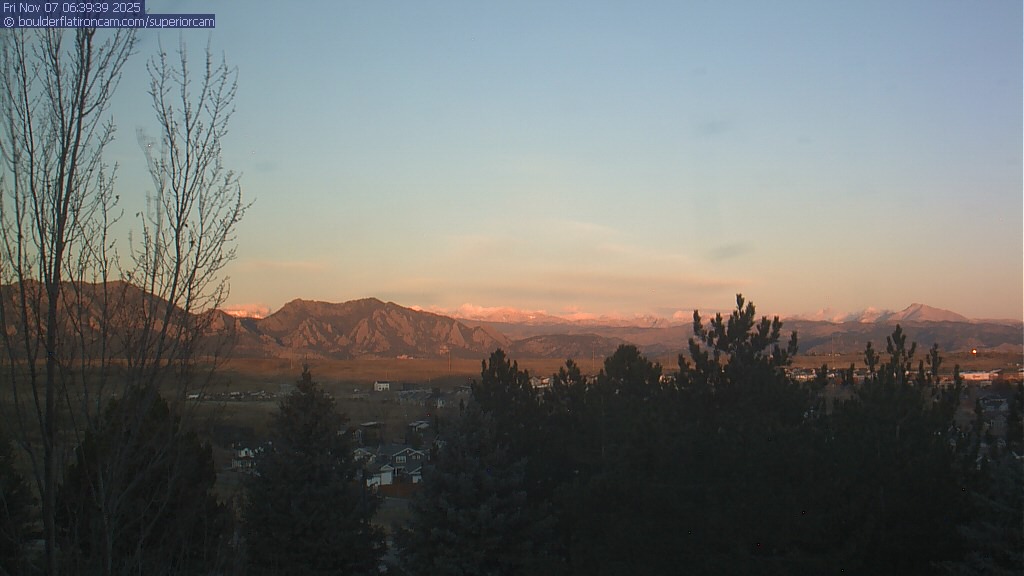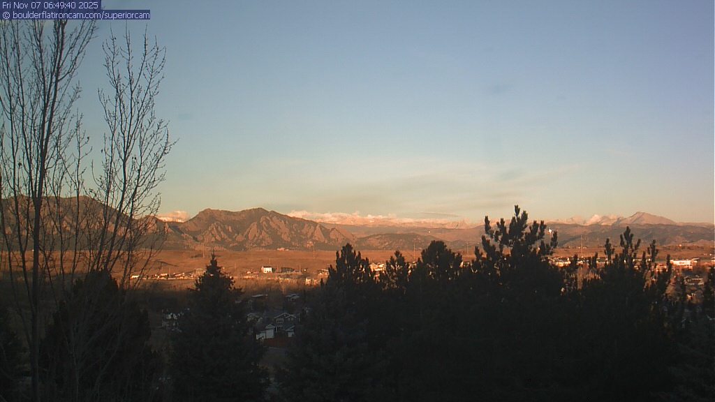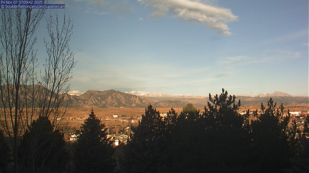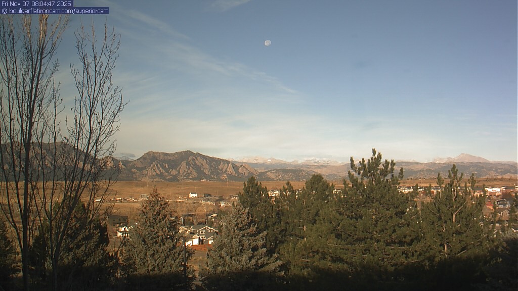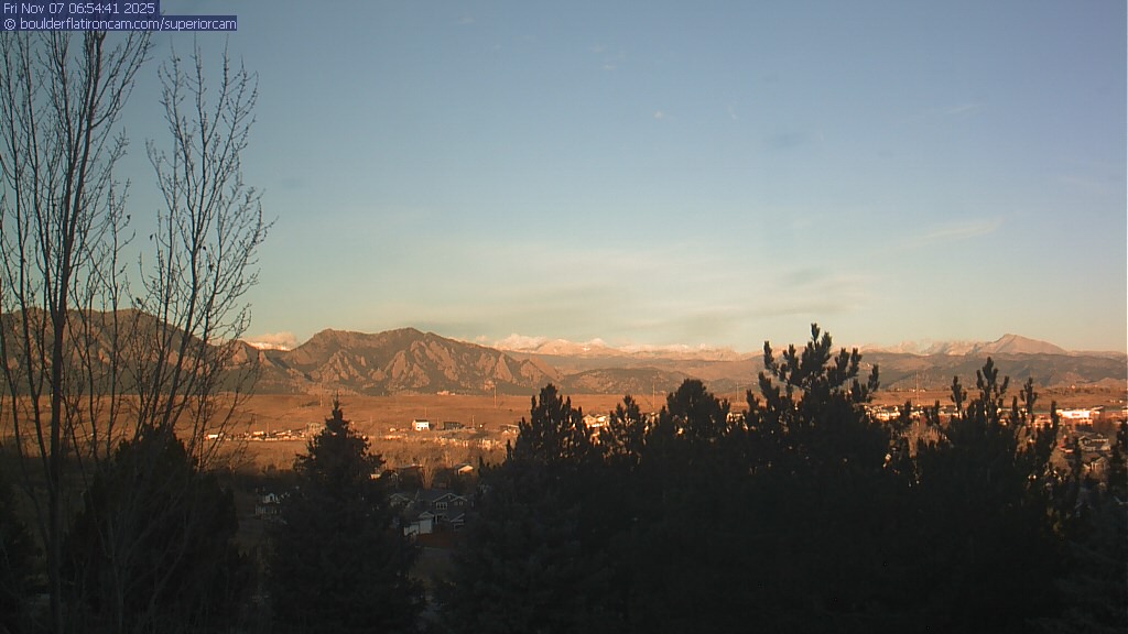 The Superior cam has a great view to the northwest over Boulder, the Flatirons, Indian Peaks and Long’s Peak.   The Coal Creek trail is visible in the foreground with old town Superior.  Thanks to Aweida Venture Partners management for the great view.