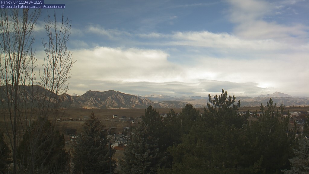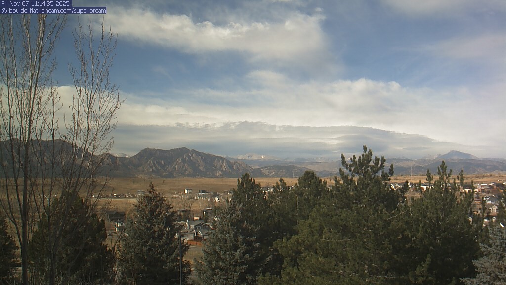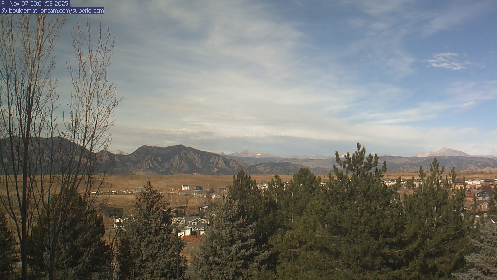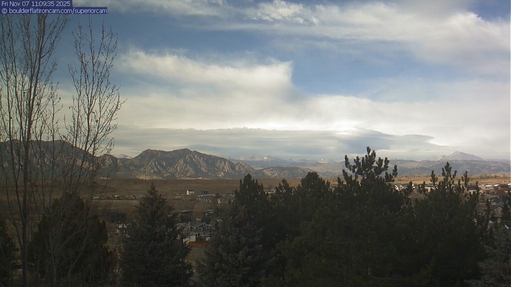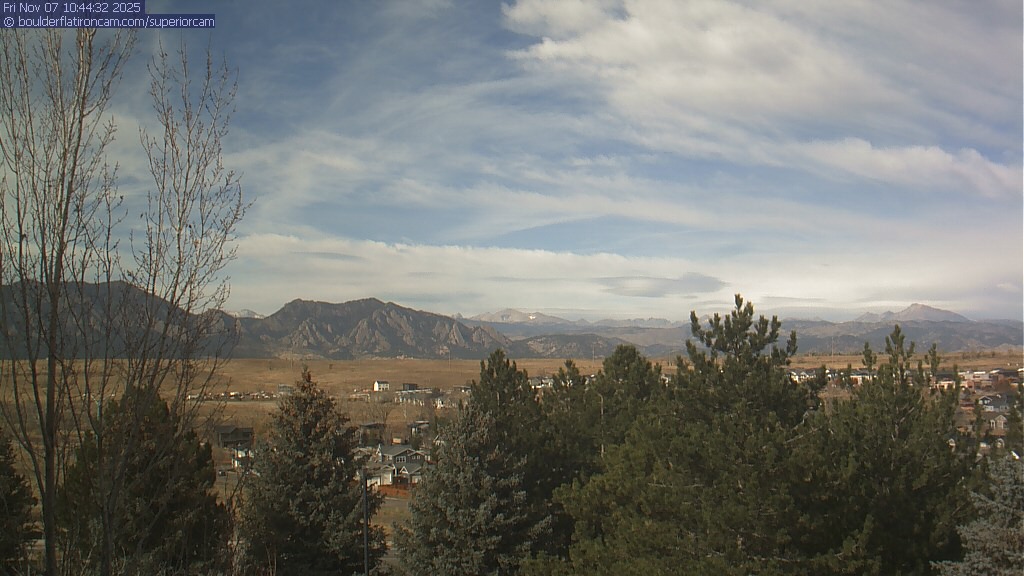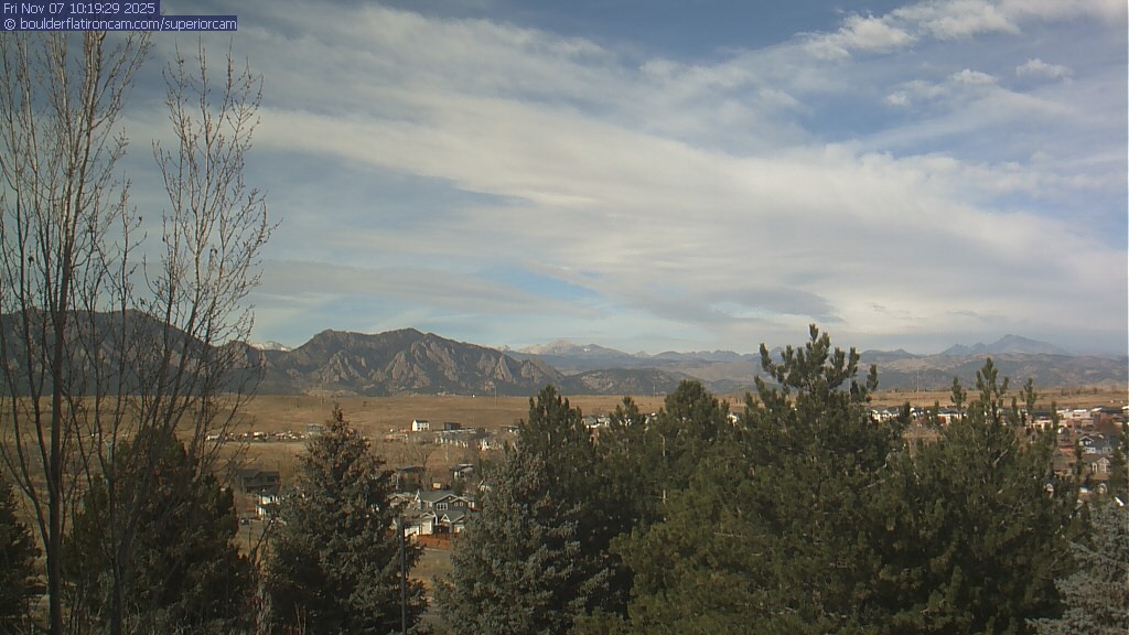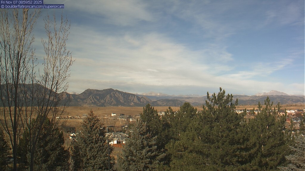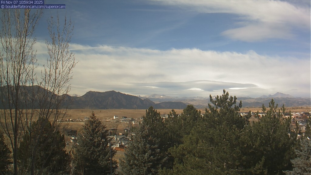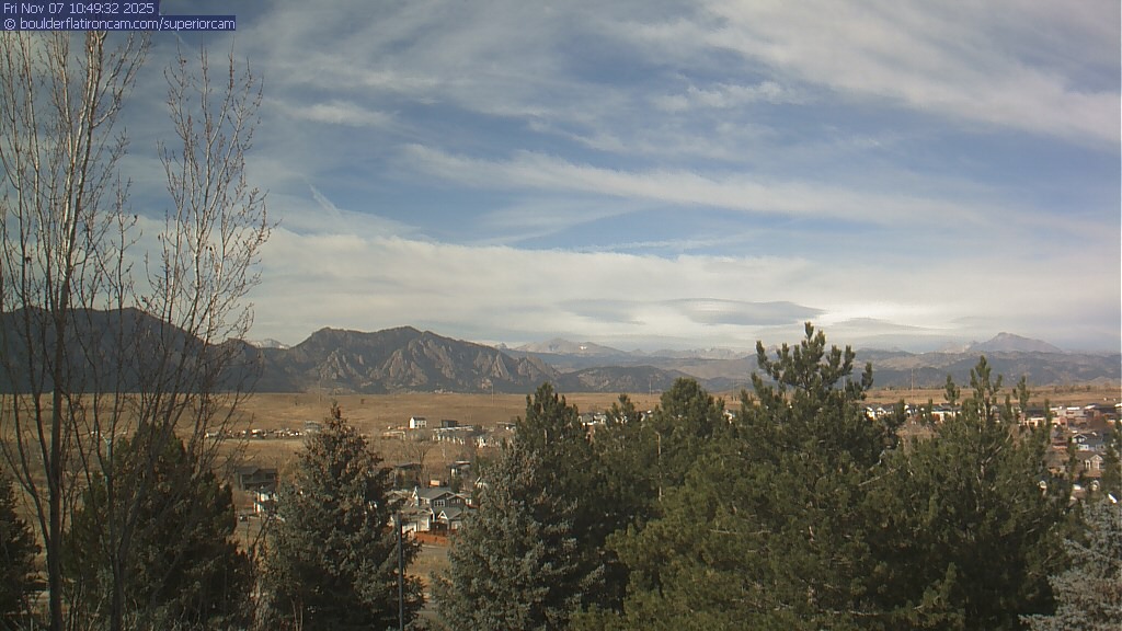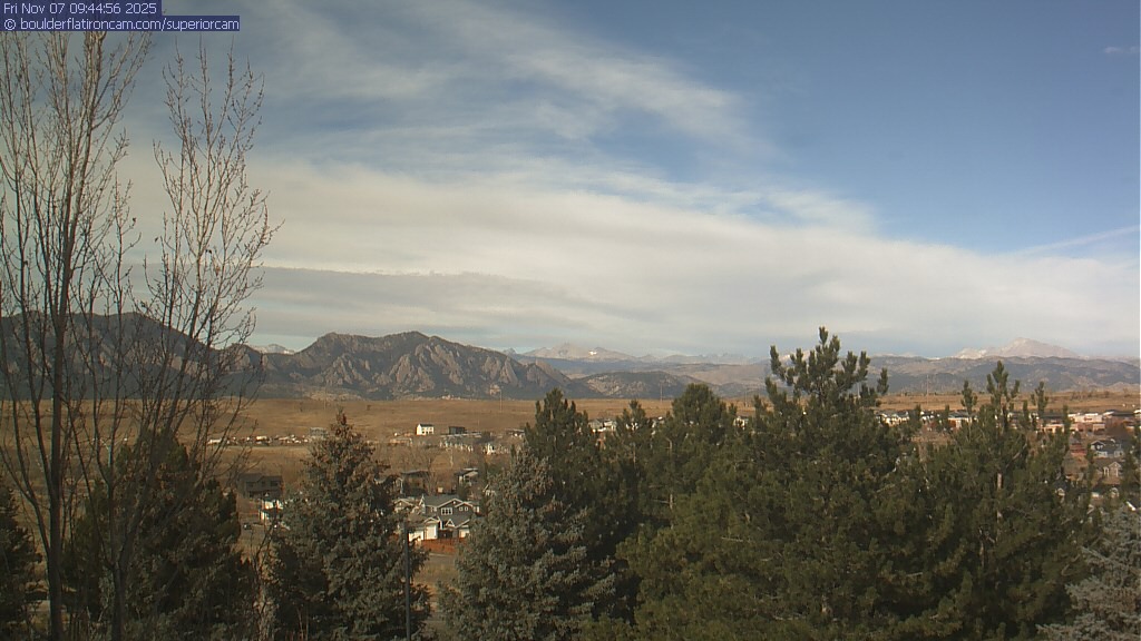 The Superior cam has a great view to the northwest over Boulder, the Flatirons, Indian Peaks and Long’s Peak.   The Coal Creek trail is visible in the foreground with old town Superior.  Thanks to Aweida Venture Partners management for the great view.