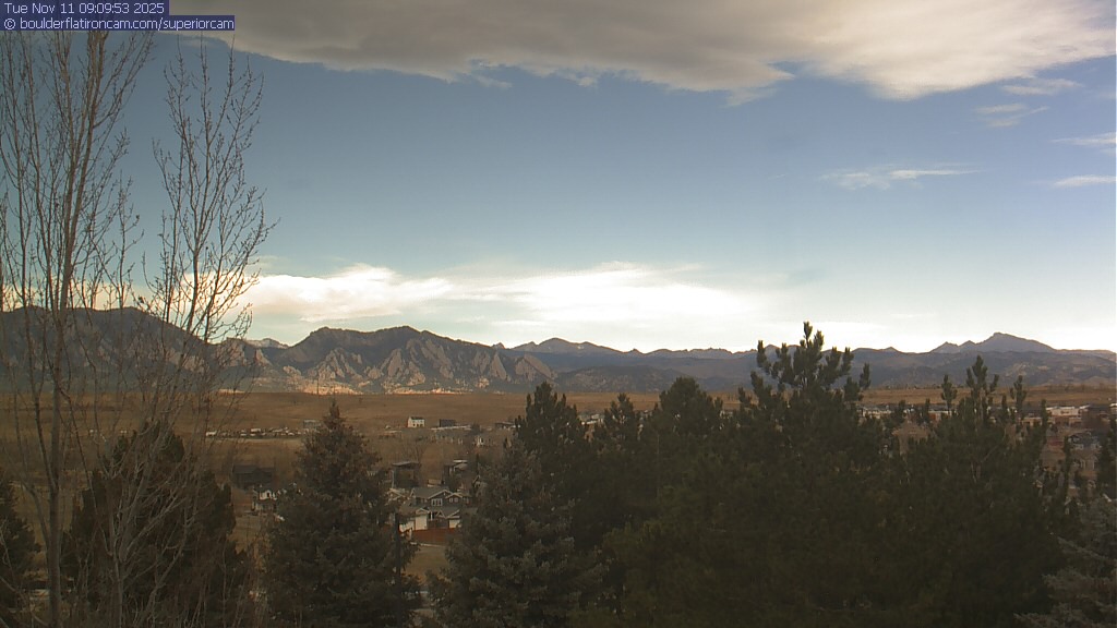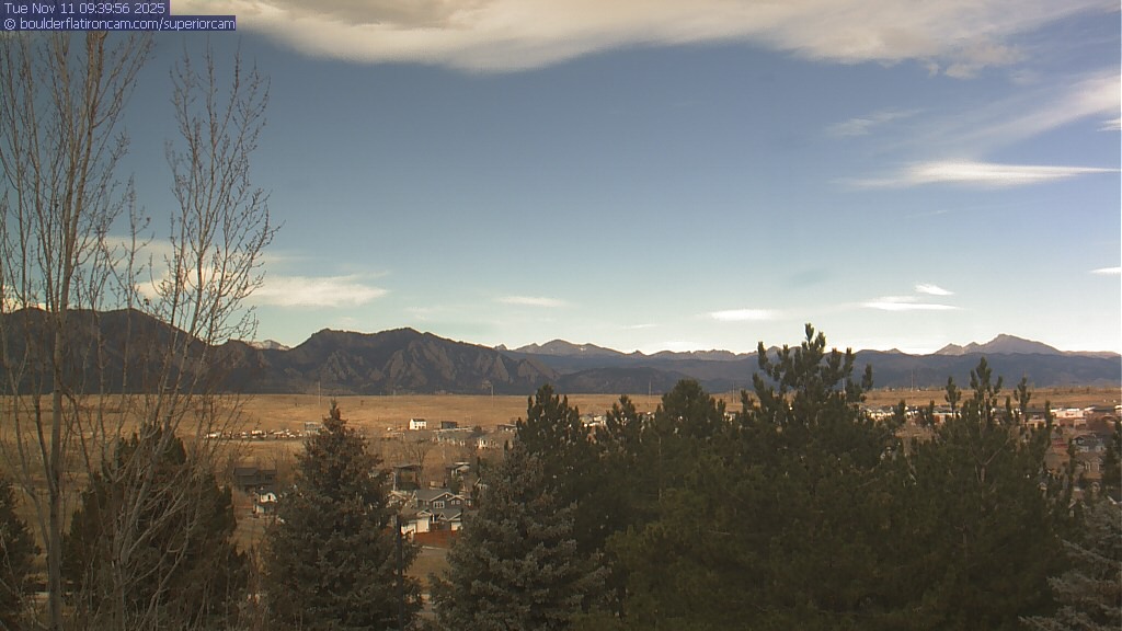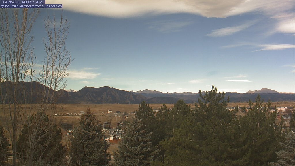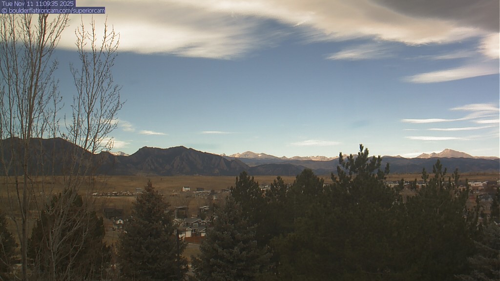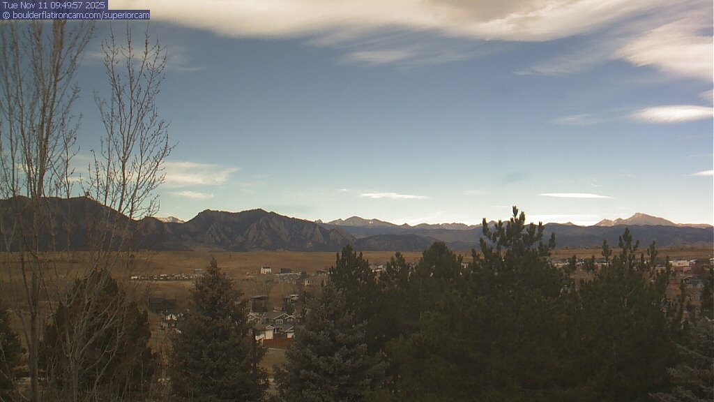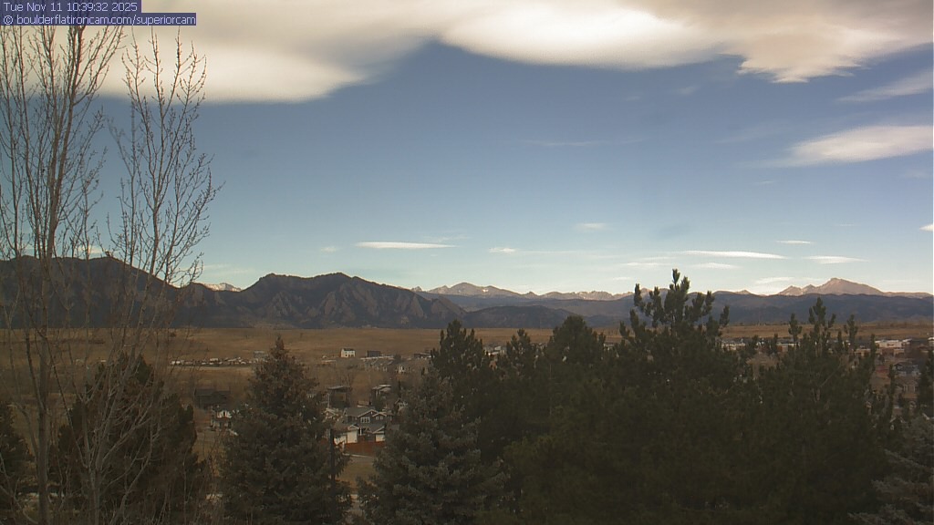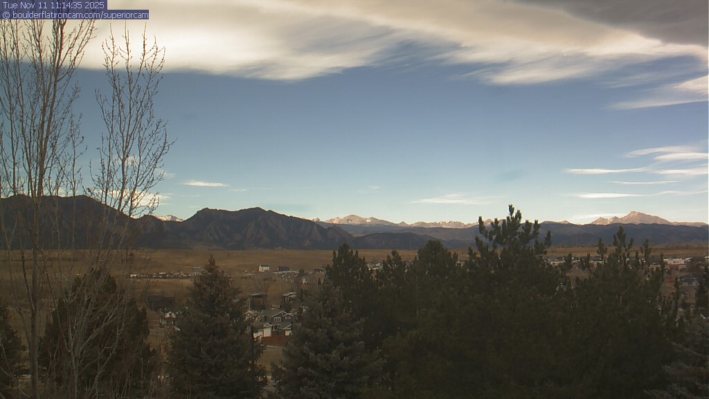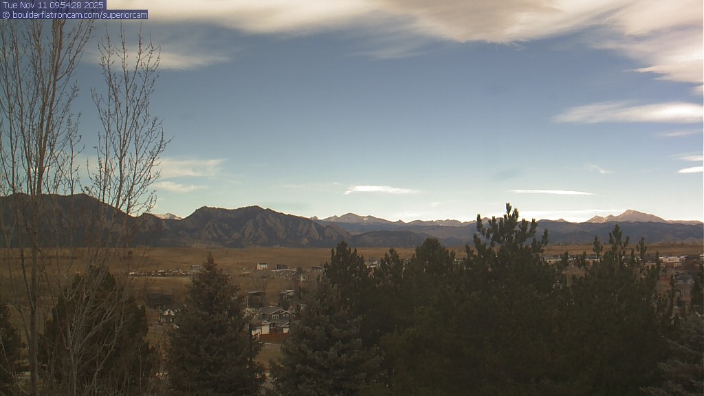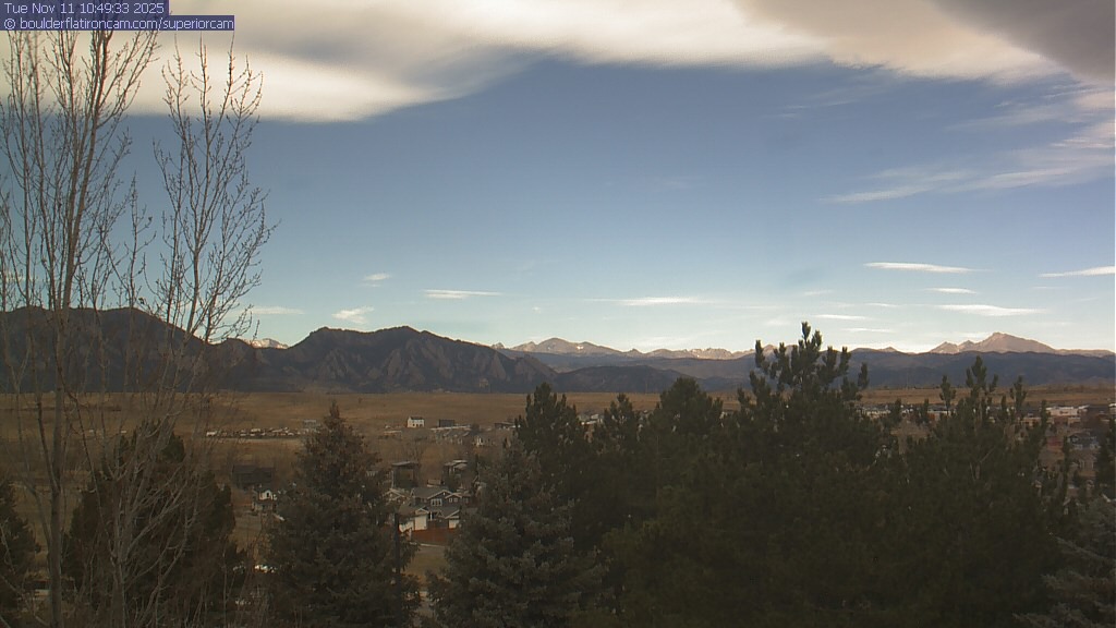 The Superior cam has a great view to the northwest over Boulder, the Flatirons, Indian Peaks and Long’s Peak.   The Coal Creek trail is visible in the foreground with old town Superior.  Thanks to Aweida Venture Partners management for the great view.