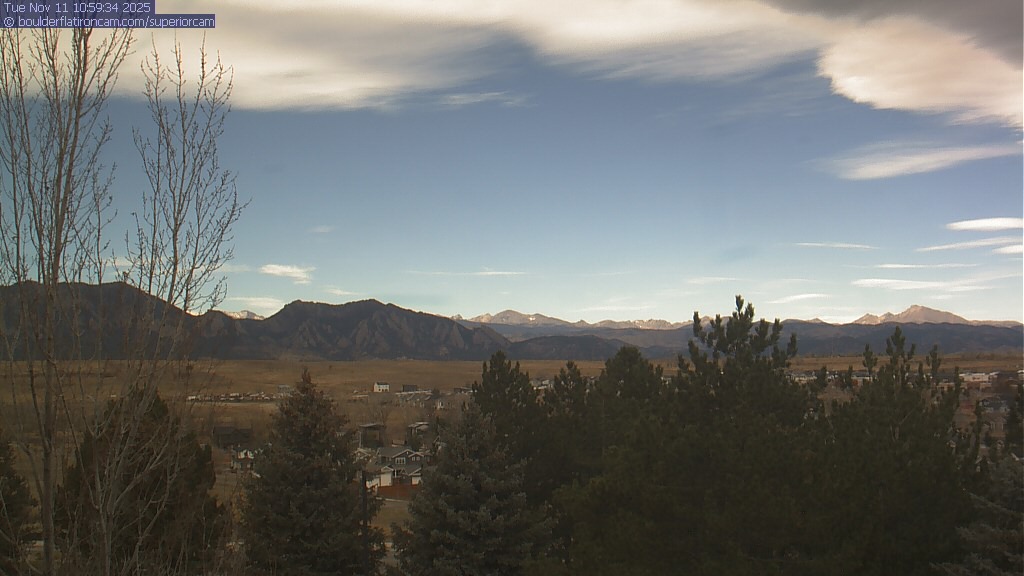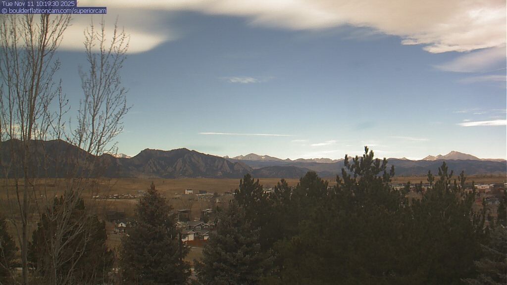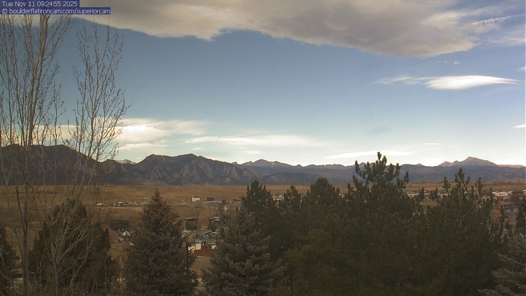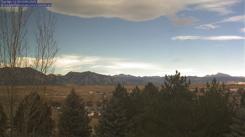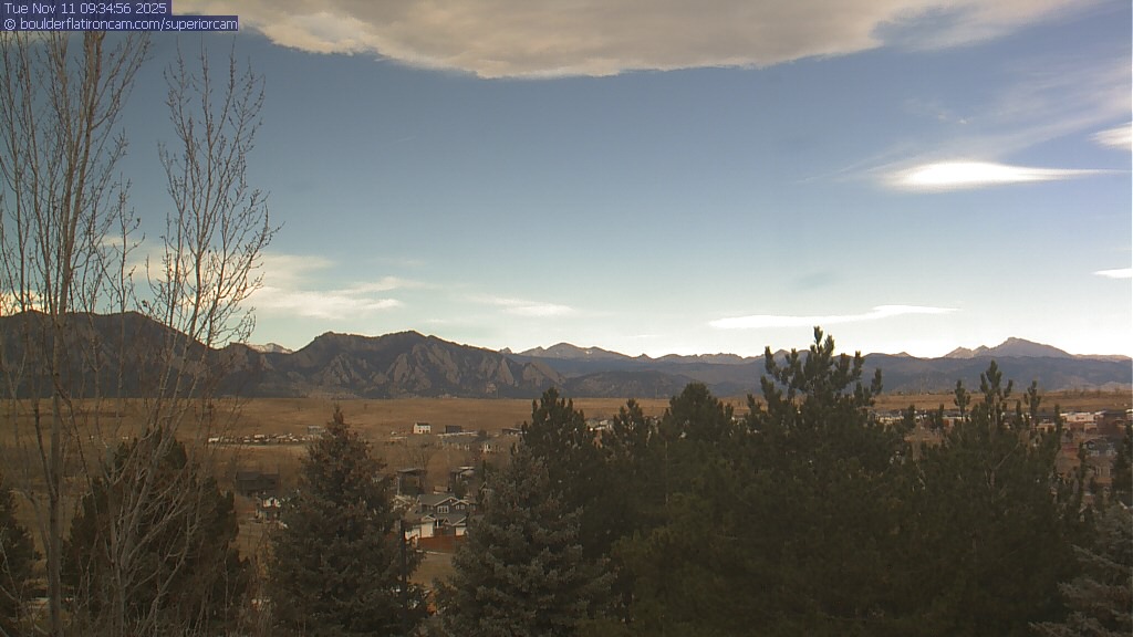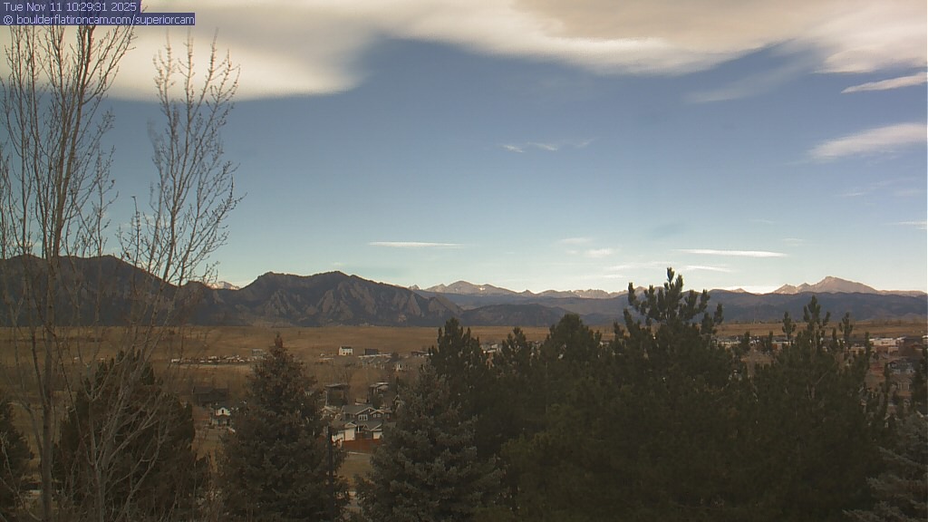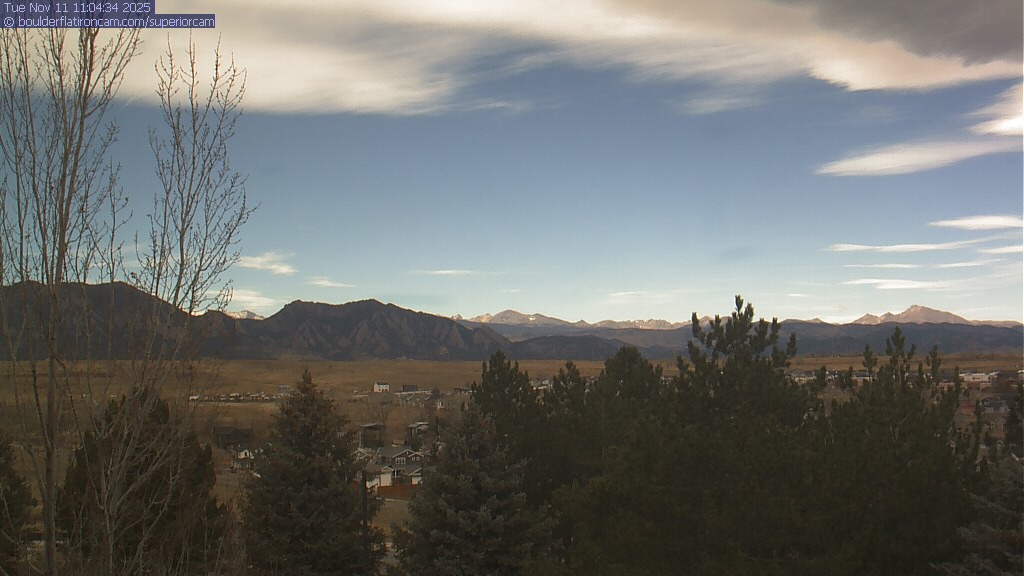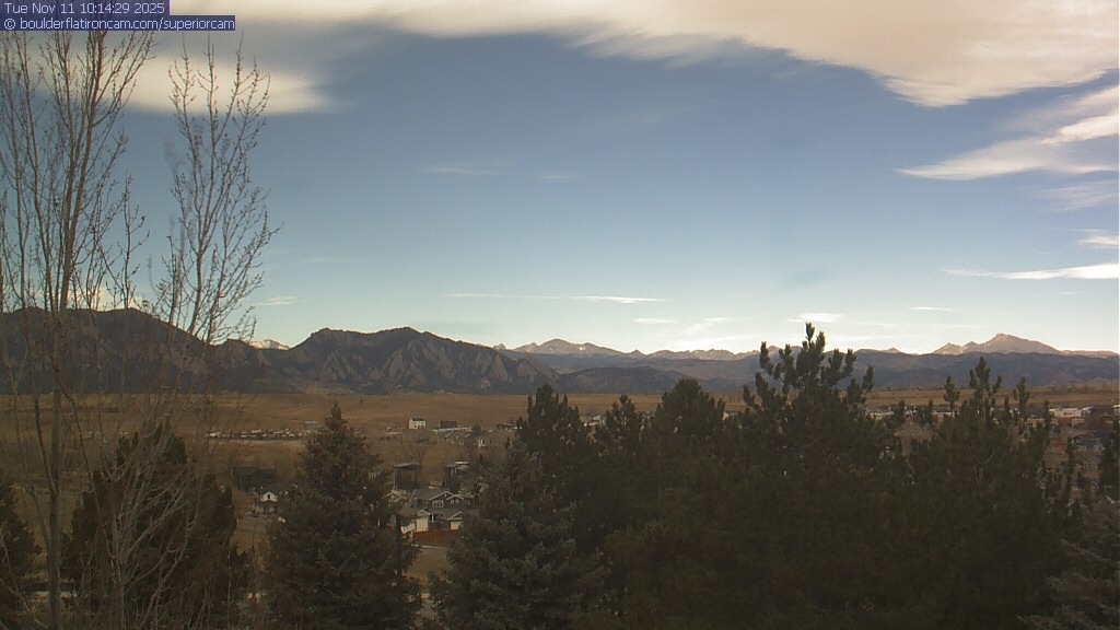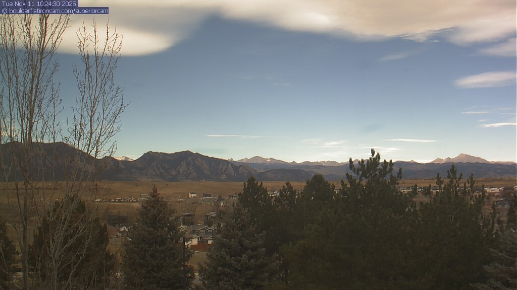 The Superior cam has a great view to the northwest over Boulder, the Flatirons, Indian Peaks and Long’s Peak.   The Coal Creek trail is visible in the foreground with old town Superior.  Thanks to Aweida Venture Partners management for the great view.