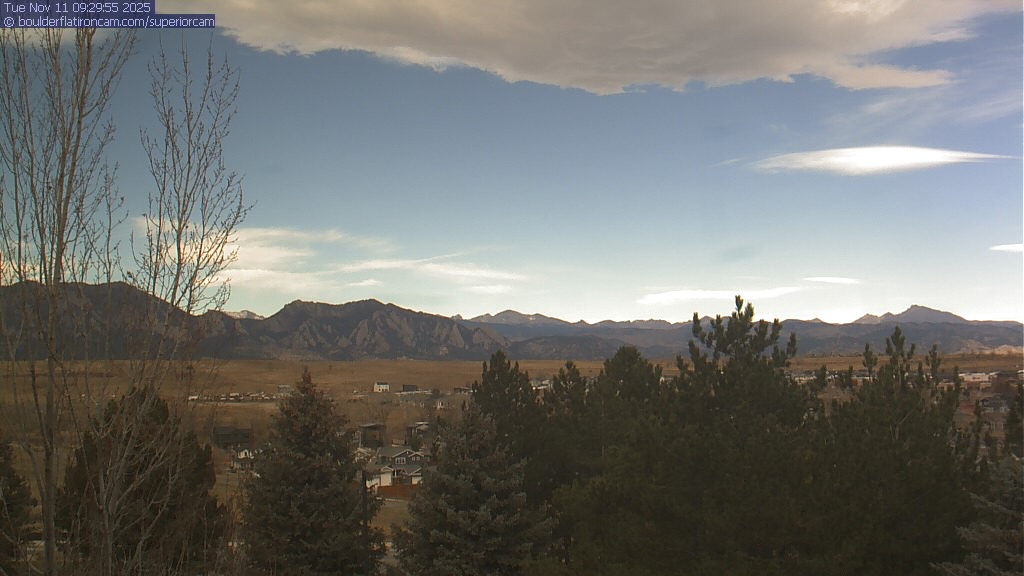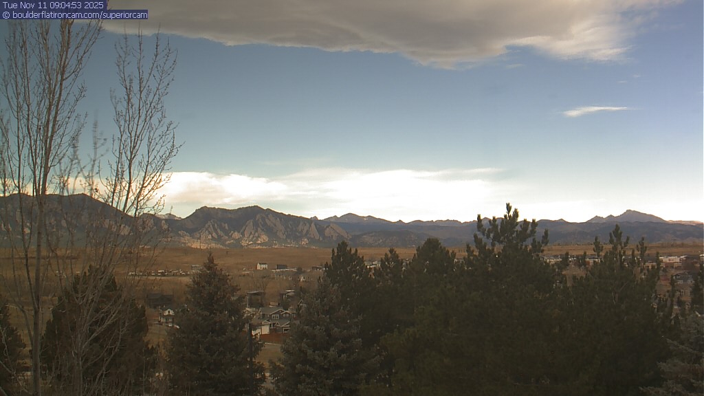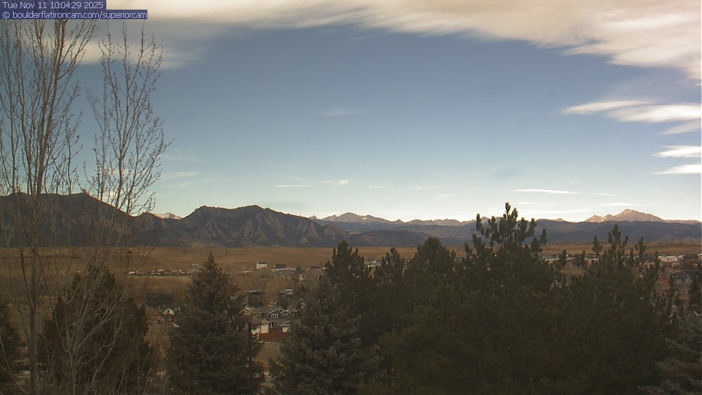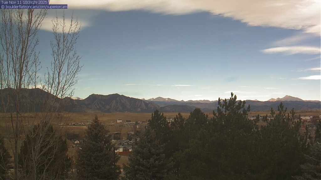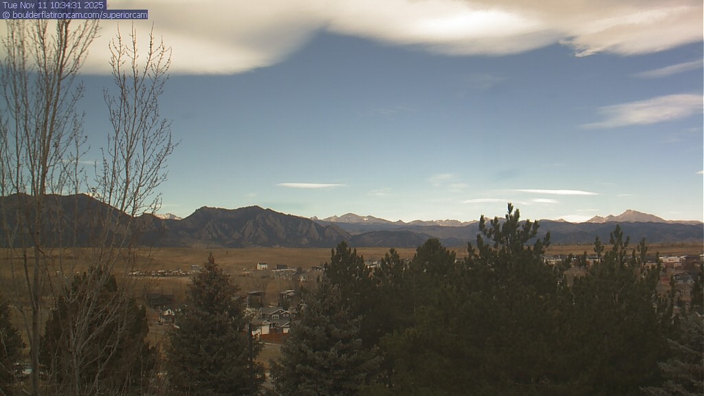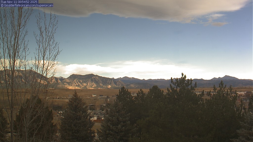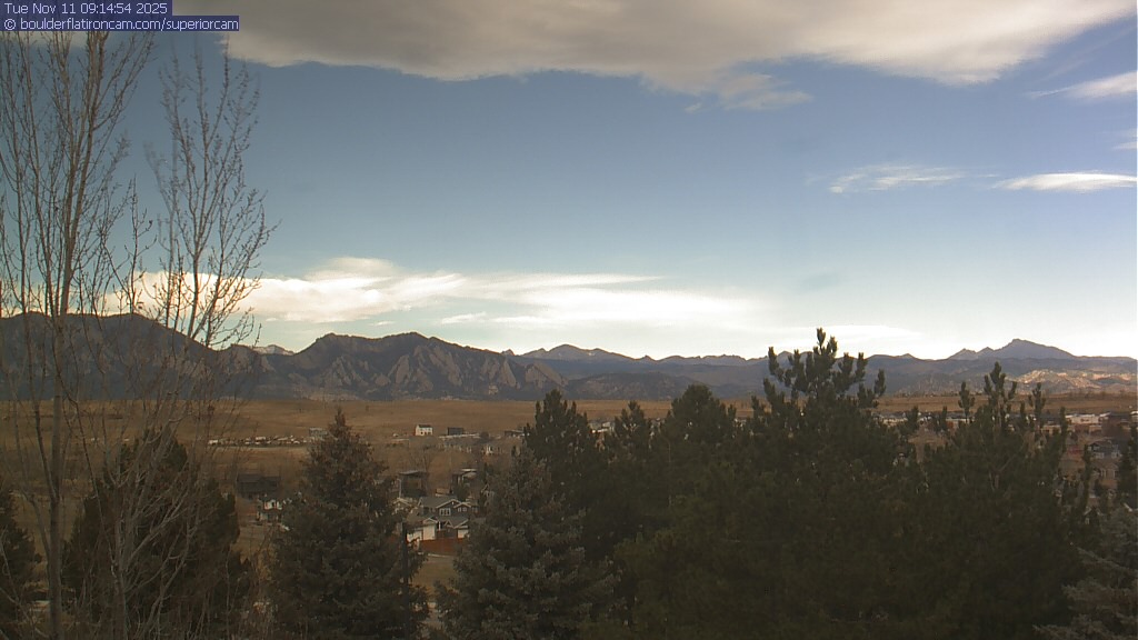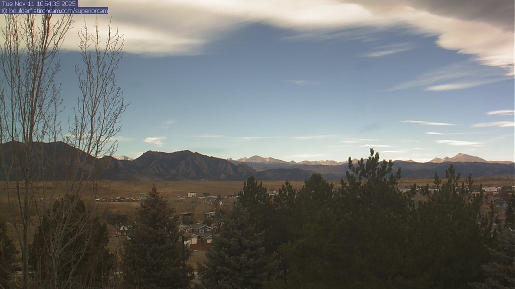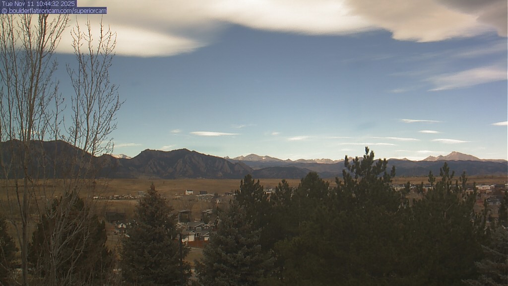The Superior cam has a great view to the northwest over Boulder, the Flatirons, Indian Peaks and Long’s Peak.   The Coal Creek trail is visible in the foreground with old town Superior.  Thanks to Aweida Venture Partners management for the great view.
