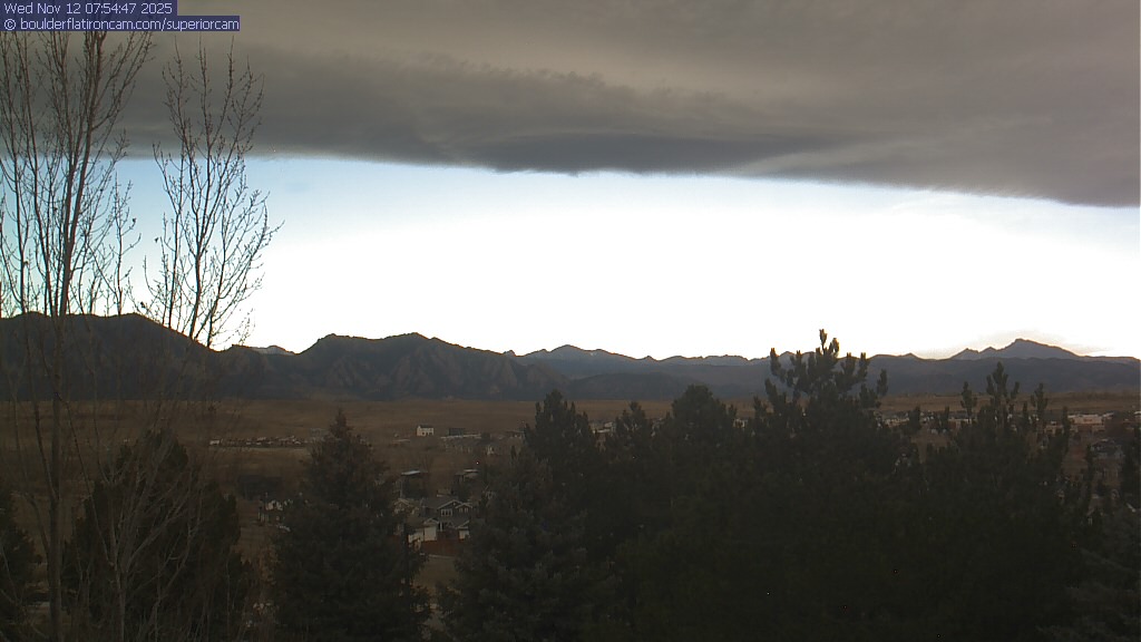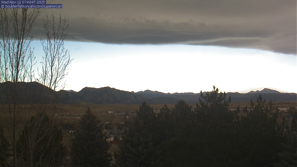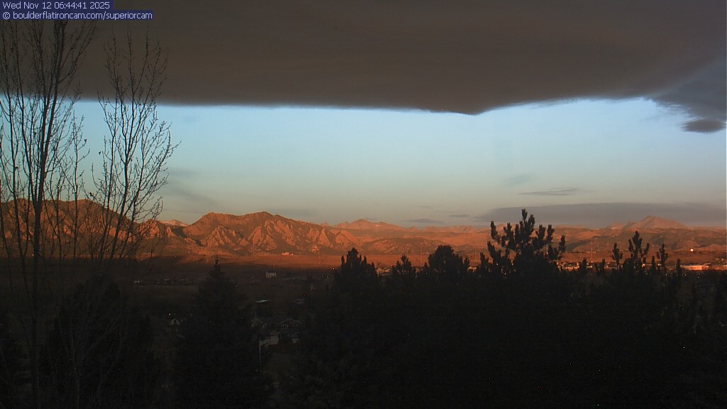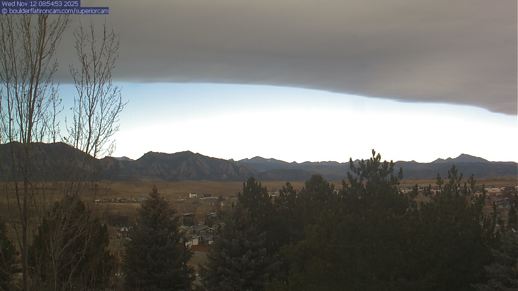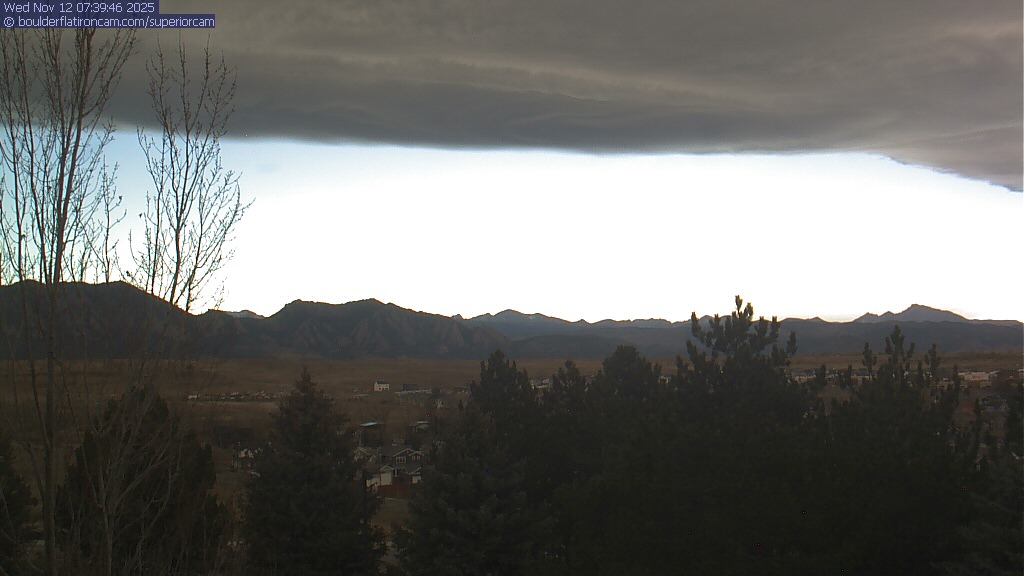 The Superior cam has a great view to the northwest over Boulder, the Flatirons, Indian Peaks and Long’s Peak.   The Coal Creek trail is visible in the foreground with old town Superior.  Thanks to Aweida Venture Partners management for the great view.
