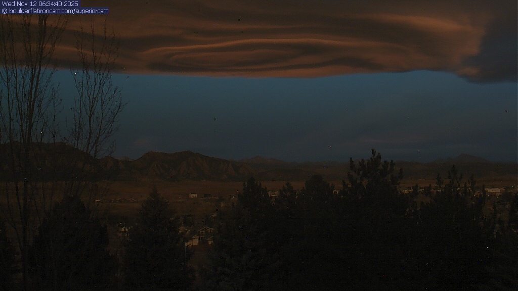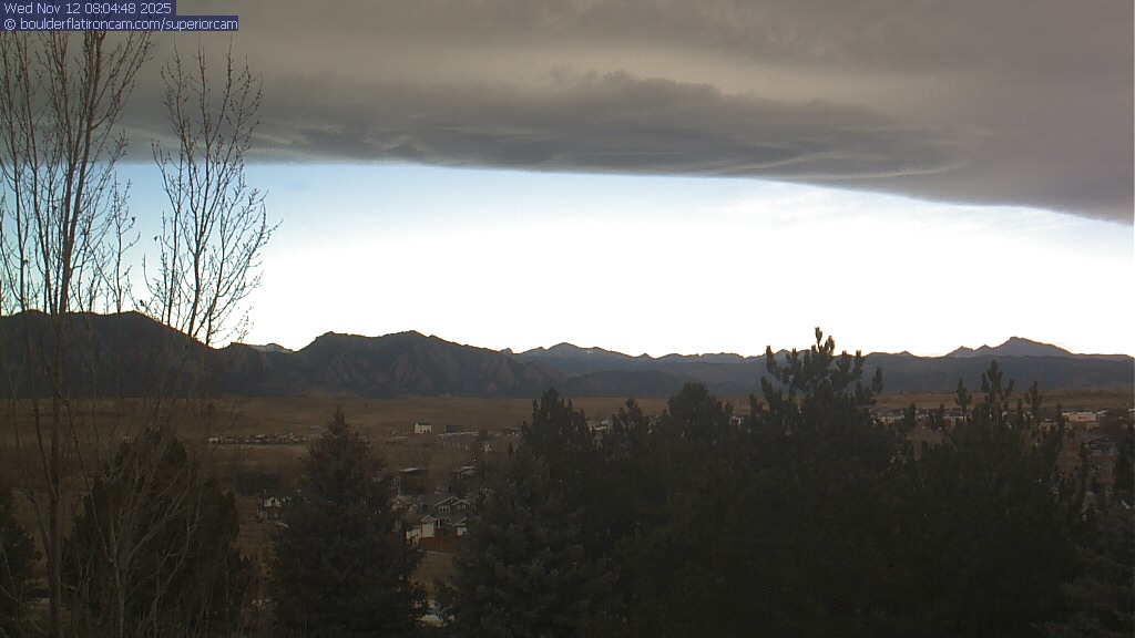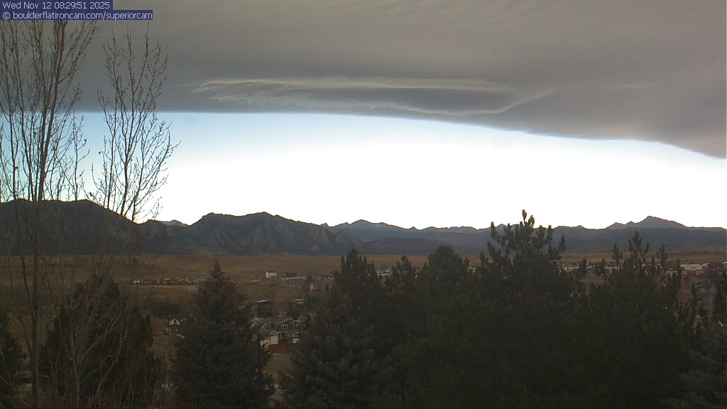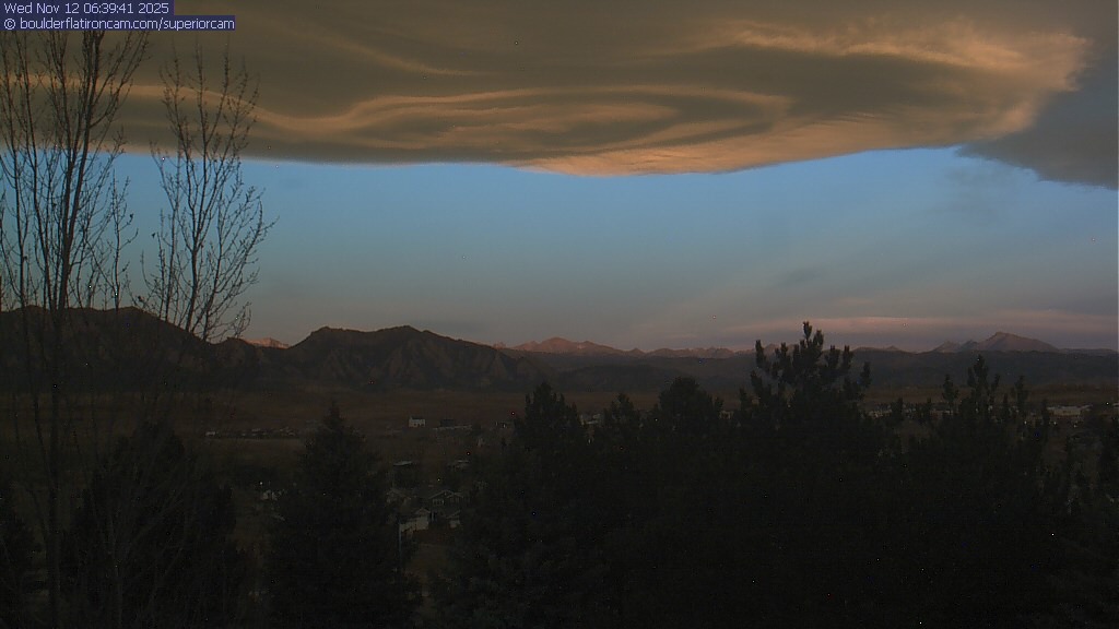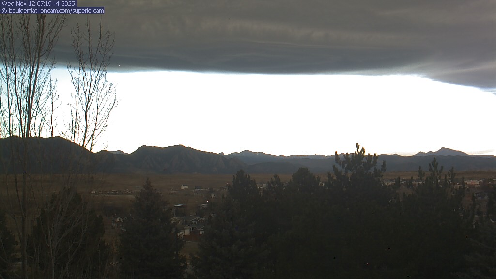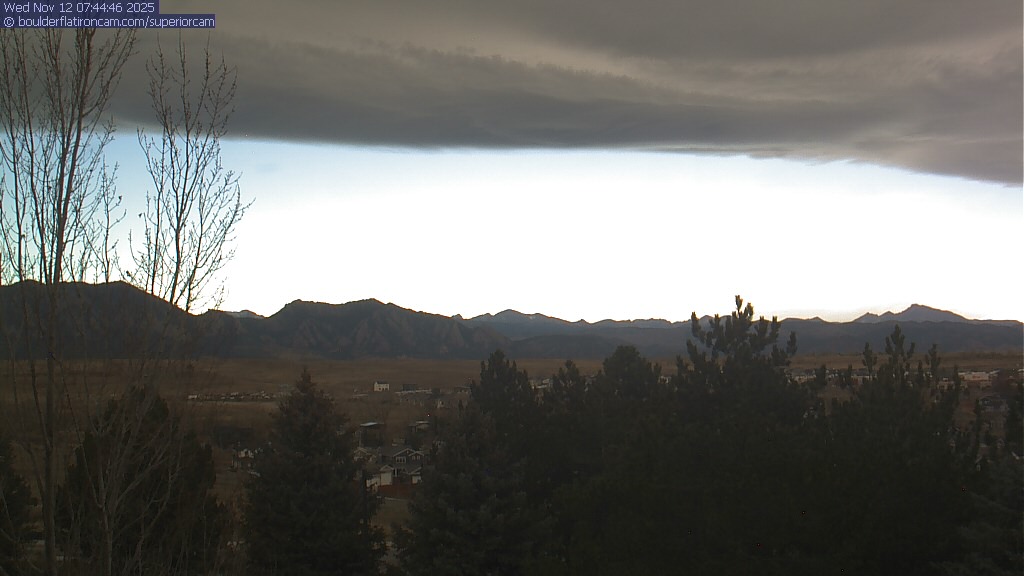 The Superior cam has a great view to the northwest over Boulder, the Flatirons, Indian Peaks and Long’s Peak.   The Coal Creek trail is visible in the foreground with old town Superior.  Thanks to Aweida Venture Partners management for the great view.