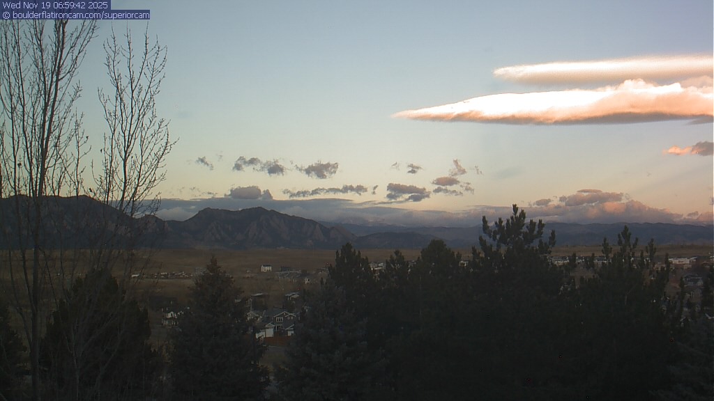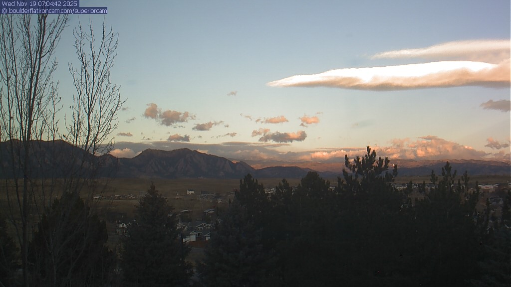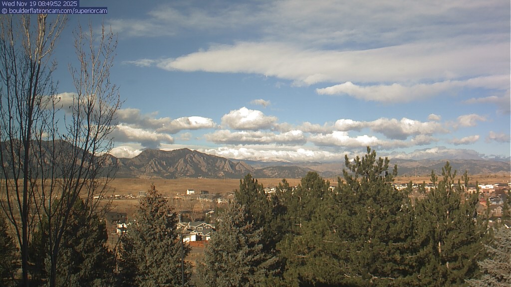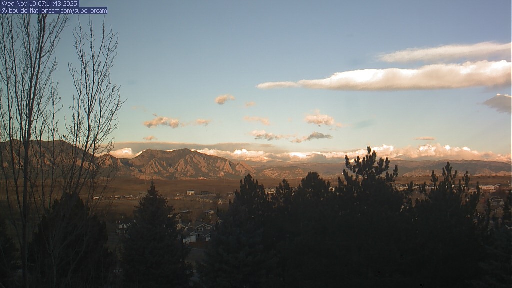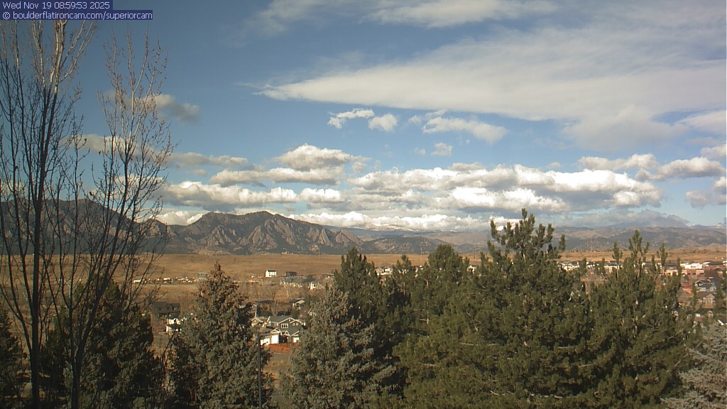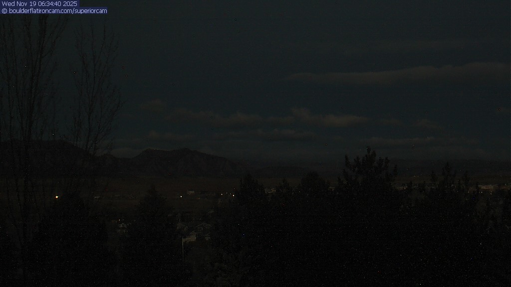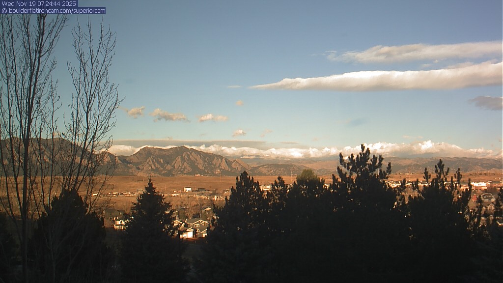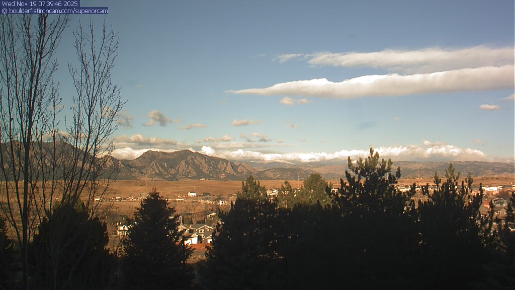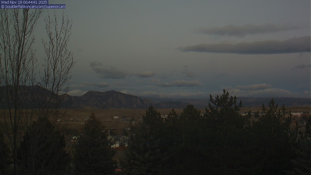 The Superior cam has a great view to the northwest over Boulder, the Flatirons, Indian Peaks and Long’s Peak. The Coal Creek trail is visible in the foreground with old town Superior. Thanks to Aweida Venture Partners management for the great view.