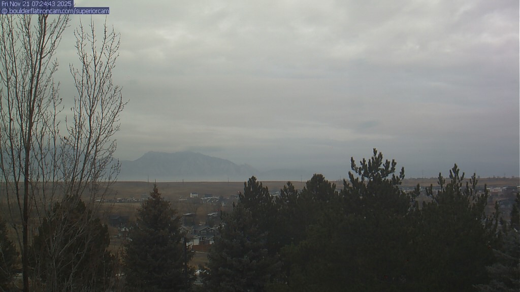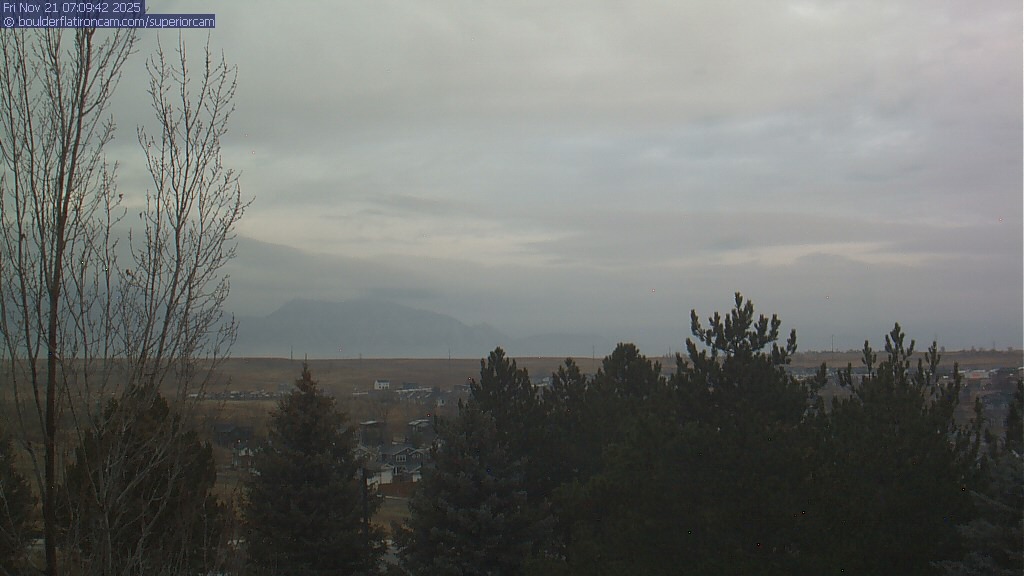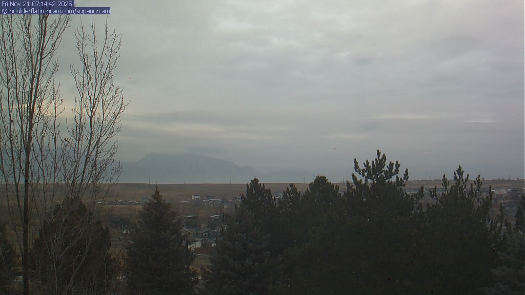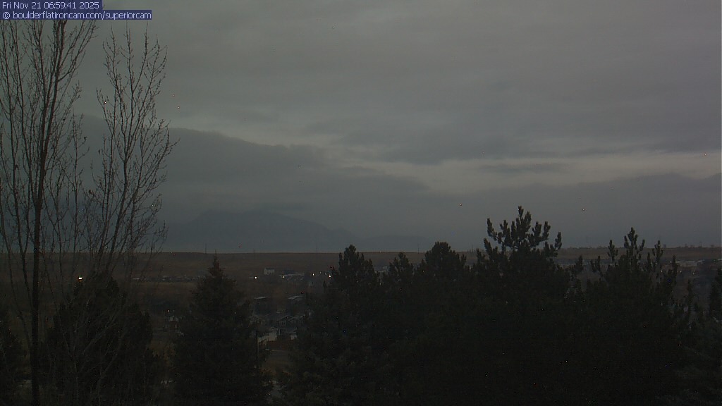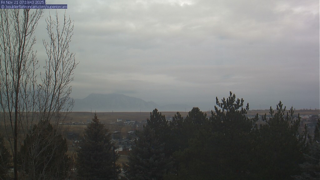 The Superior cam has a great view to the northwest over Boulder, the Flatirons, Indian Peaks and Long’s Peak.   The Coal Creek trail is visible in the foreground with old town Superior.  Thanks to Aweida Venture Partners management for the great view.