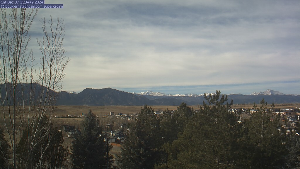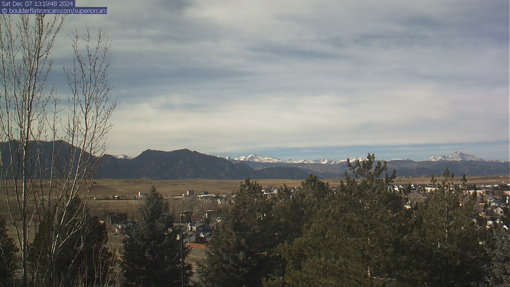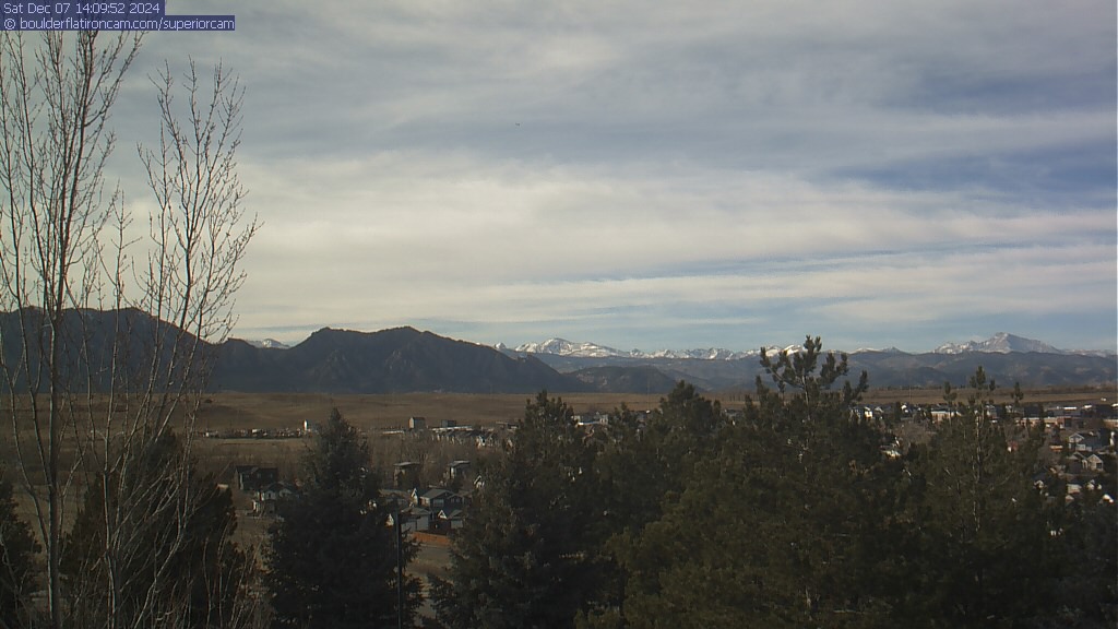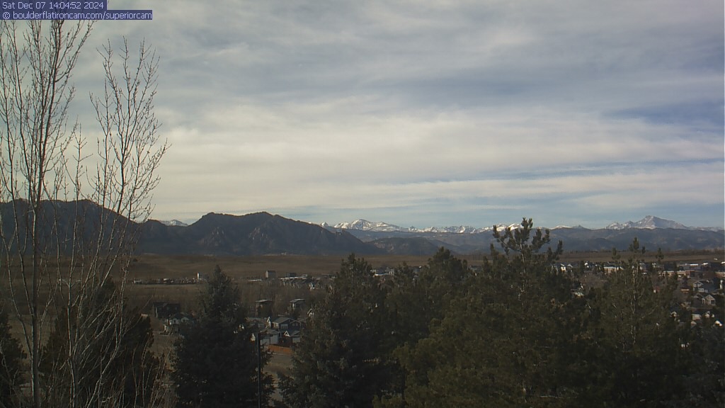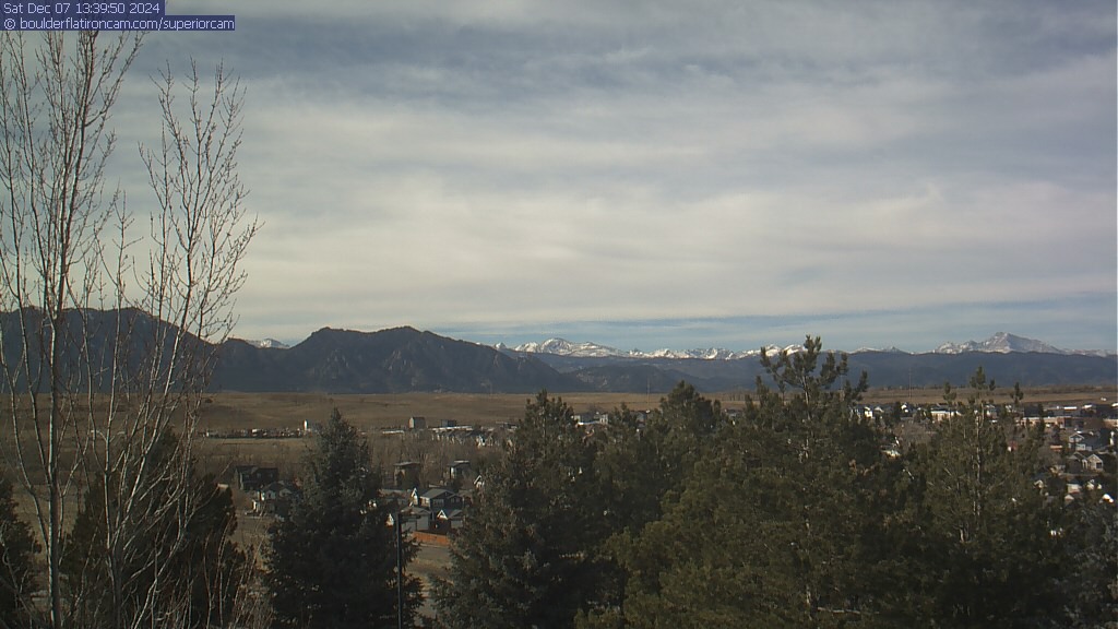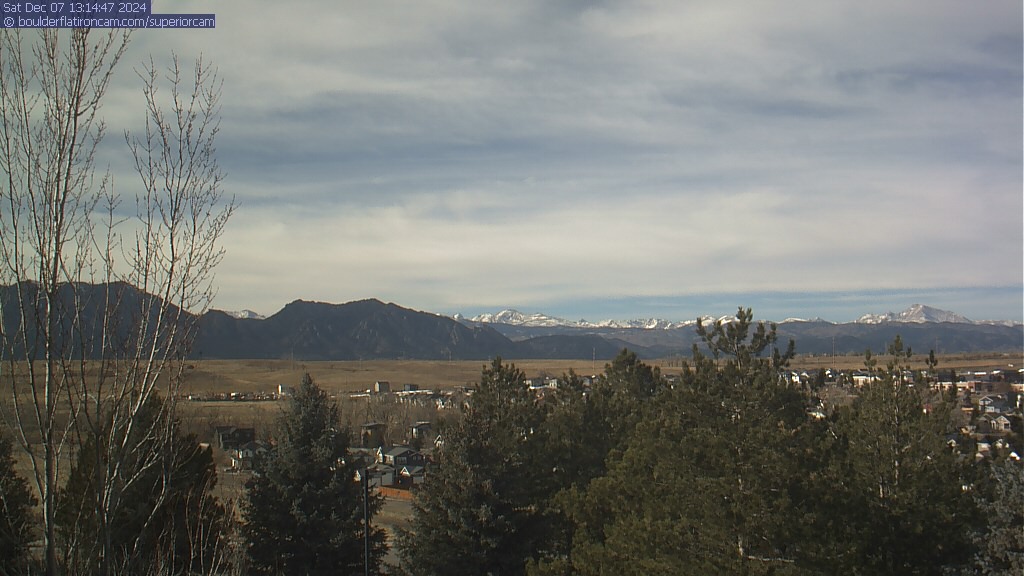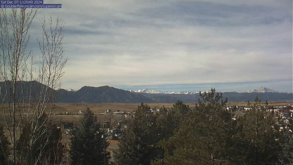 The Superior cam has a great view to the northwest over Boulder, the Flatirons, Indian Peaks and Long’s Peak.   The Coal Creek trail is visible in the foreground with old town Superior.  Thanks to Aweida Venture Partners management for the great view.