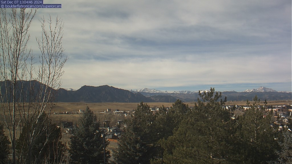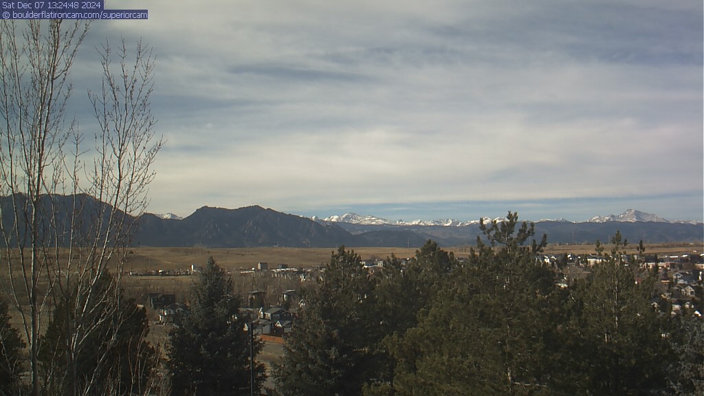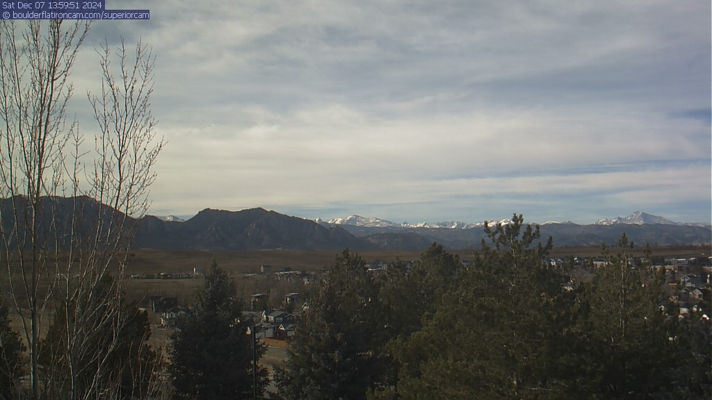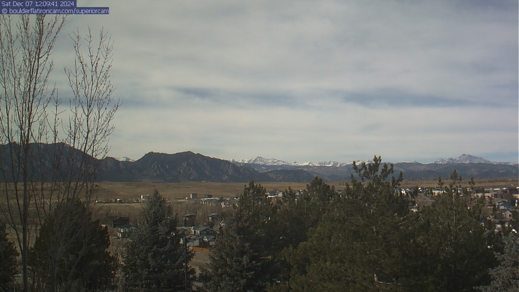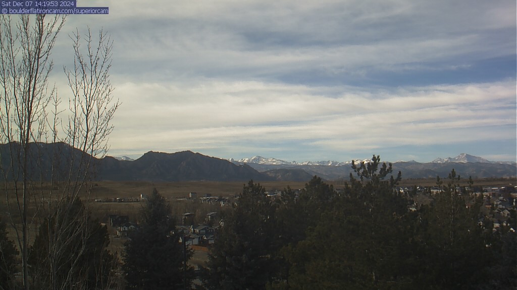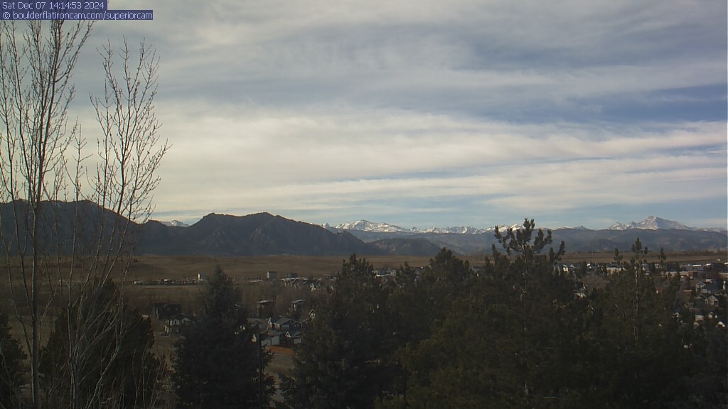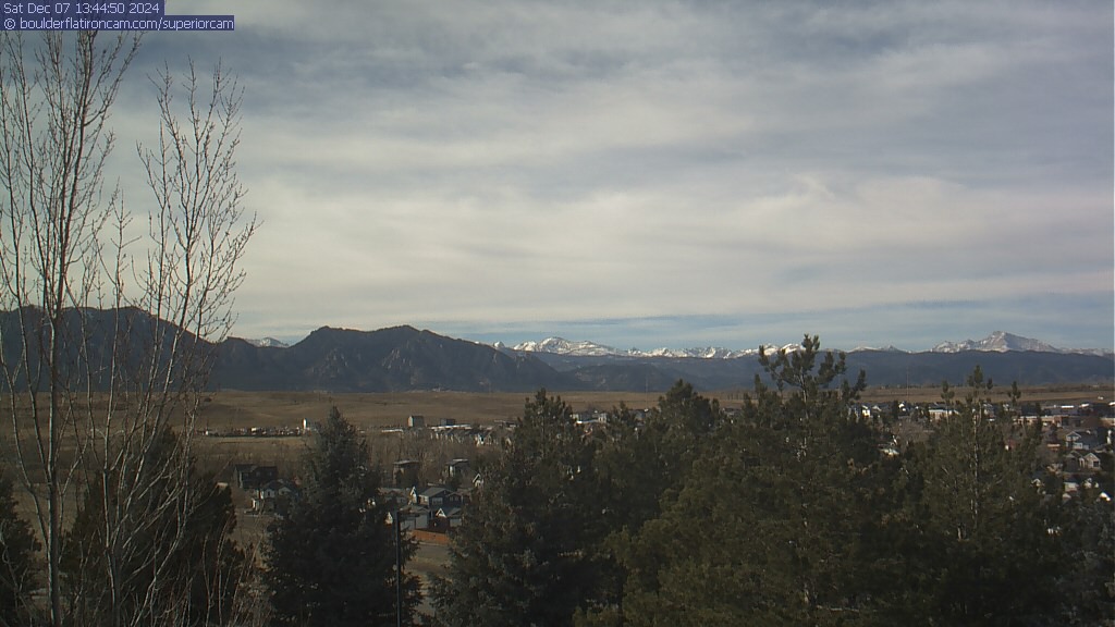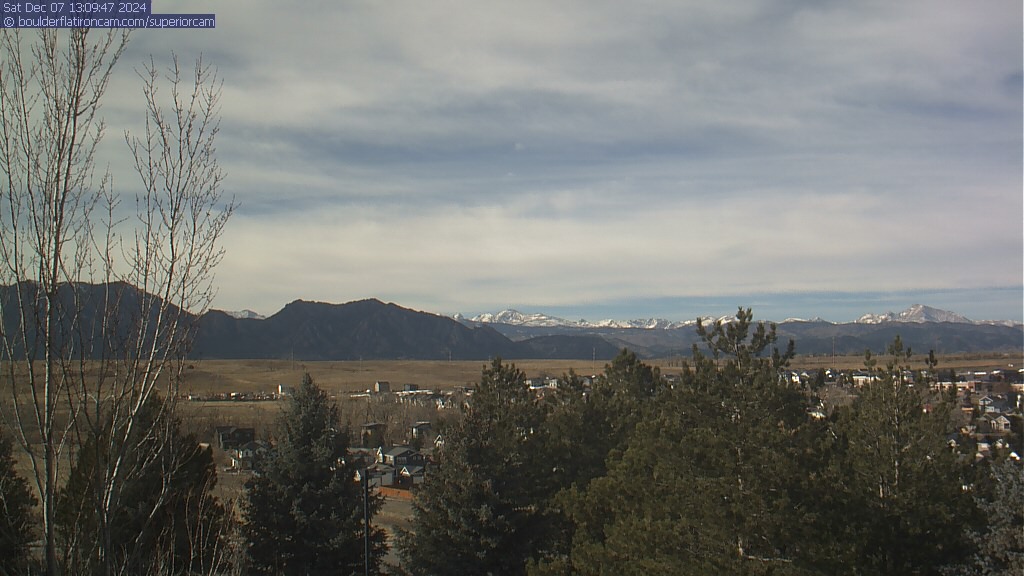 The Superior cam has a great view to the northwest over Boulder, the Flatirons, Indian Peaks and Long’s Peak.   The Coal Creek trail is visible in the foreground with old town Superior.  Thanks to Aweida Venture Partners management for the great view.