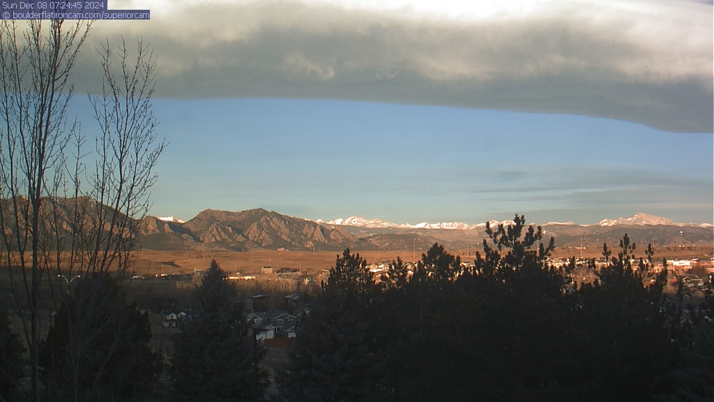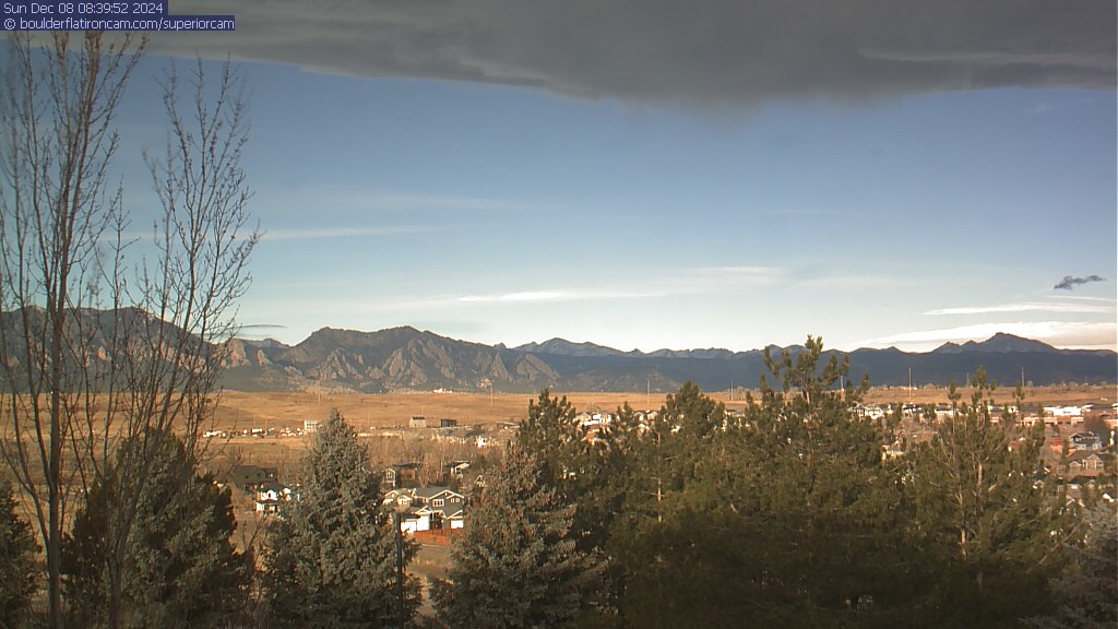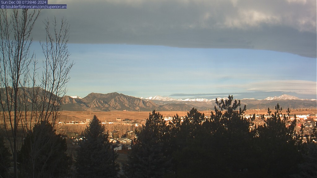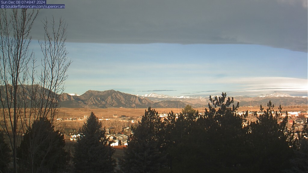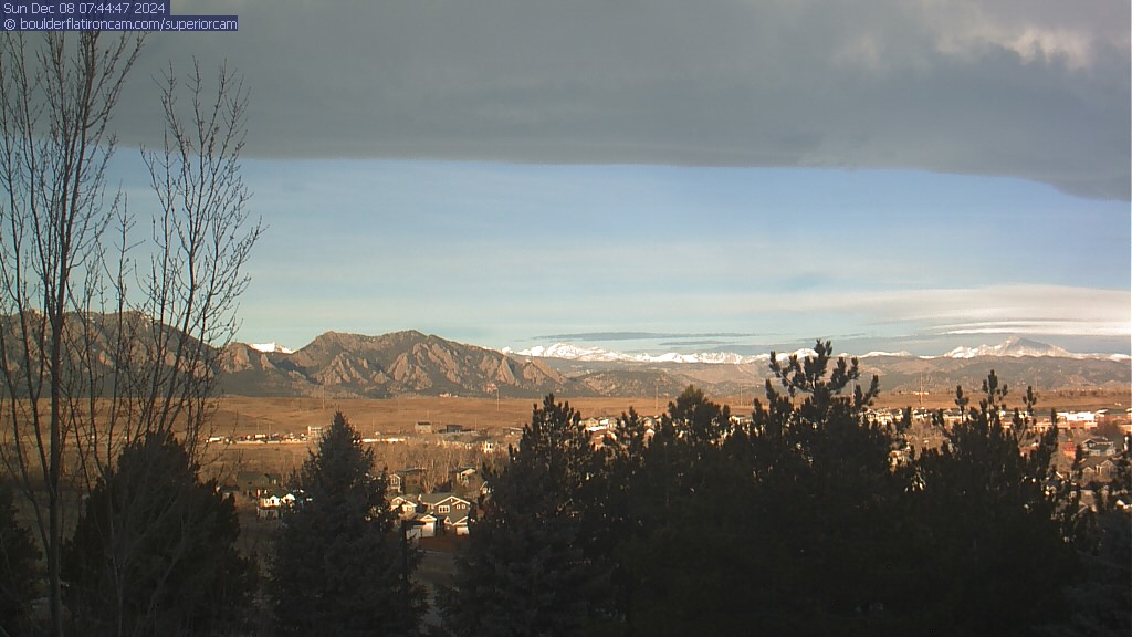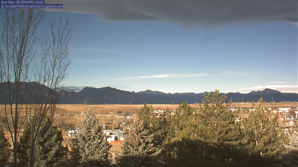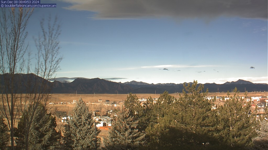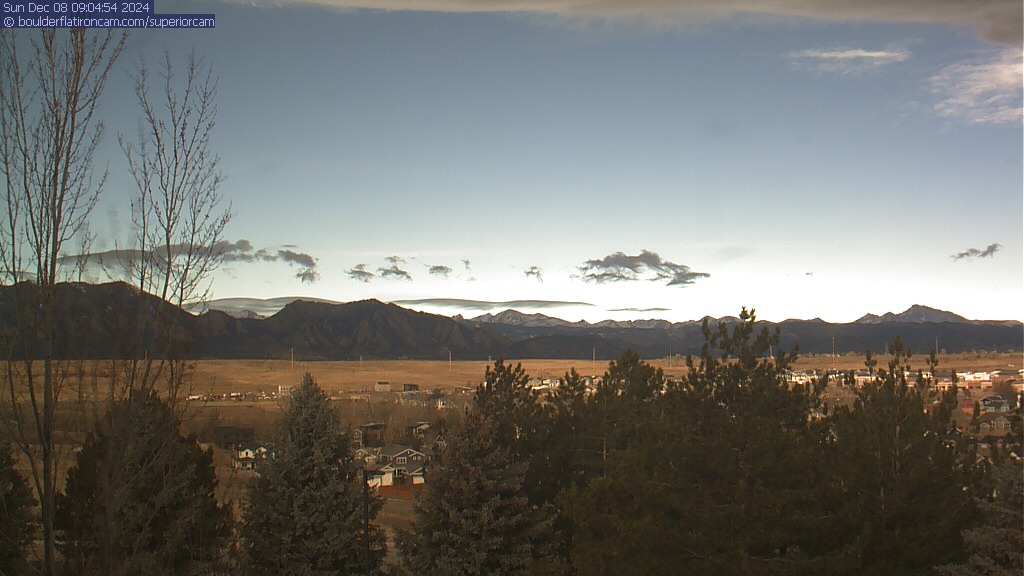 The Superior cam has a great view to the northwest over Boulder, the Flatirons, Indian Peaks and Long’s Peak.   The Coal Creek trail is visible in the foreground with old town Superior.  Thanks to Aweida Venture Partners management for the great view.