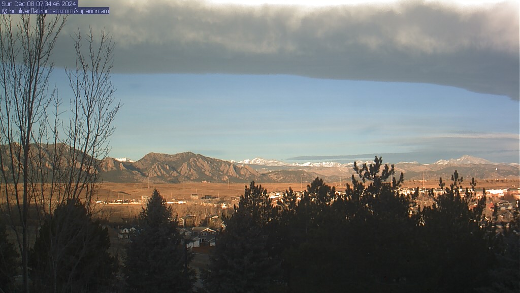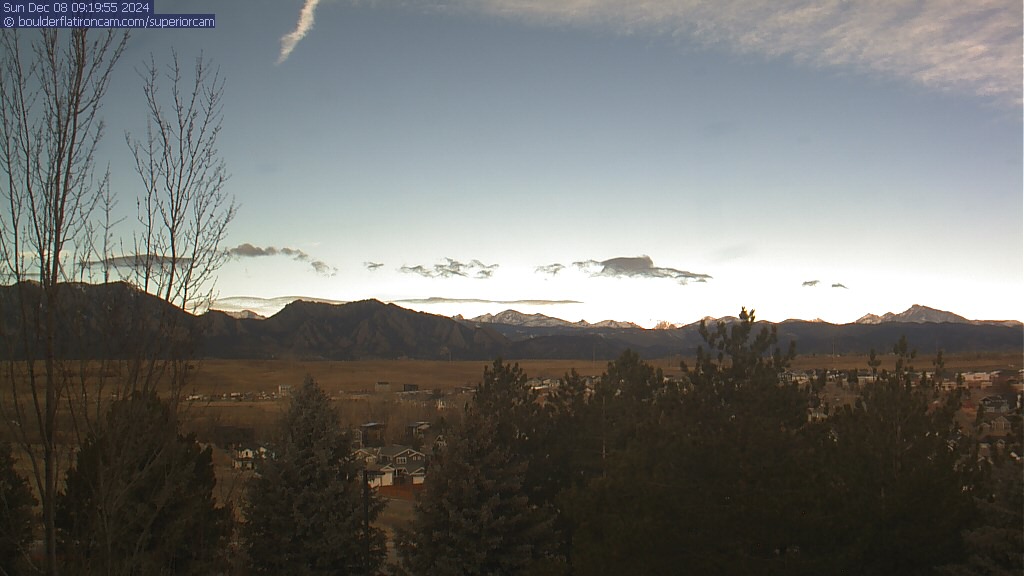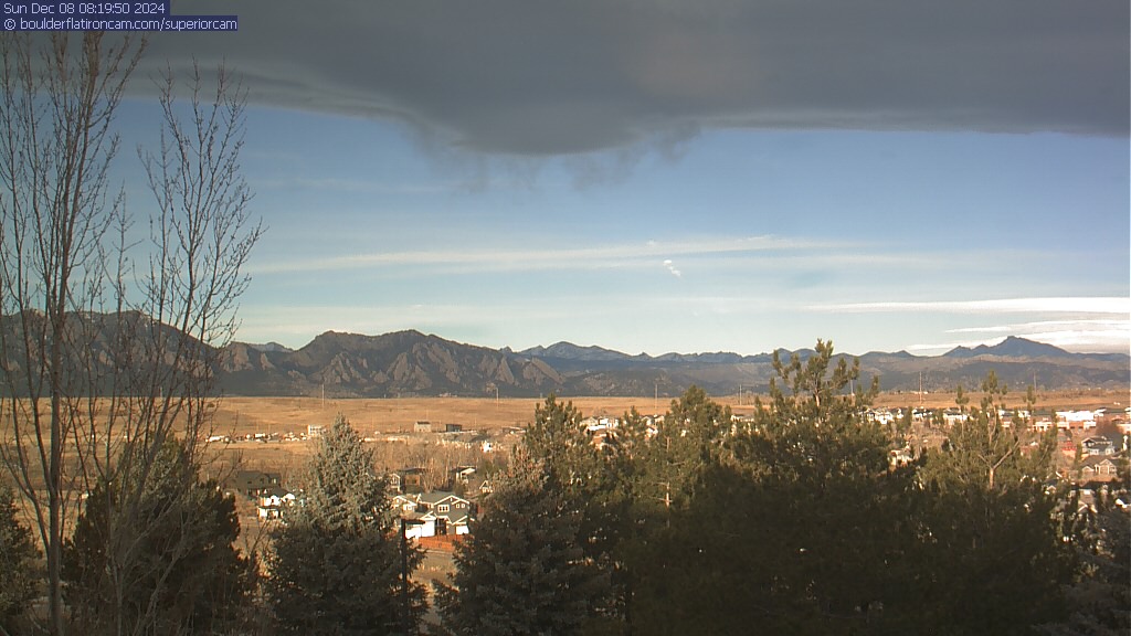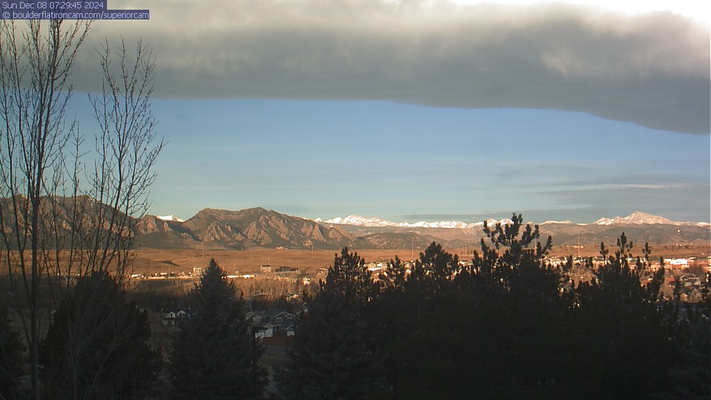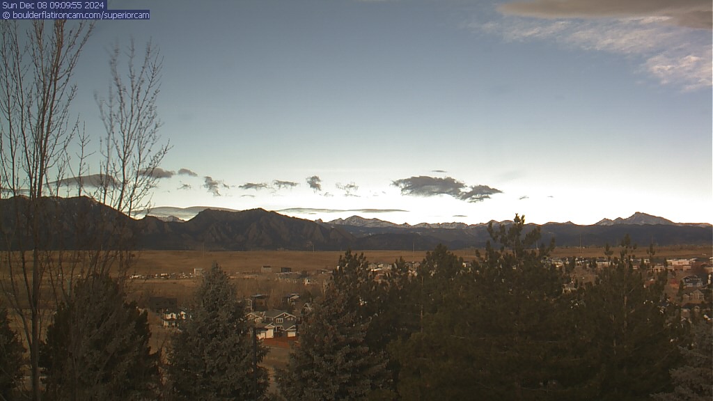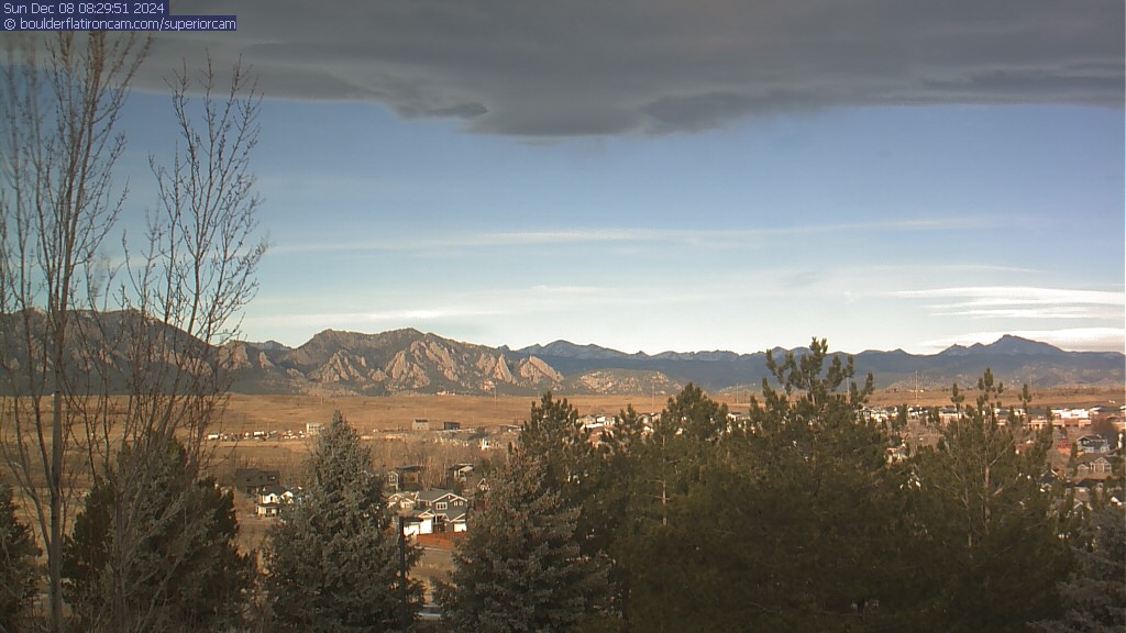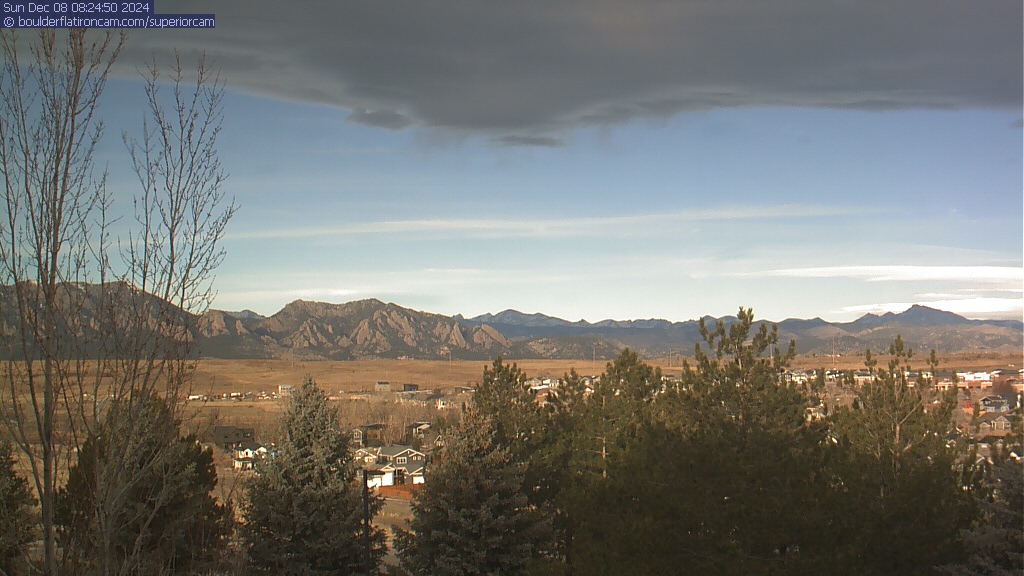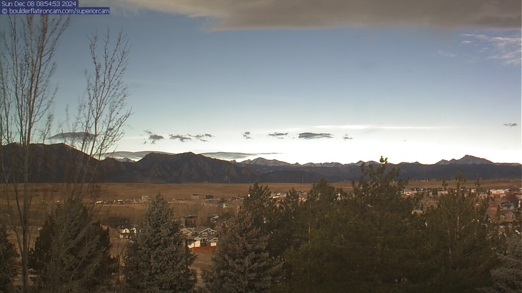 The Superior cam has a great view to the northwest over Boulder, the Flatirons, Indian Peaks and Long’s Peak.   The Coal Creek trail is visible in the foreground with old town Superior.  Thanks to Aweida Venture Partners management for the great view.