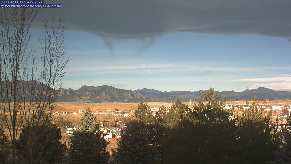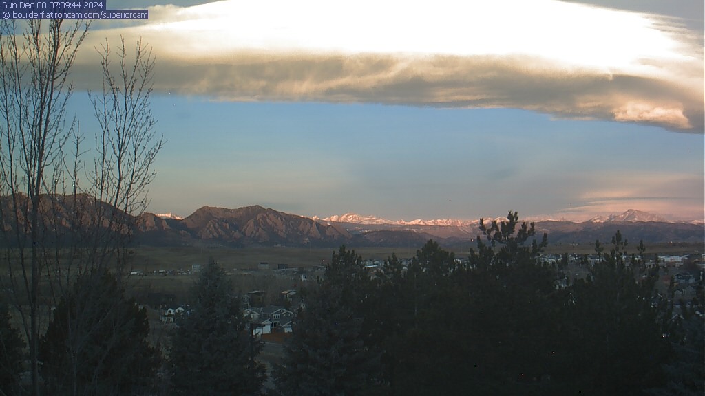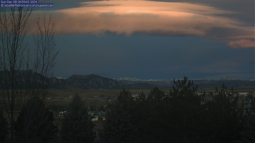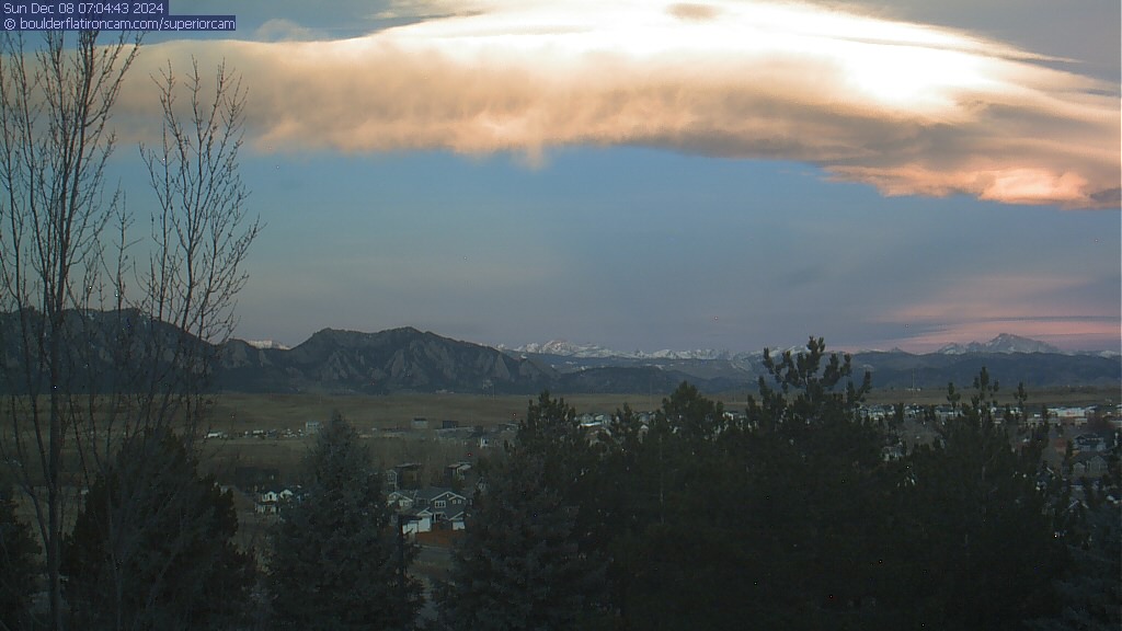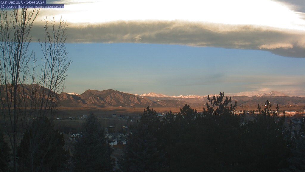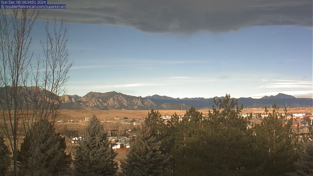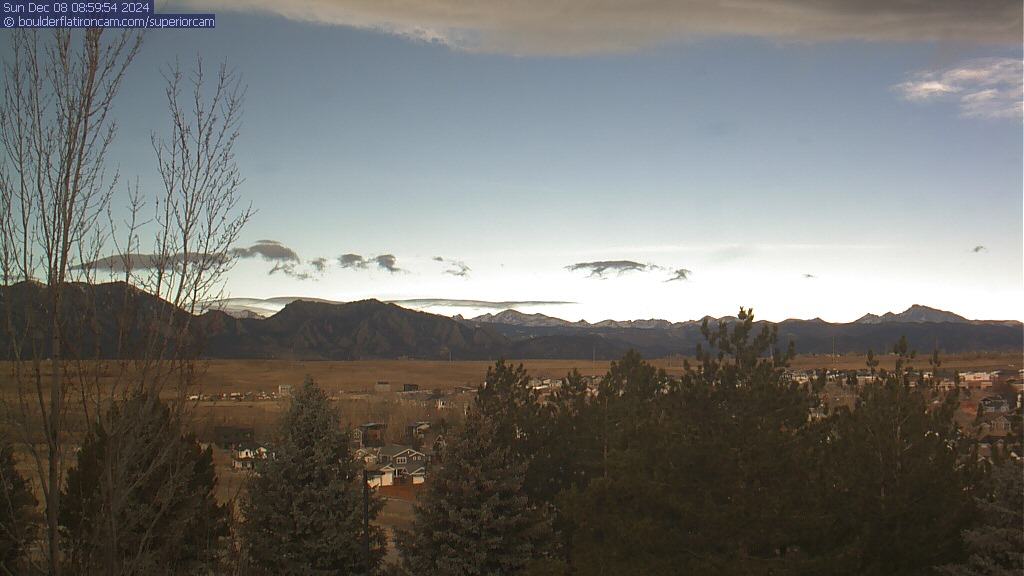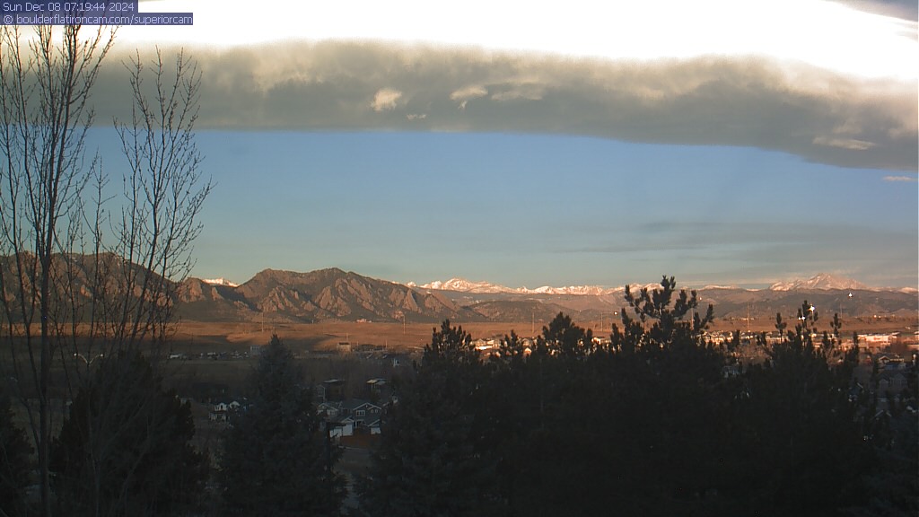 The Superior cam has a great view to the northwest over Boulder, the Flatirons, Indian Peaks and Long’s Peak.   The Coal Creek trail is visible in the foreground with old town Superior.  Thanks to Aweida Venture Partners management for the great view.